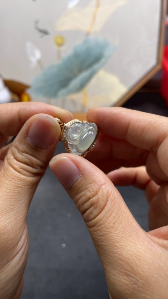 Jadeite Buddha Pendant with 18K Gold Setting, Total Weight Approx. 2.7g (Accented with Diamonds)