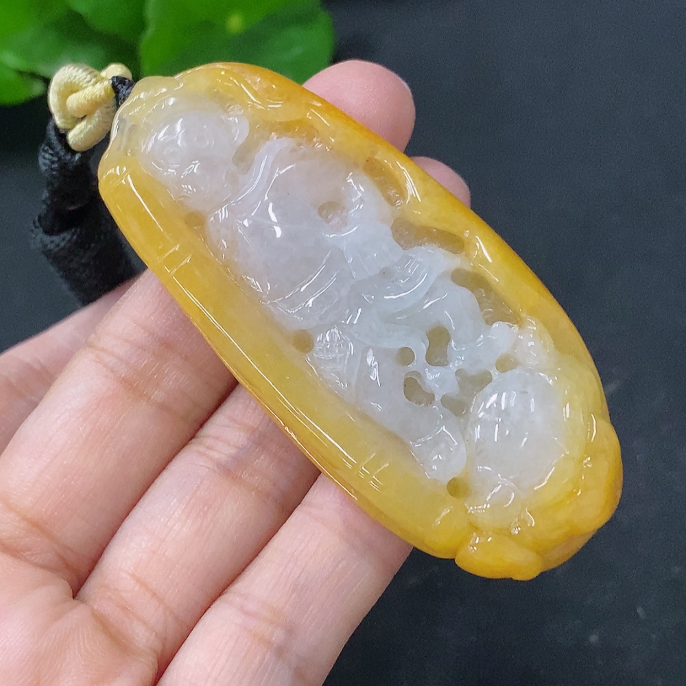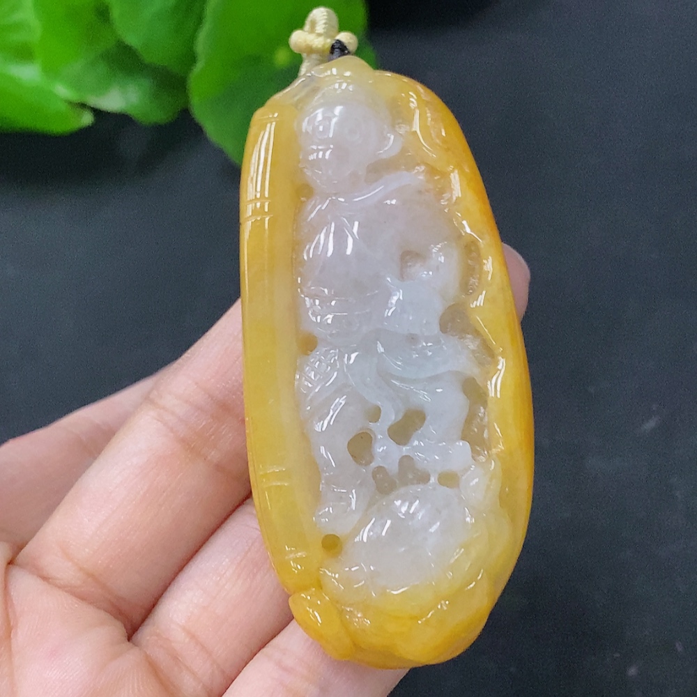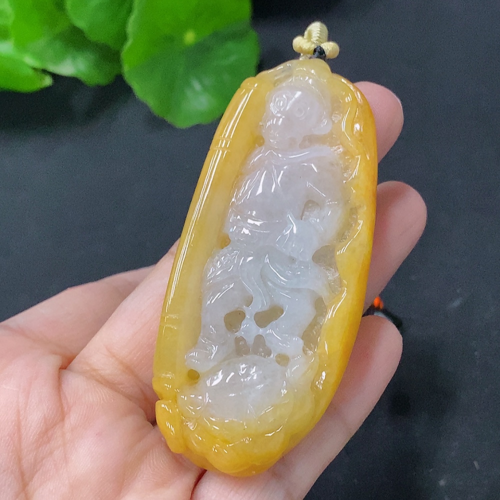 Jadeite Pendant - Monkey King, Total Weight Including Cord: 35.257g, Color Origin Undetermined