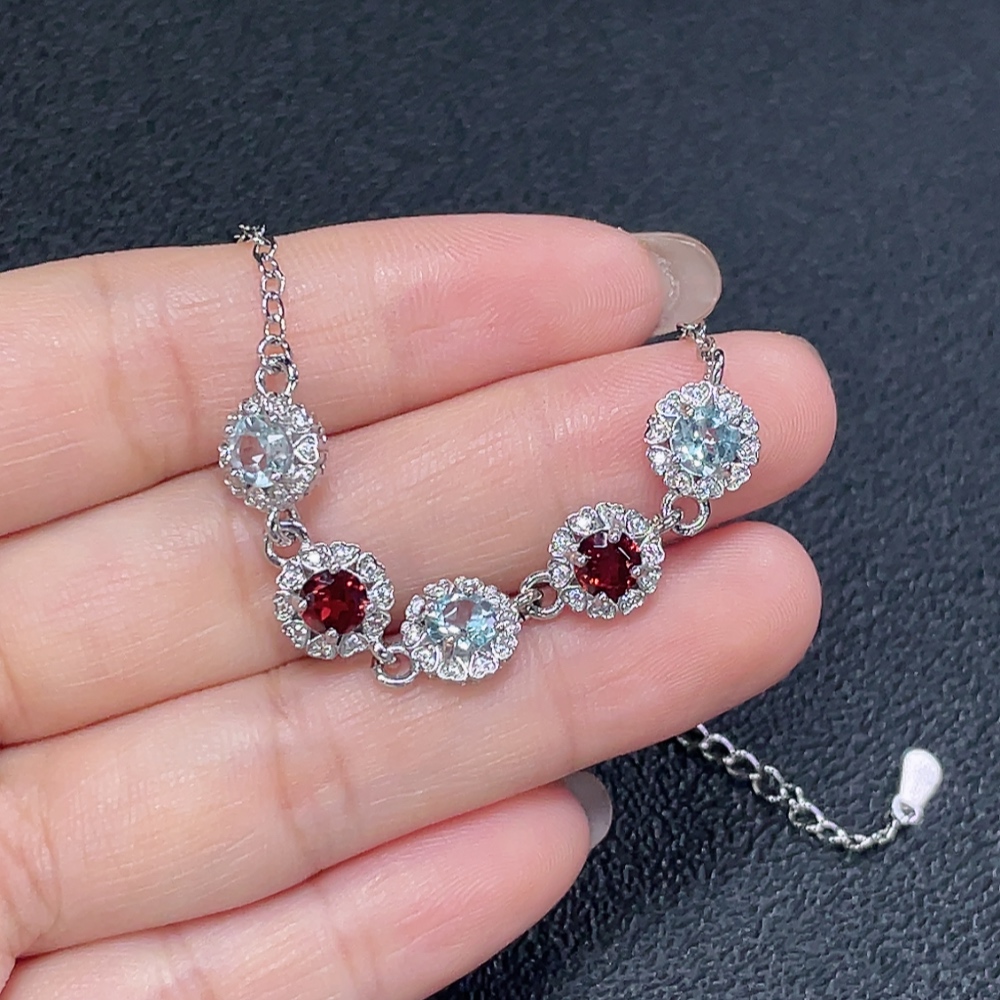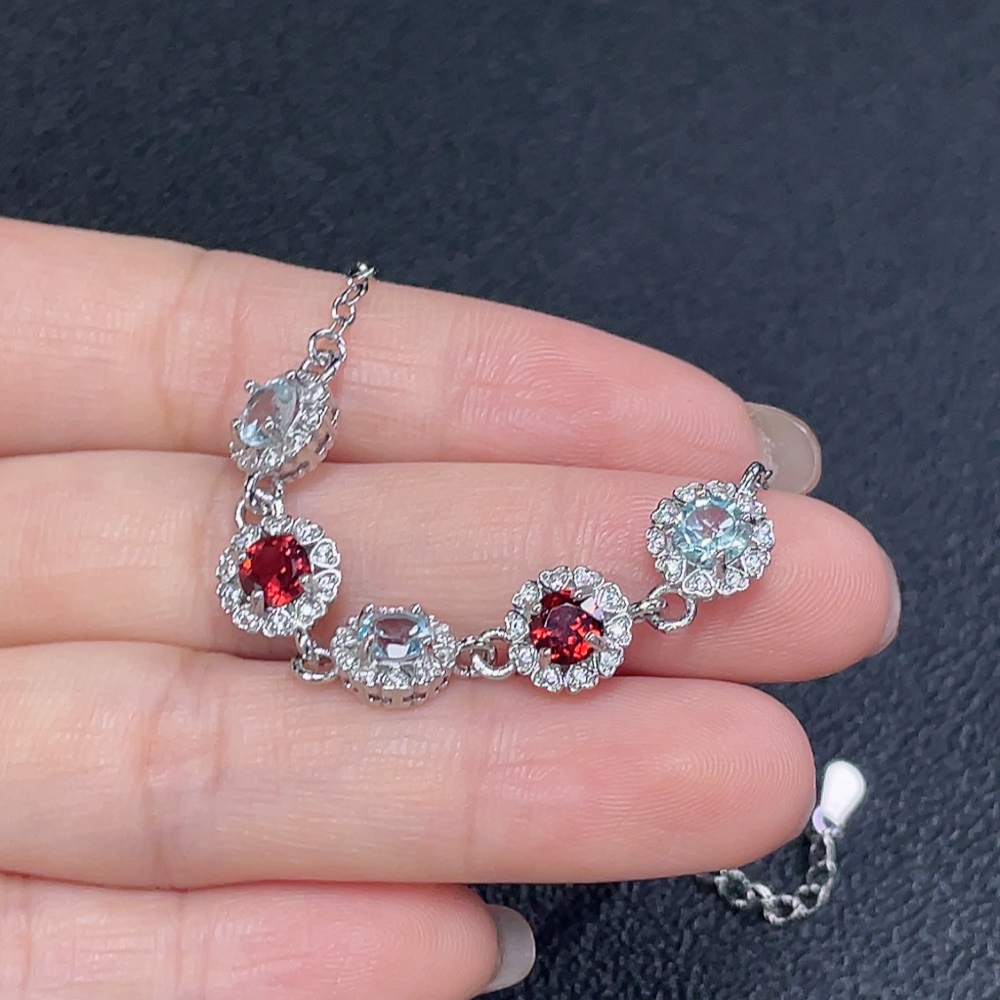 Topaz with undetermined color origin paired with garnet bracelet, non-gold, total product weight approximately 4.37g