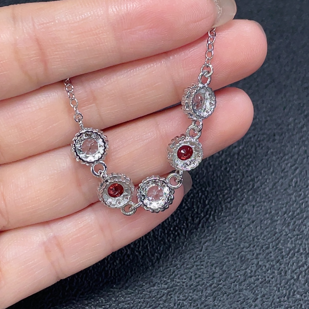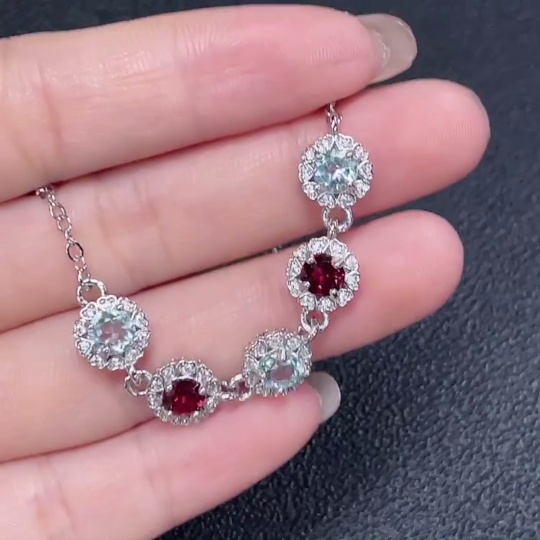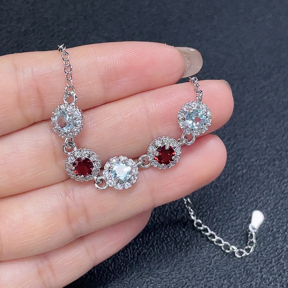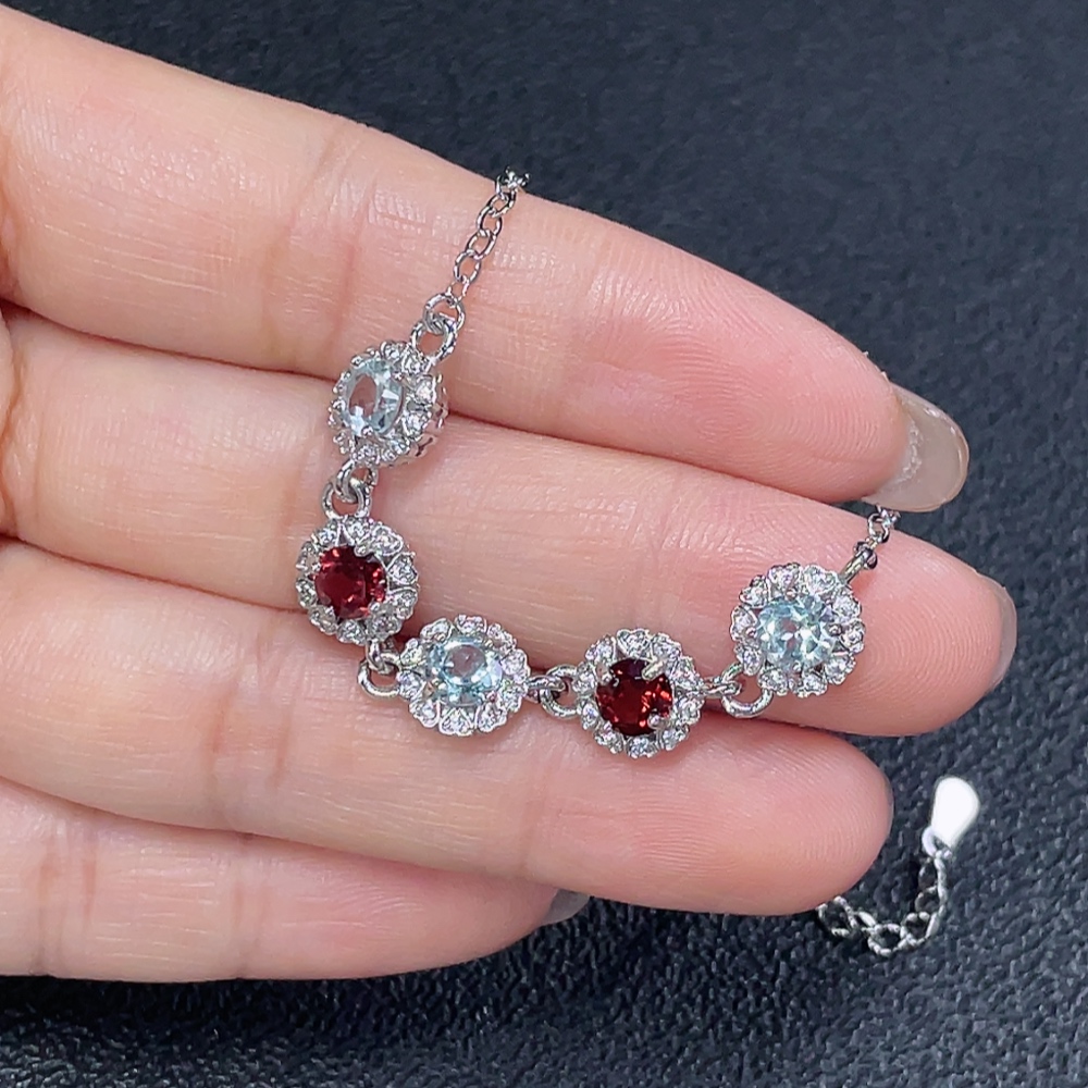 Topaz with undetermined color origin paired with garnet bracelet, non-gold, total product weight approximately 4.37g