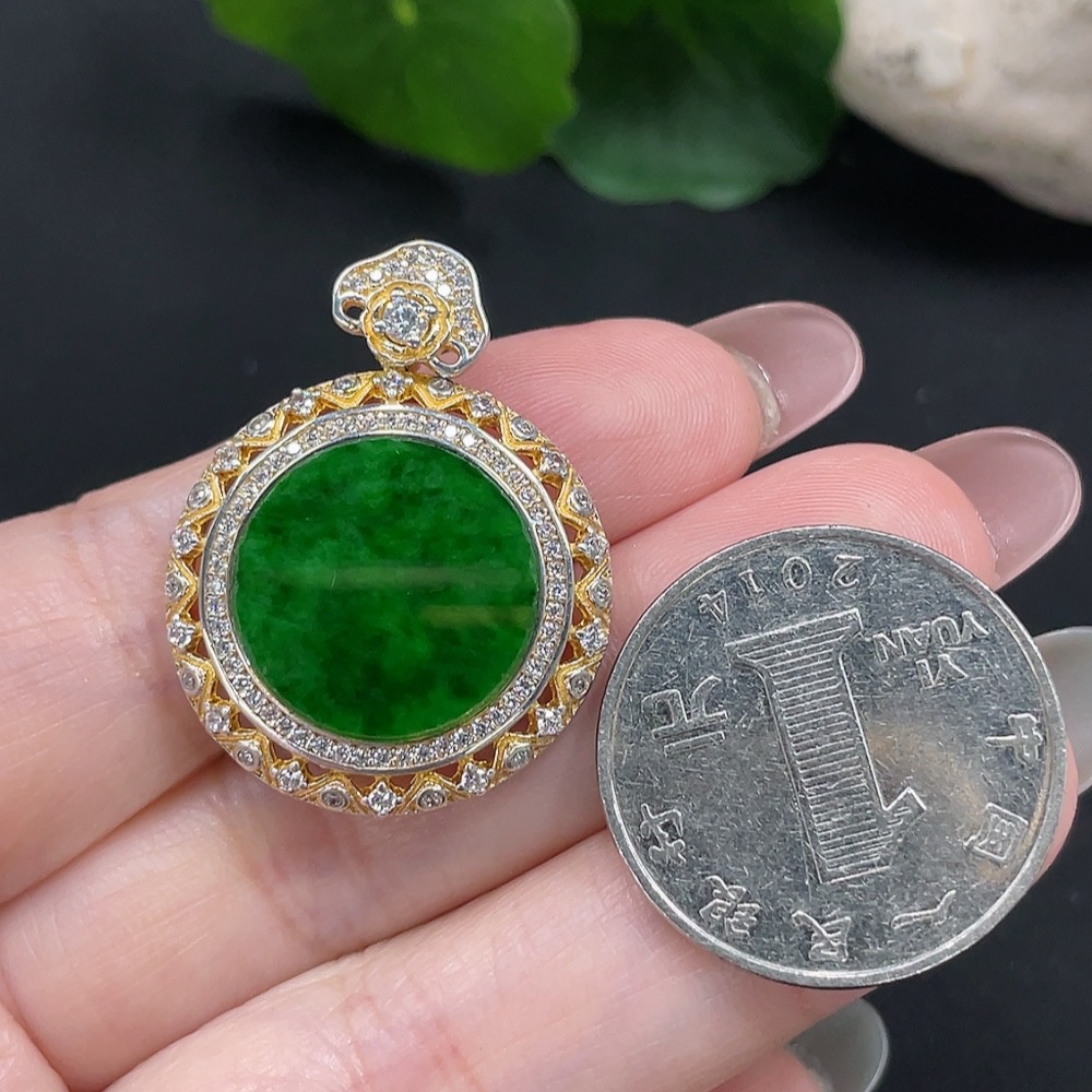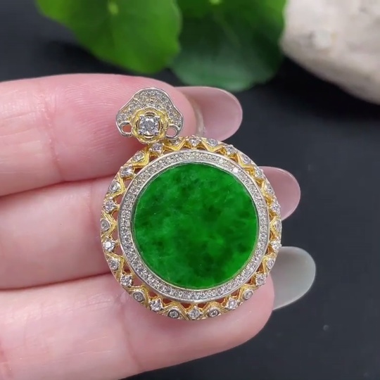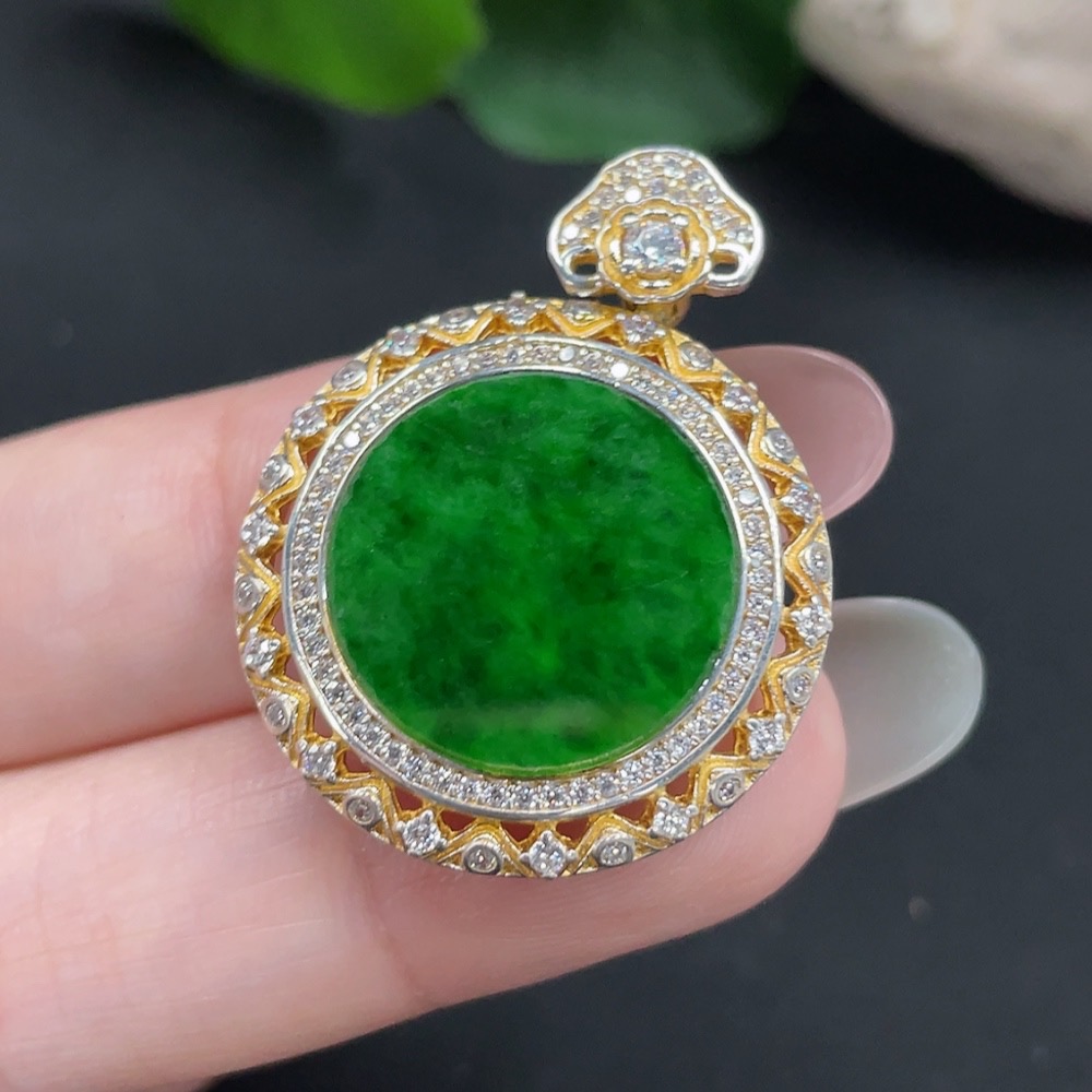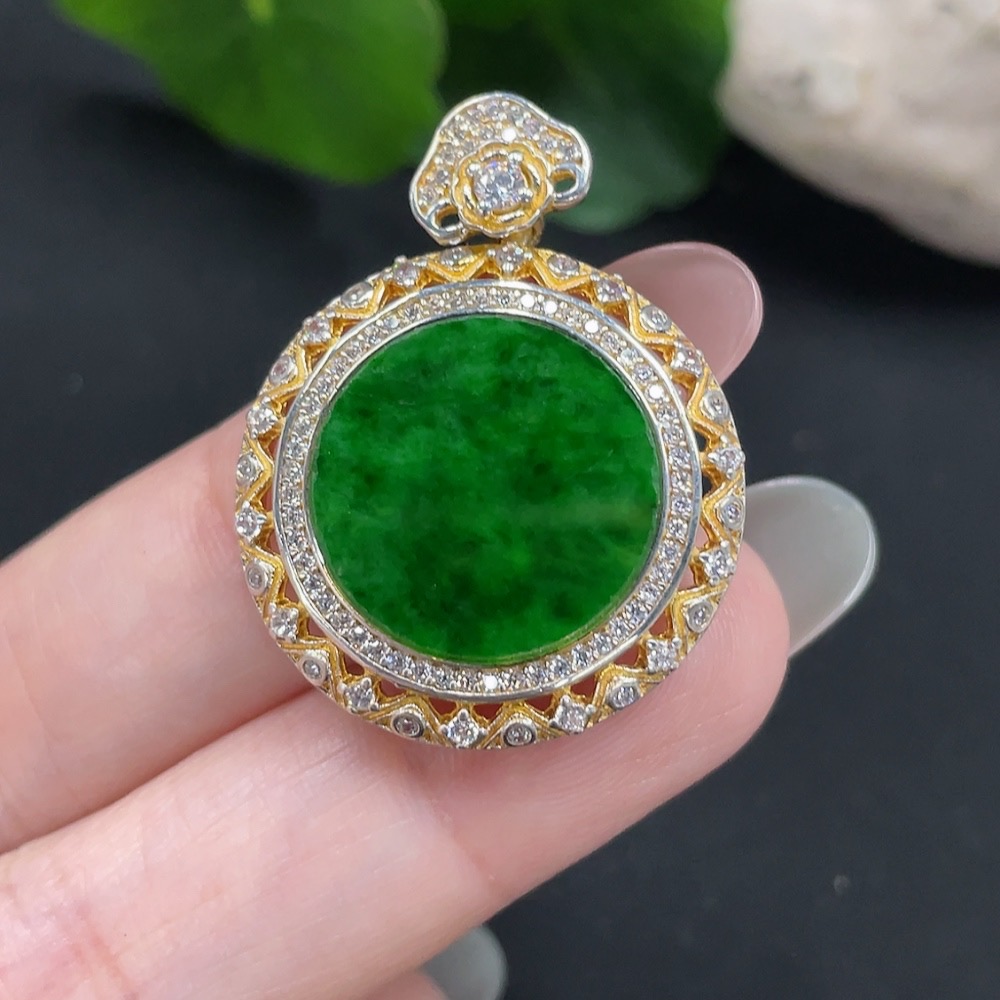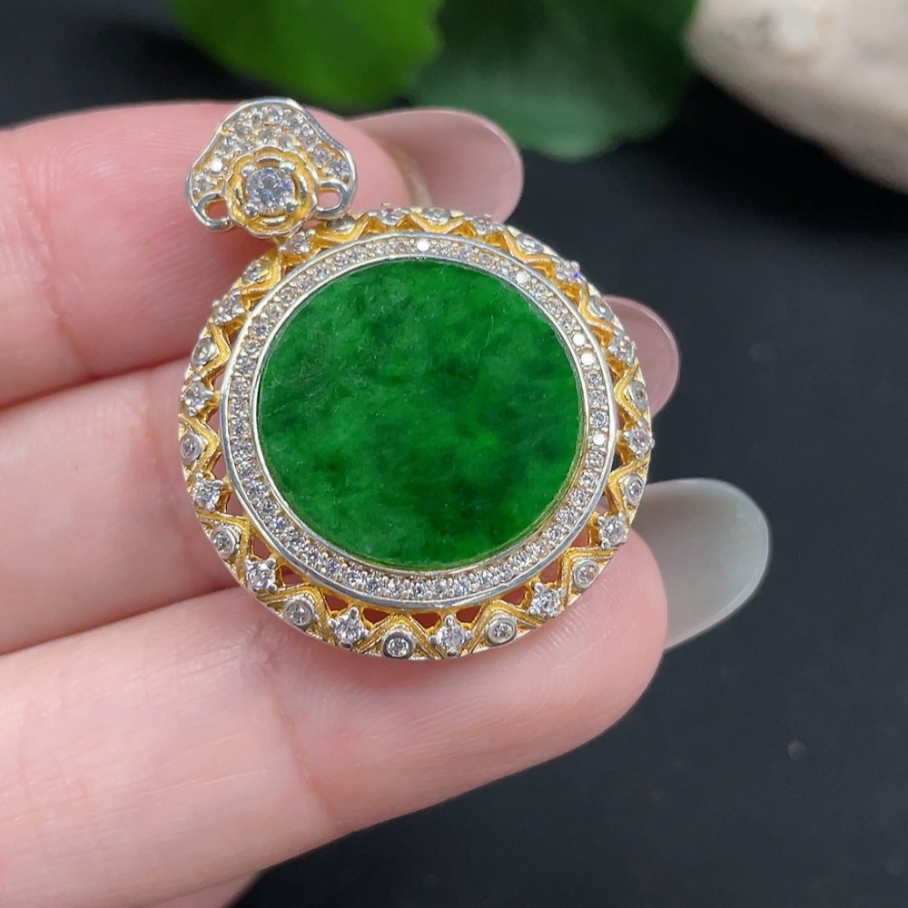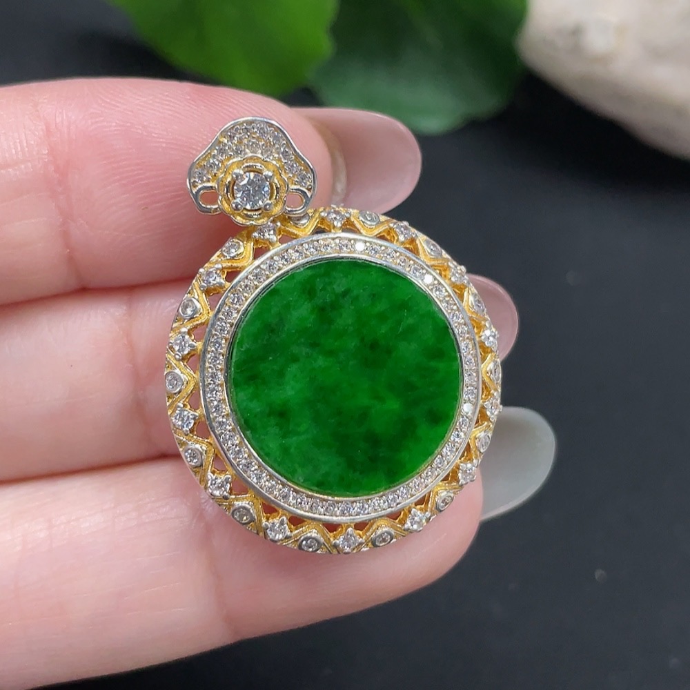 Jadeite Inlaid Pendant Total Weight Approx.5.7g (Non-Gold Inlaid)
