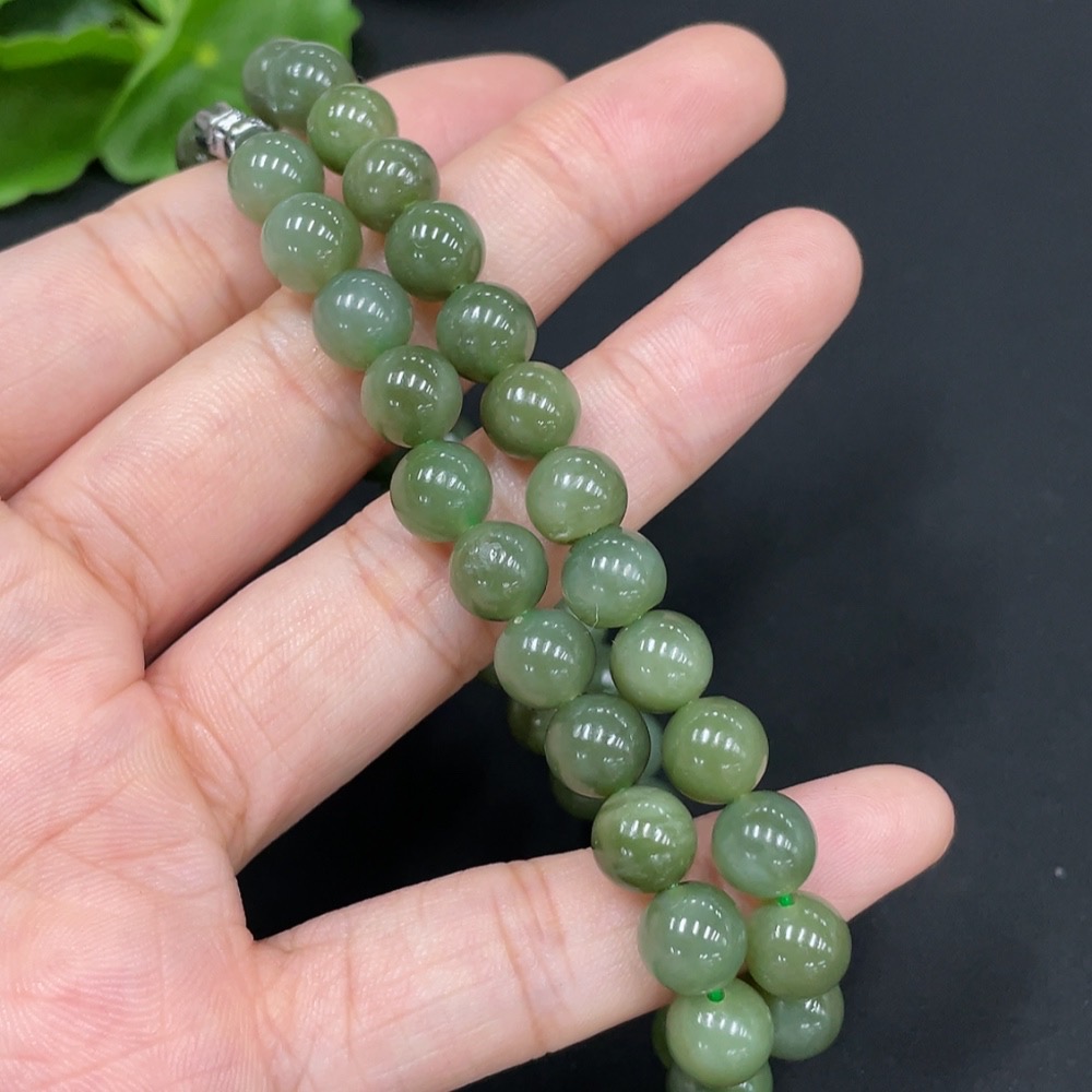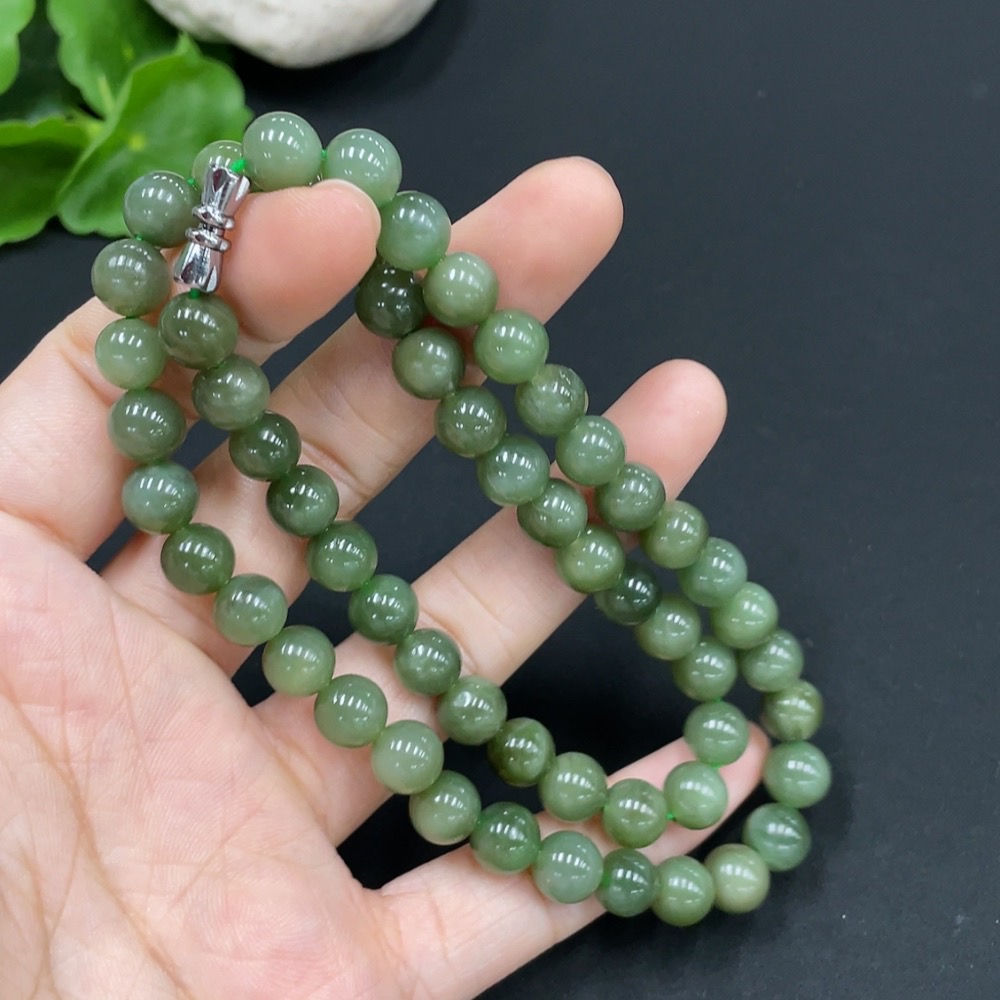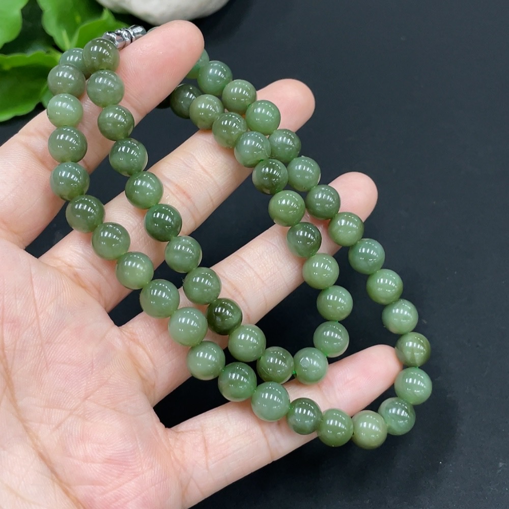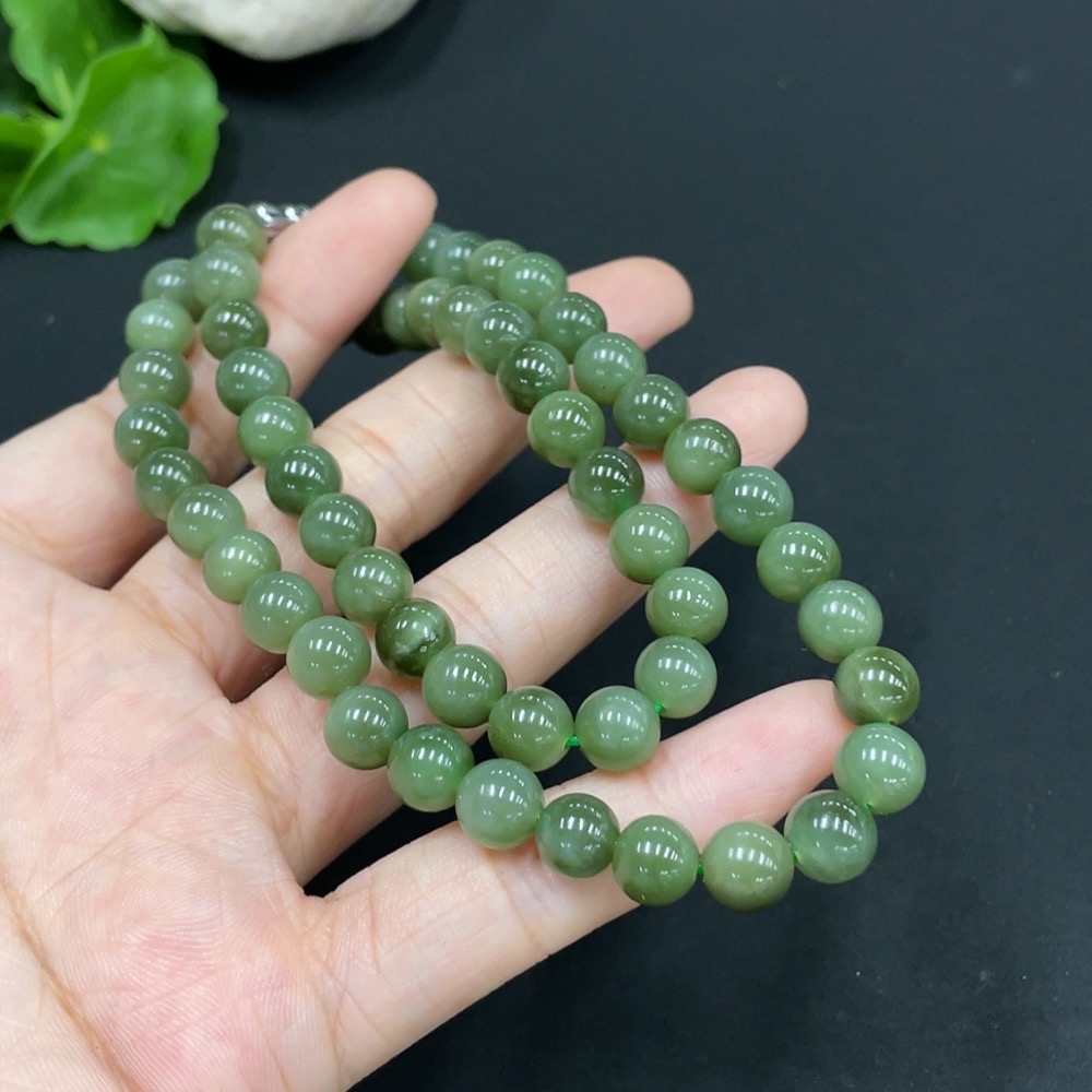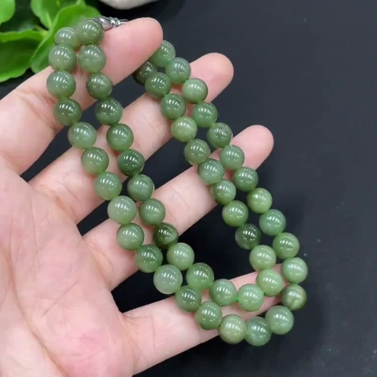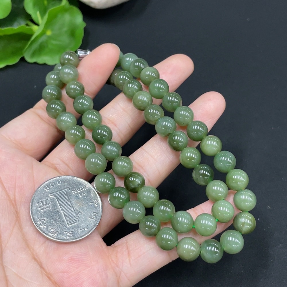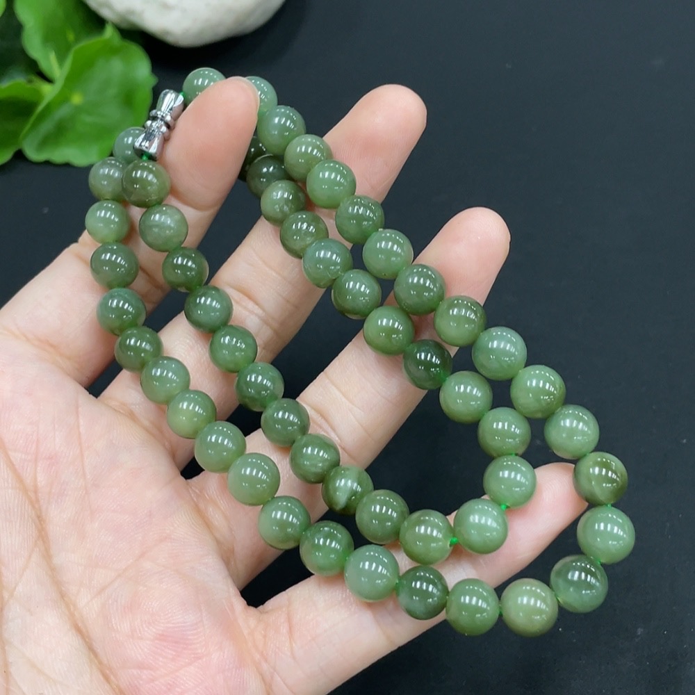 Hetian Jade Bead Necklace, Approx. 7.6mm, Total Weight Approx. 42.3g, Non-Gold