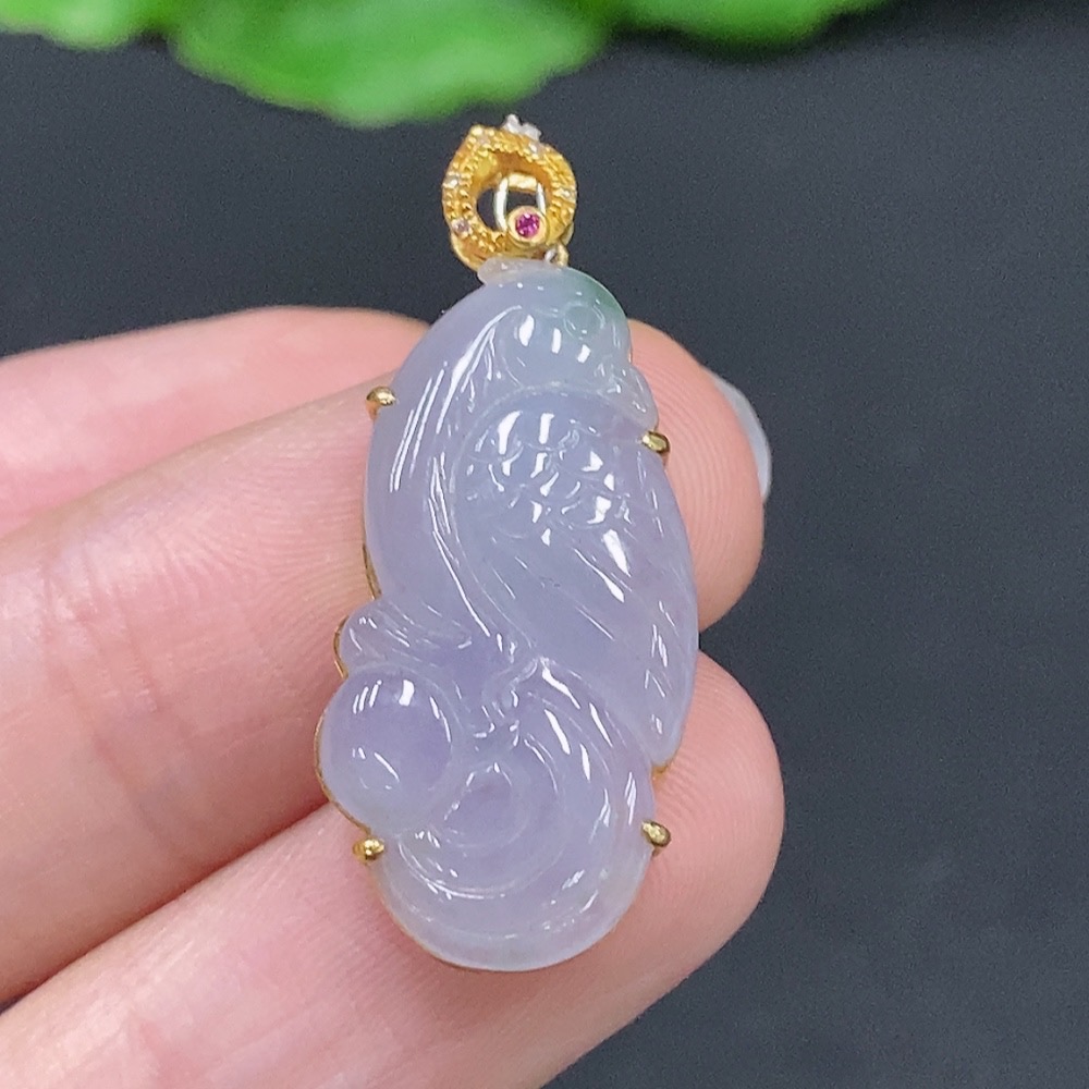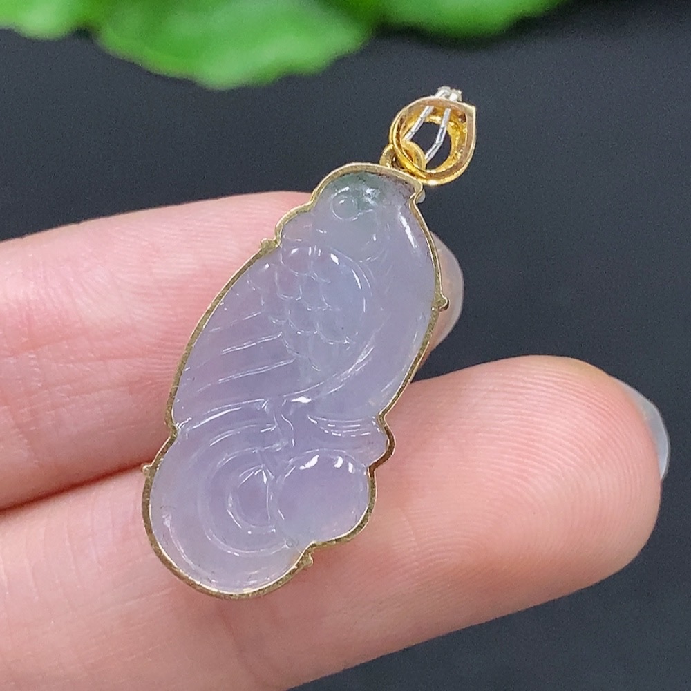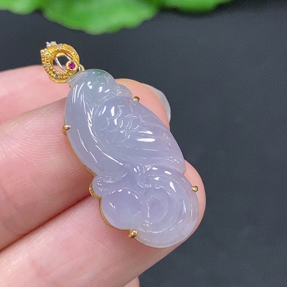 Jadeite Parrot Pendant 18k Gold Total Weight Approx. 2.8g