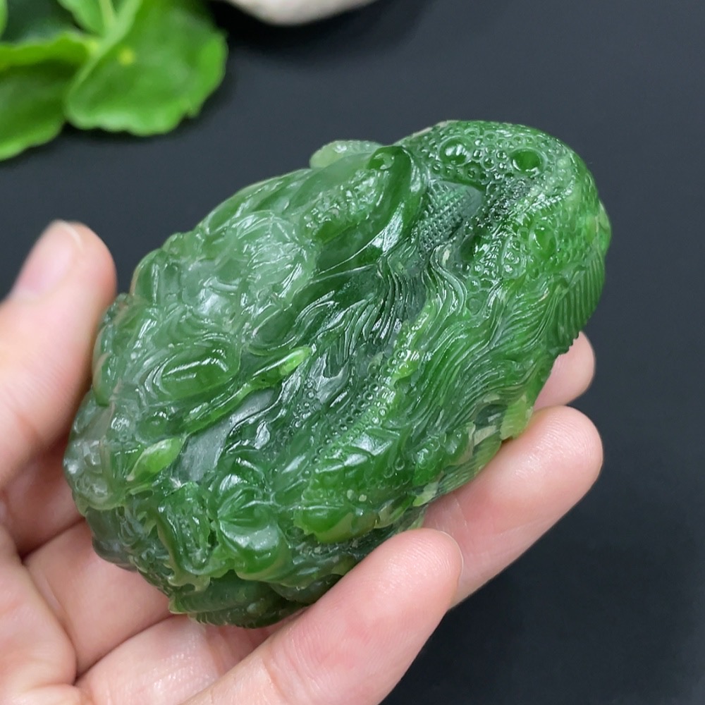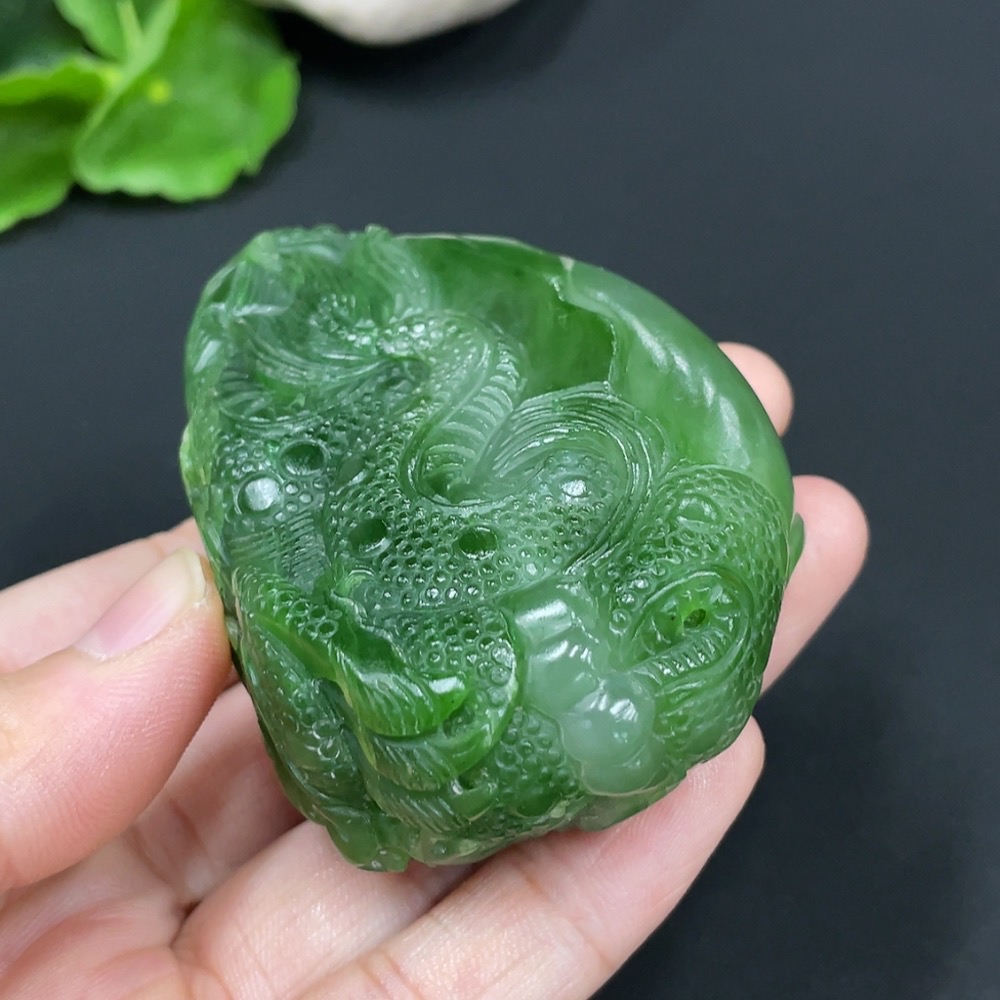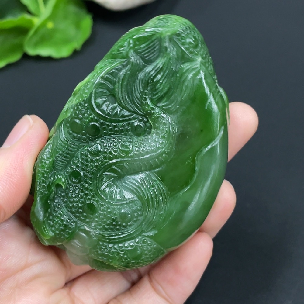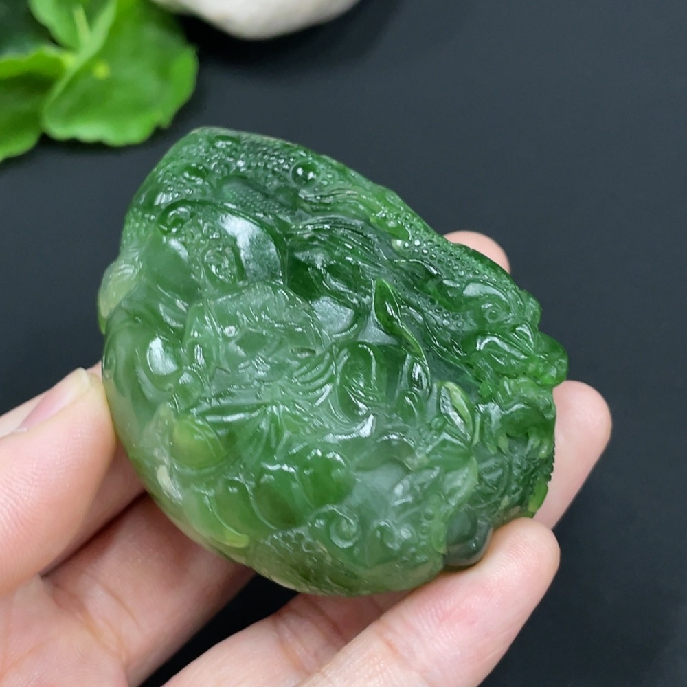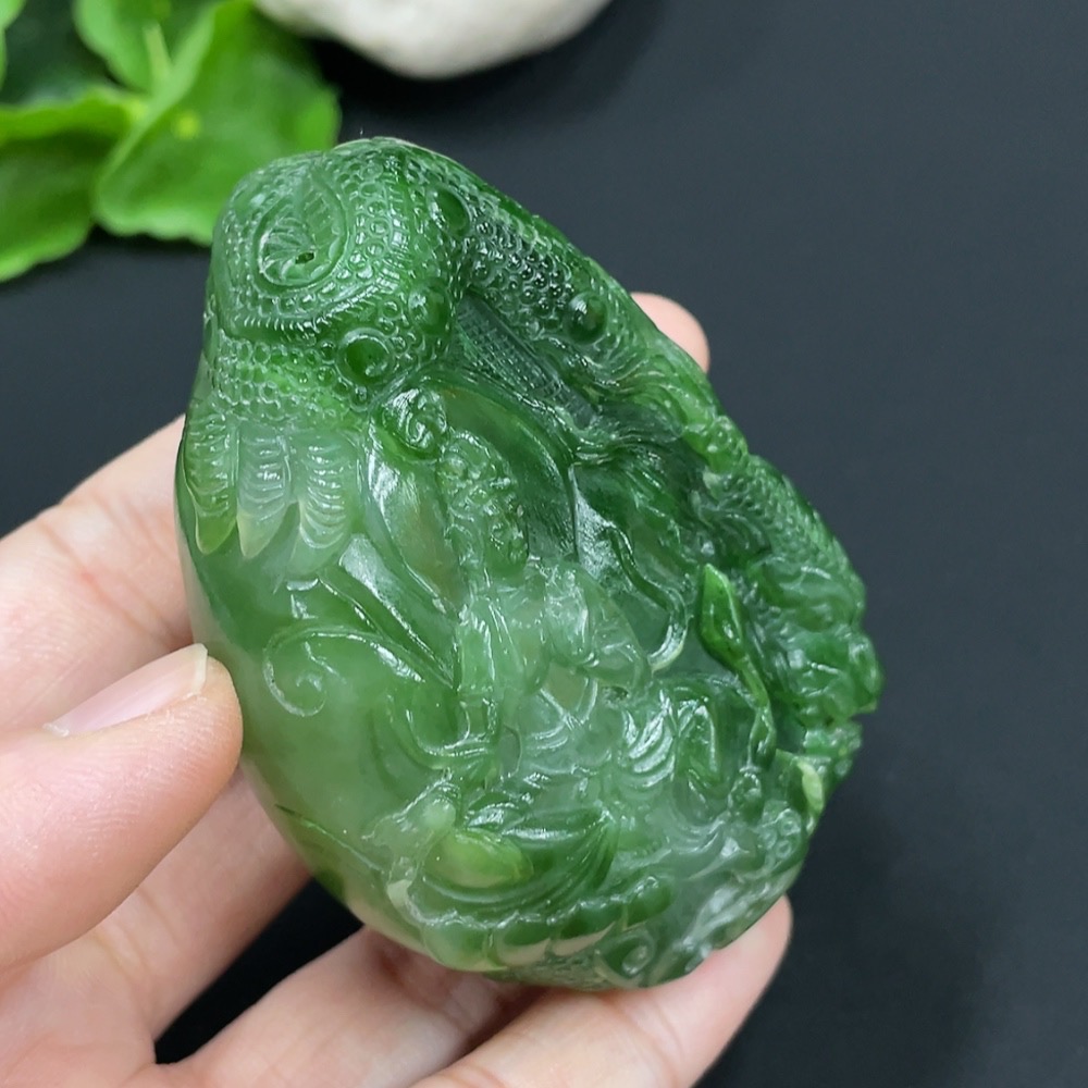 Hetian Jade Handheld Piece - Imperial Dragon Guanyin, Total Weight Approx. 131.3g