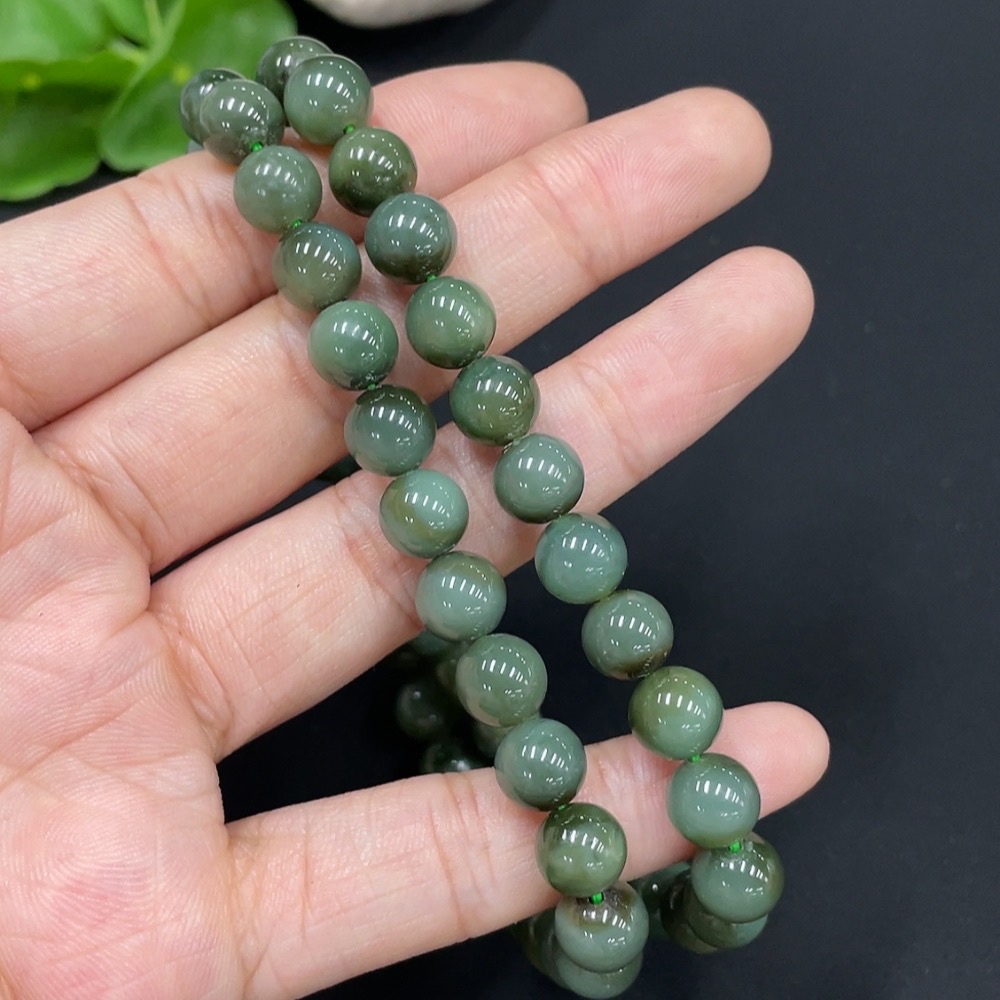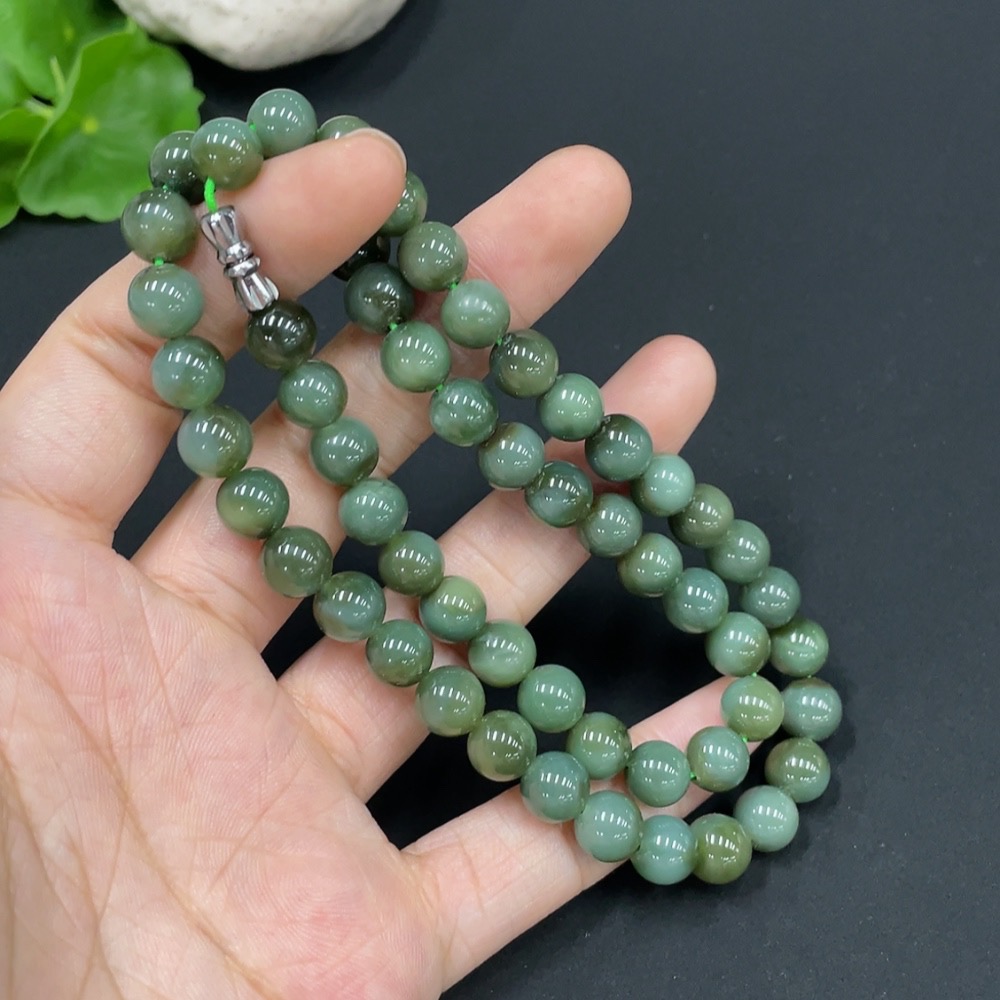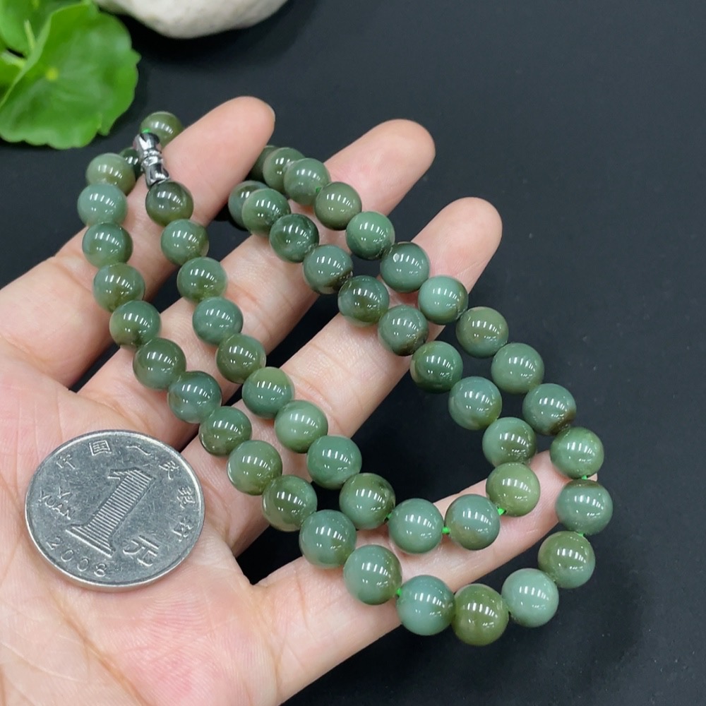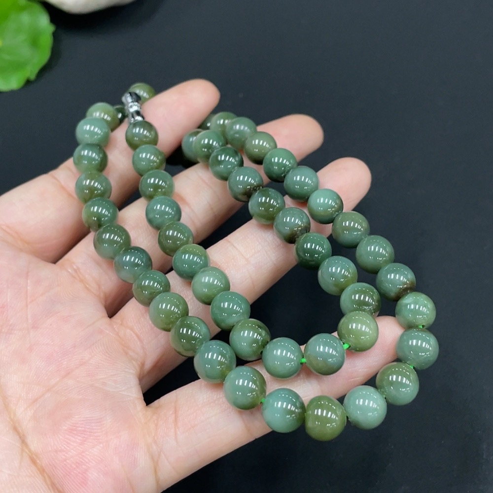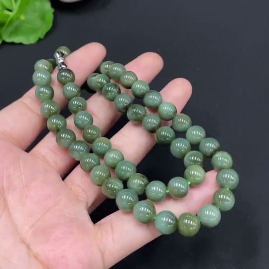 Hetian Jade Bead Necklace Approx. 7.8mm Total Weight About 45.1g Non-Gold
