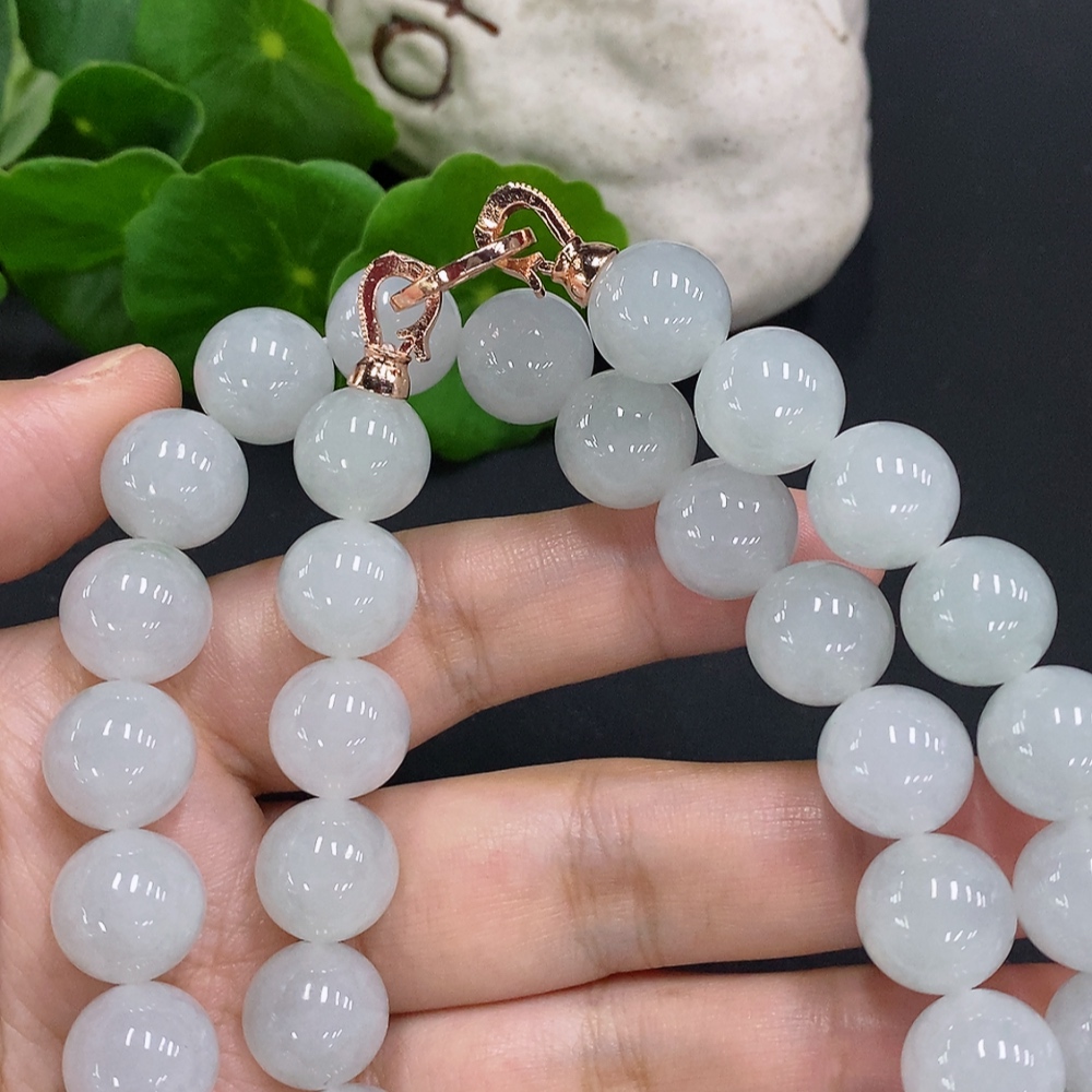Jadeite Bead Necklace Approx. 12.3mm Non-Gold Total Weight Approx. 140g
