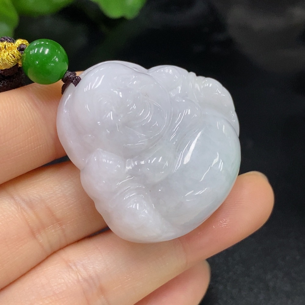 Jadeite Buddha Pendant with a total weight of approximately 35.29g (including rope) and non-A grade beads