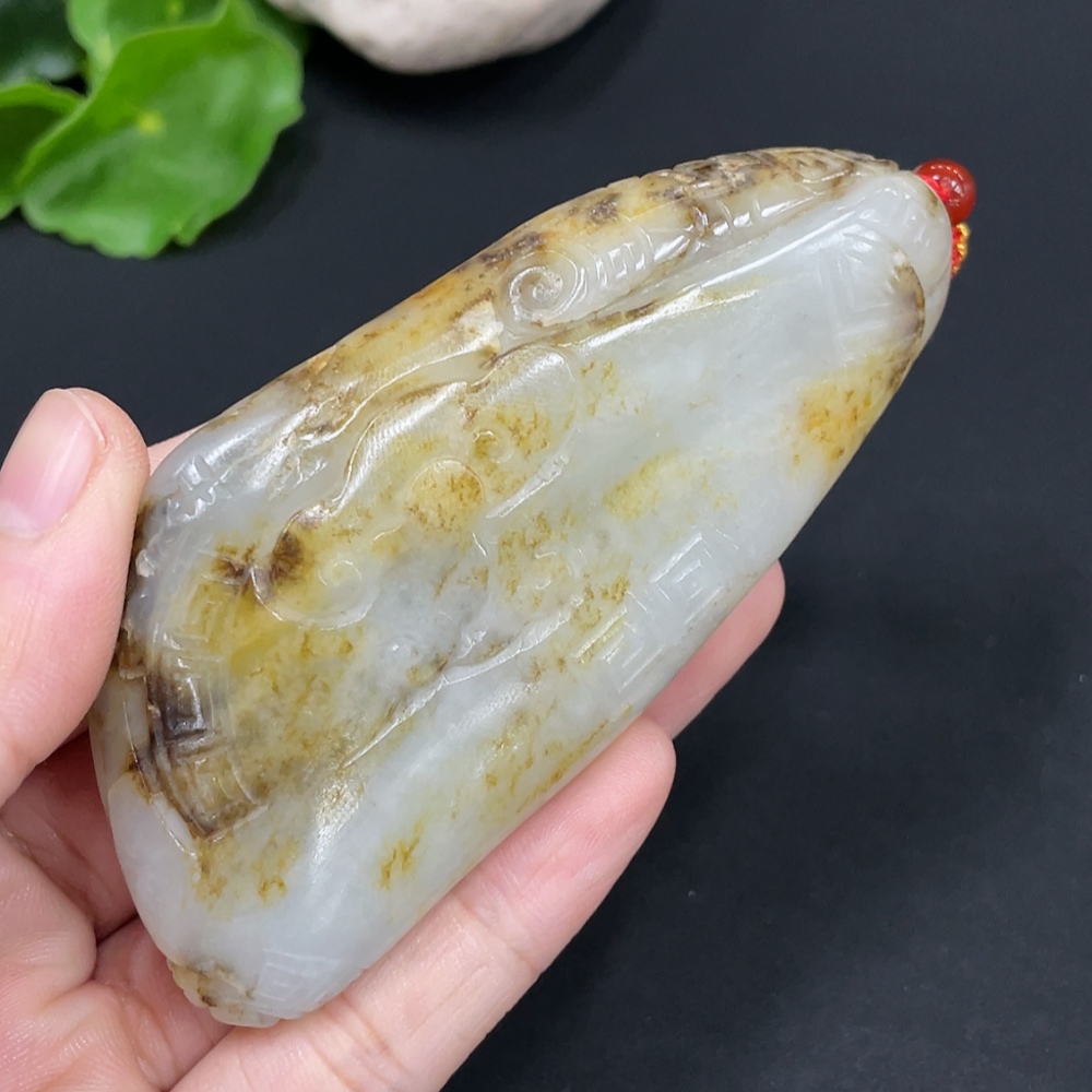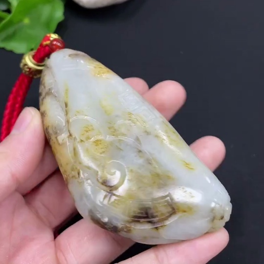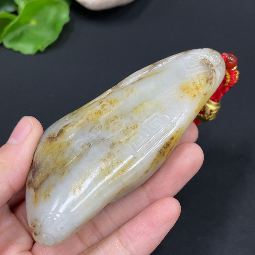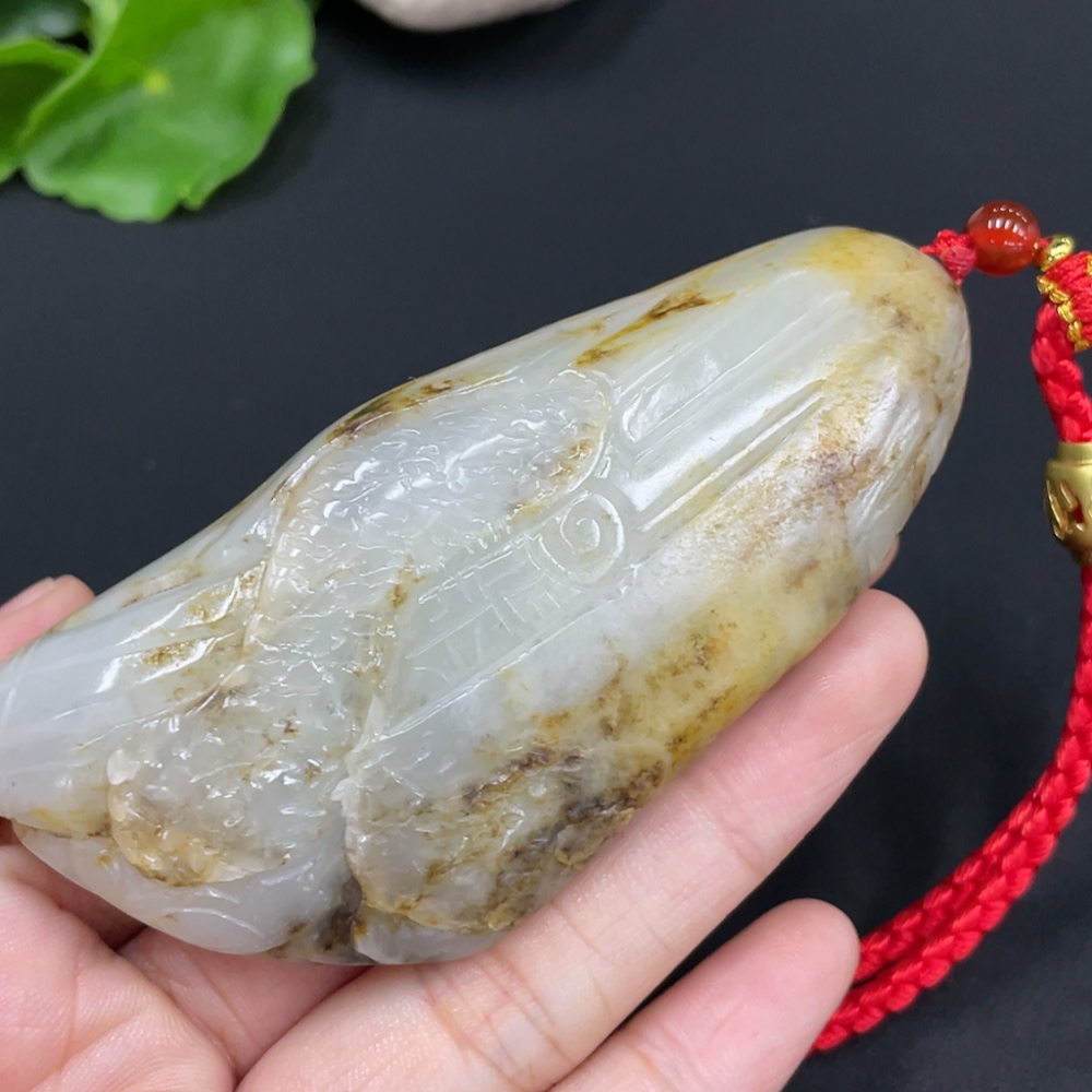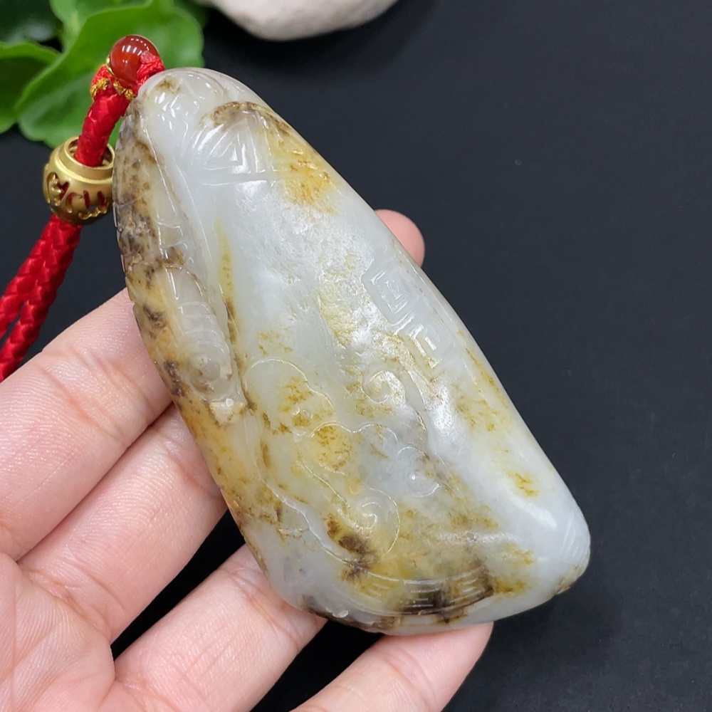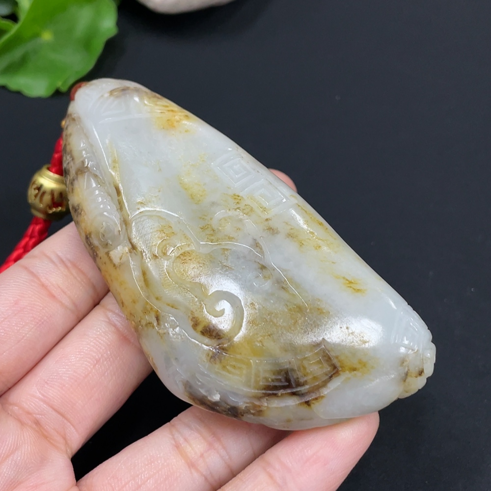 Hetian Jade Seed Material Handheld Piece, Antique-style Piece, Total Weight Approximately (Including String) 108.3g, Undetermined Skin Color Origin