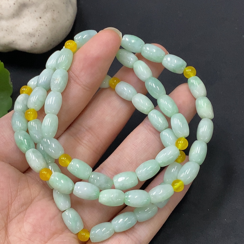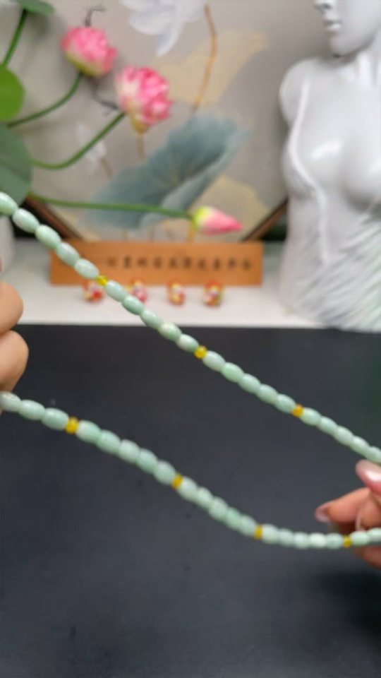 Jadeite Bead Necklace with Non-A Grade Beads, Total Weight Approximately 34.82g, Bead Size About 6.1mm