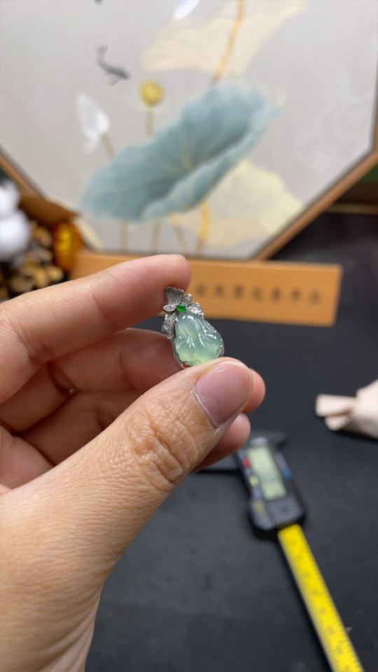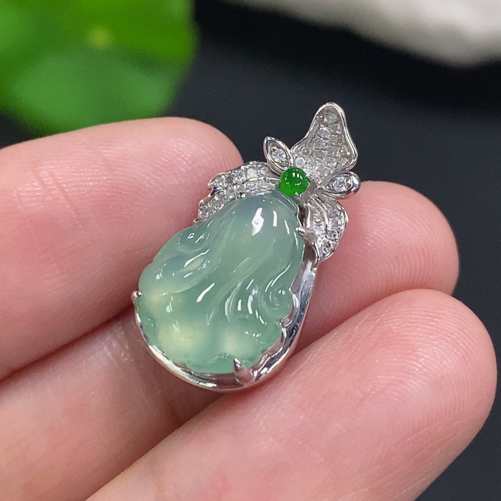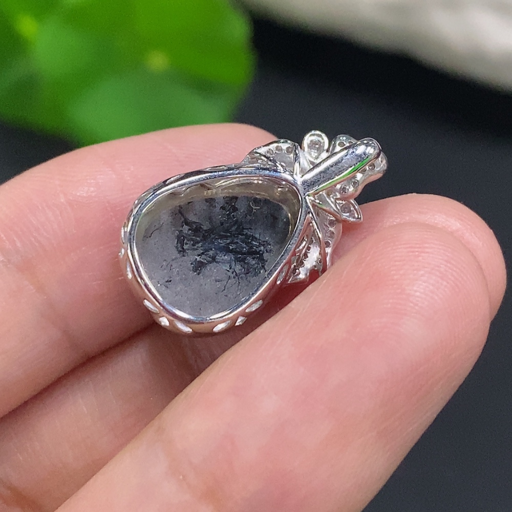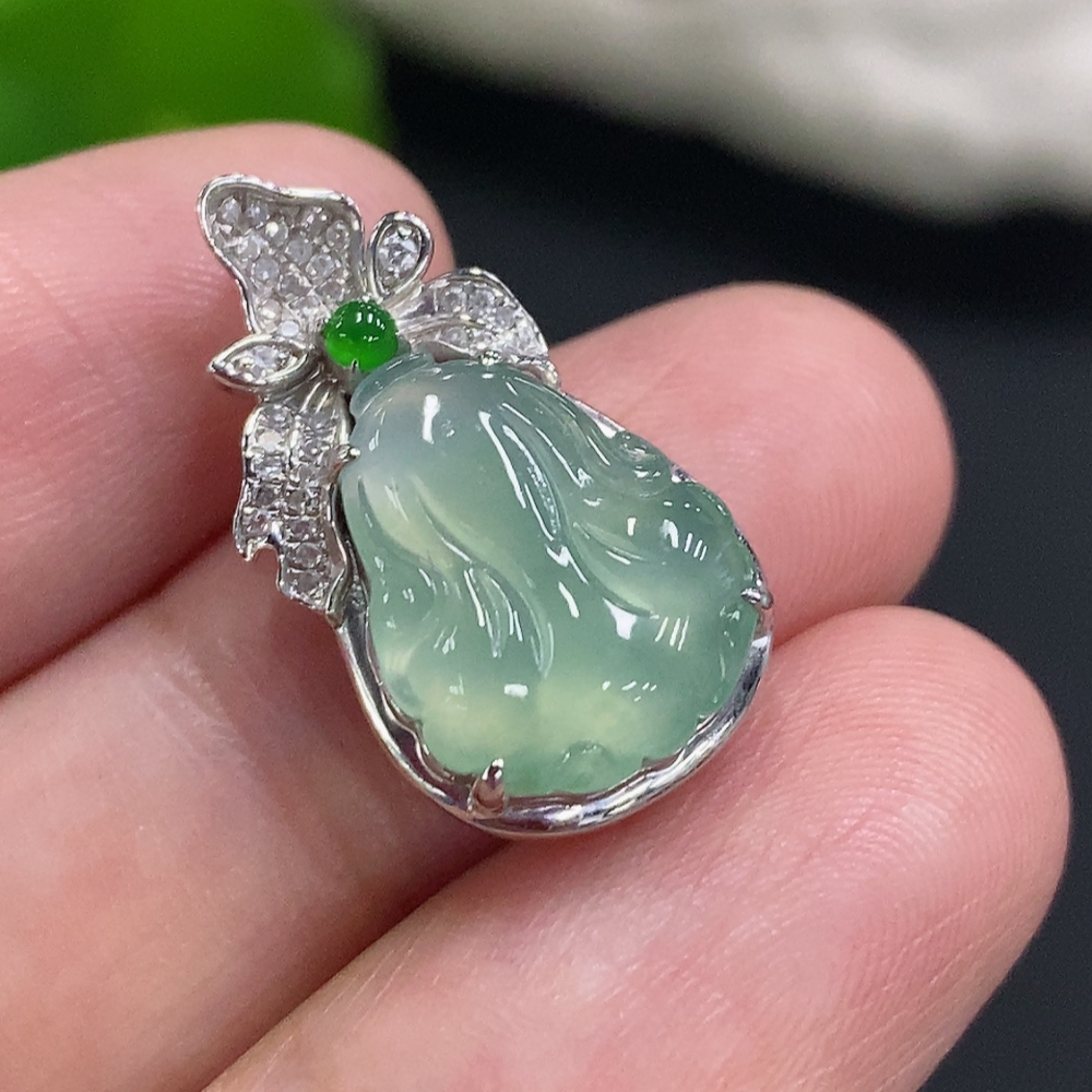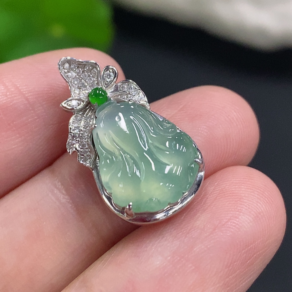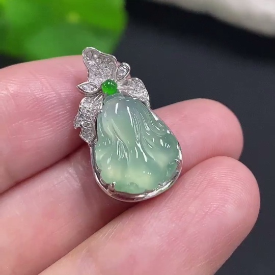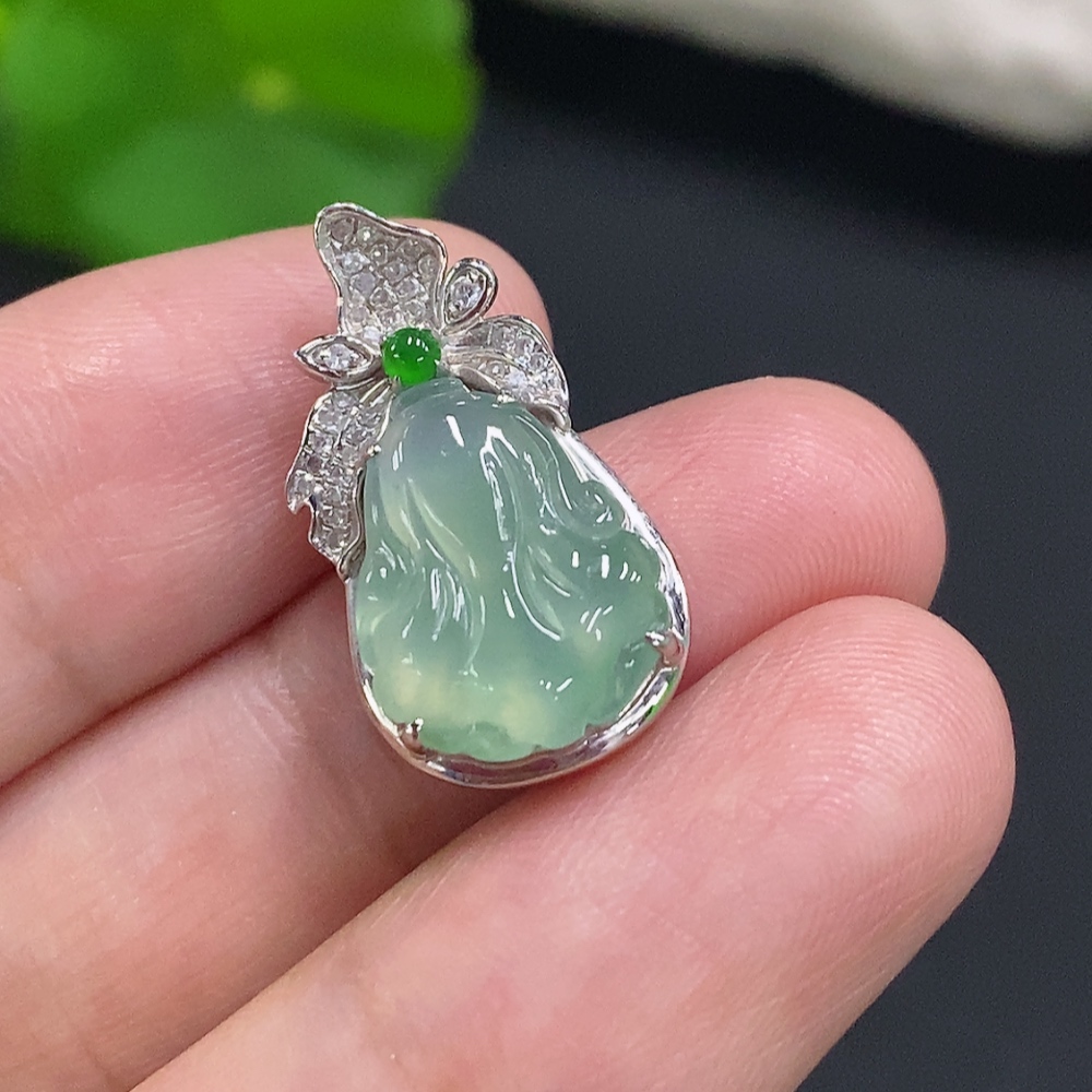 Jadeite Pendant in 18K Gold with Diamond Accents, Total Weight Approx. 2.4g