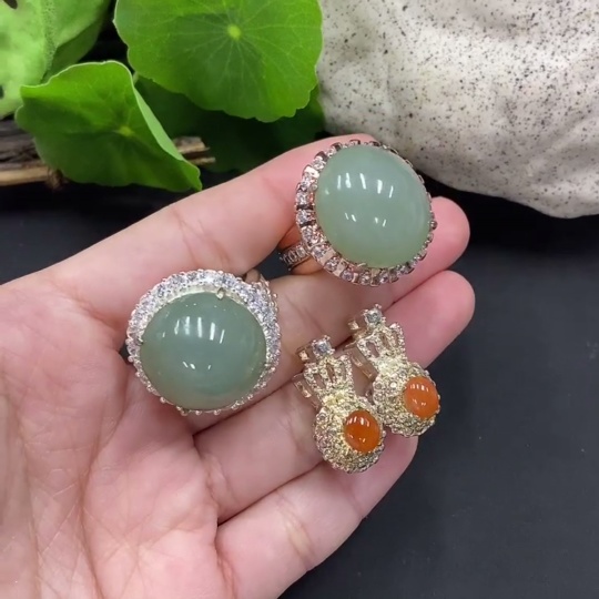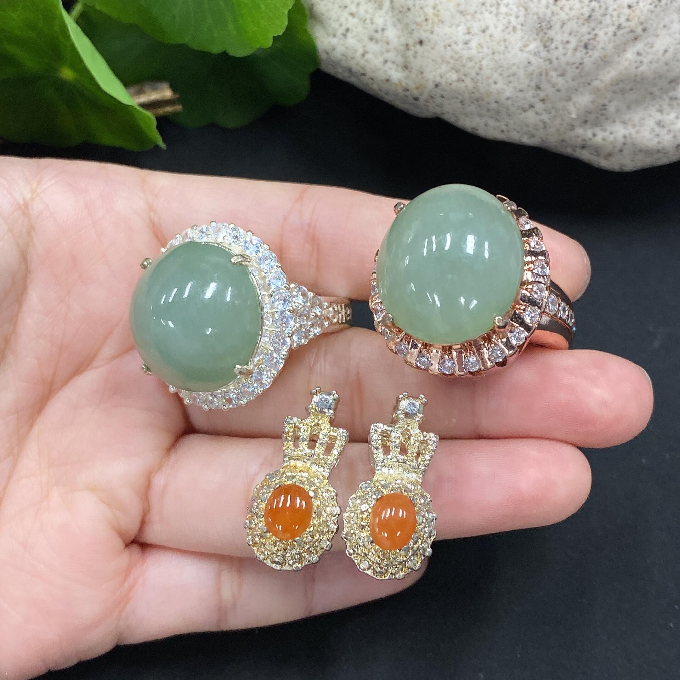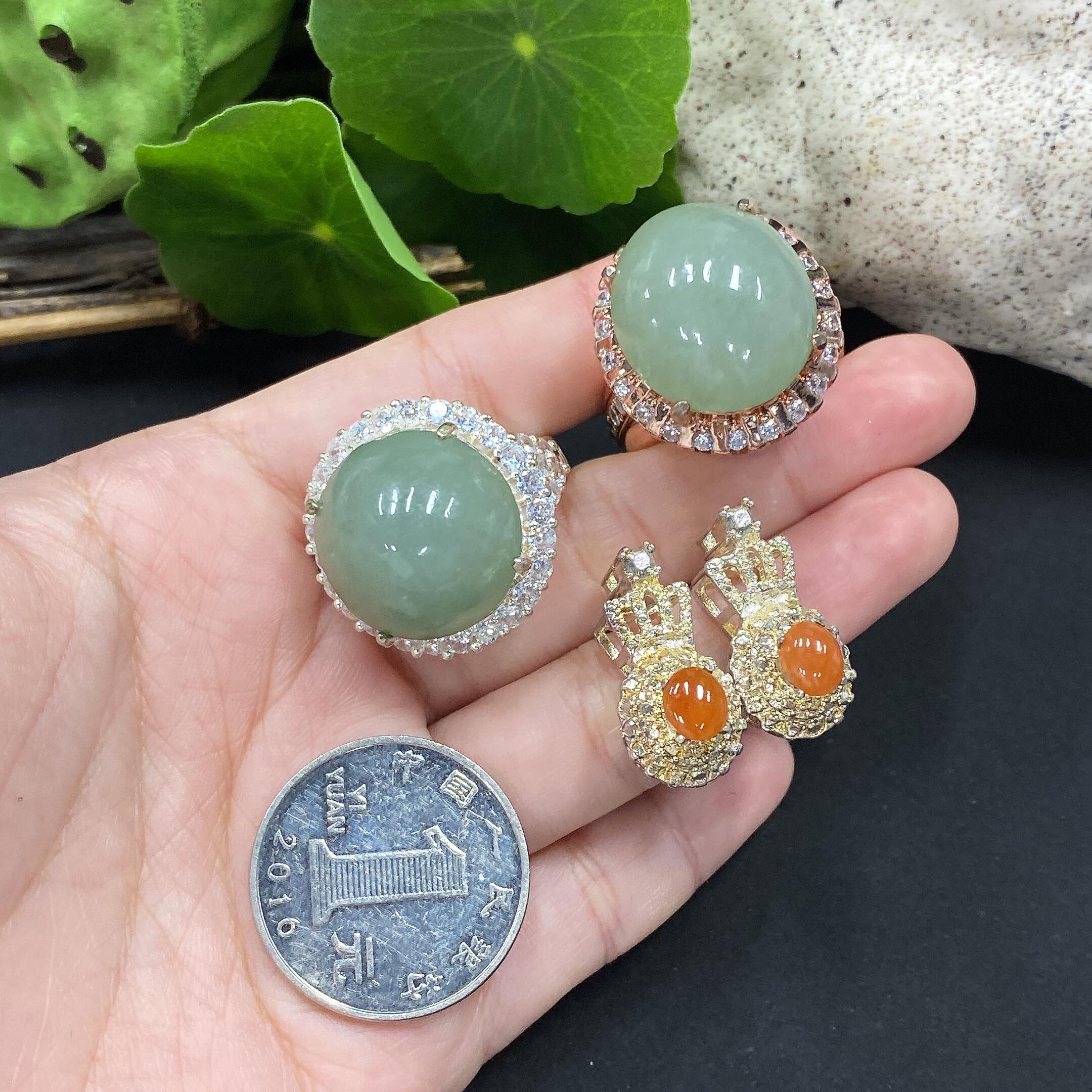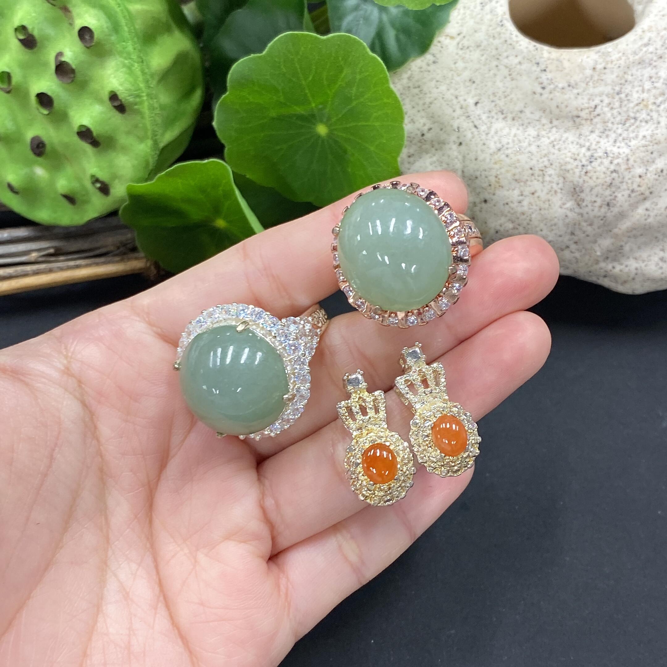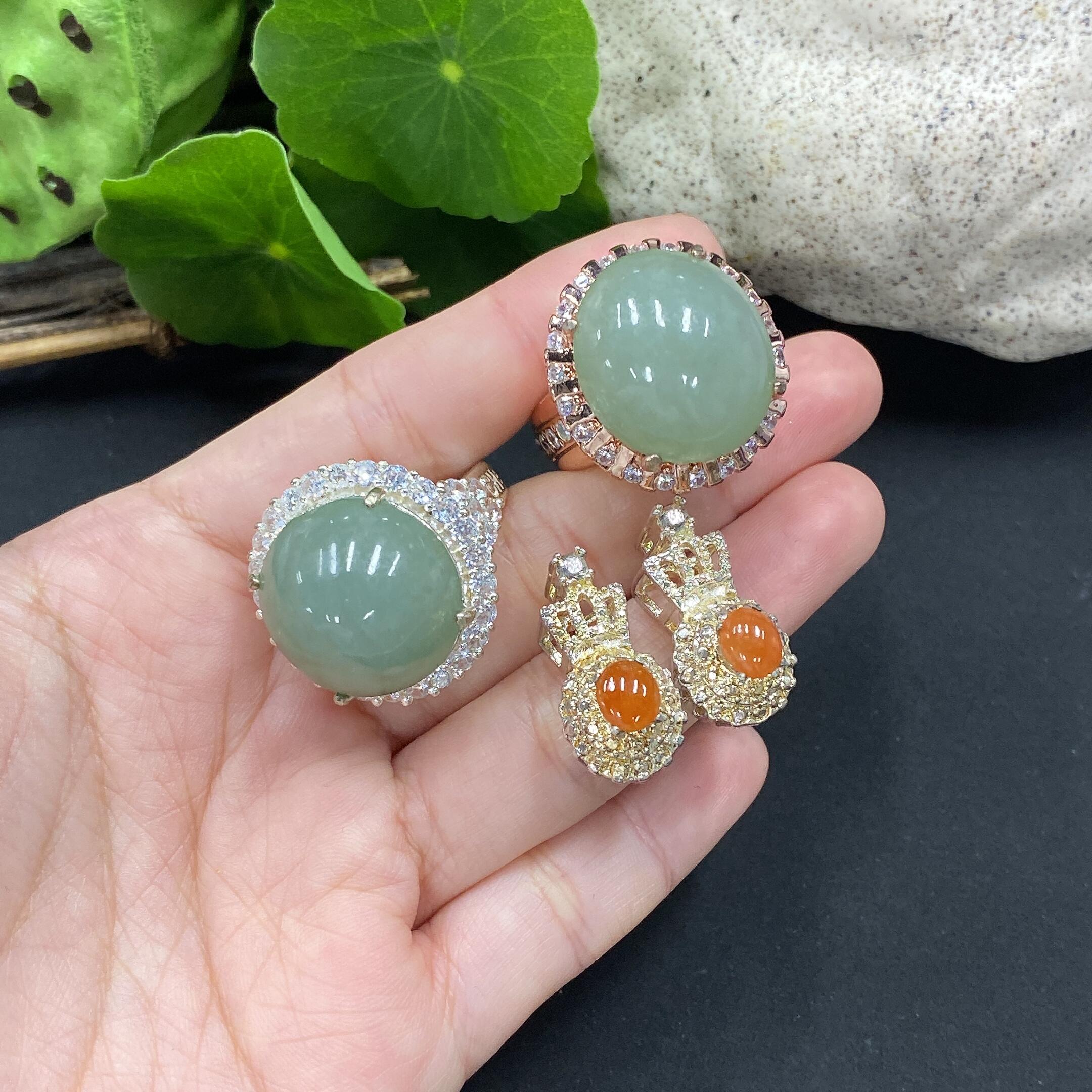 Jadeite inlaid set jewelry, some with纹裂, non-gold inlaid