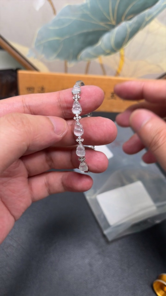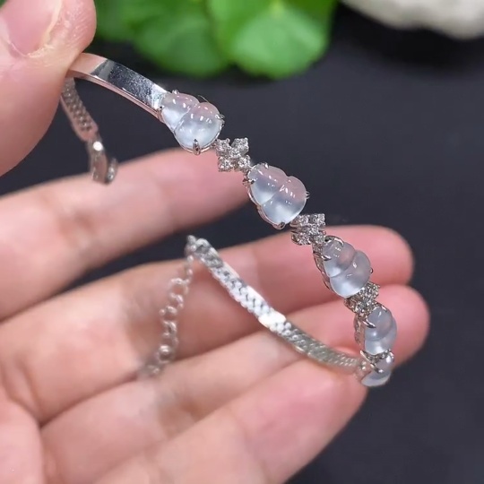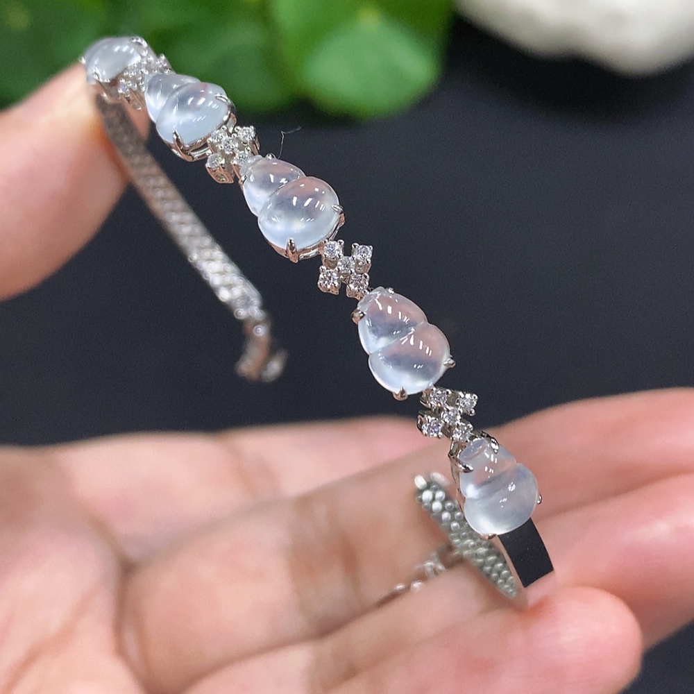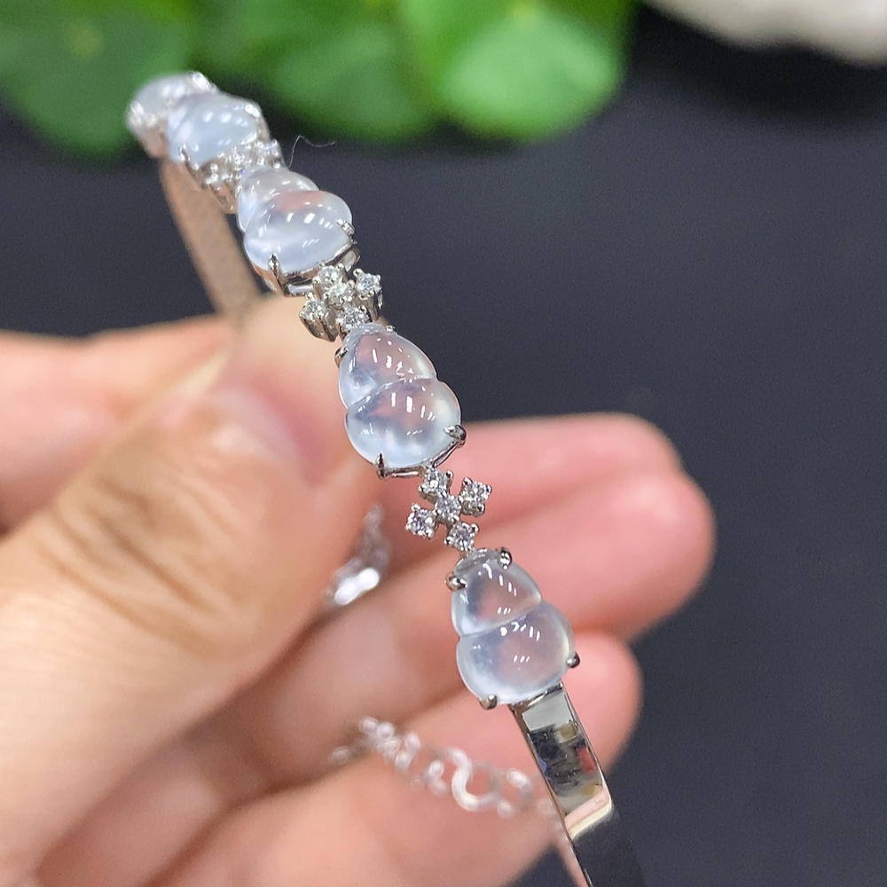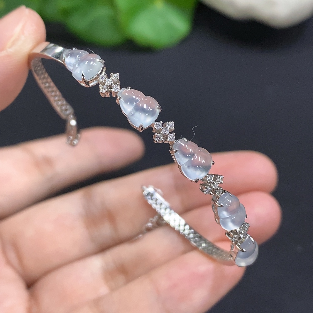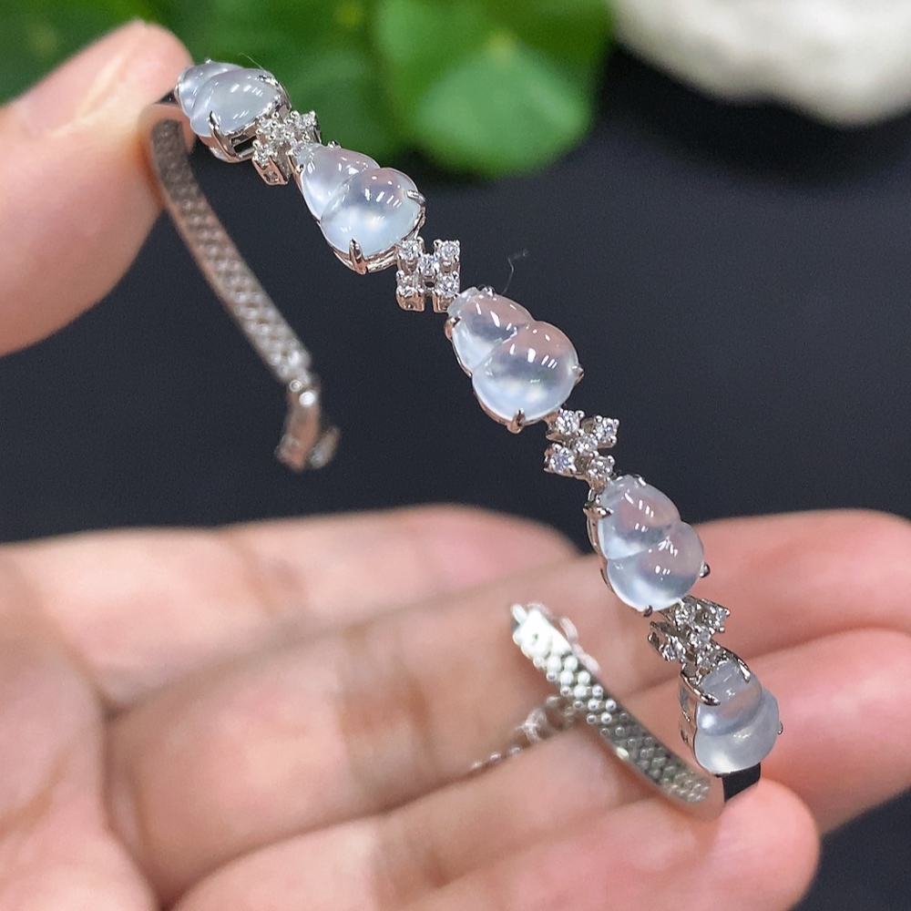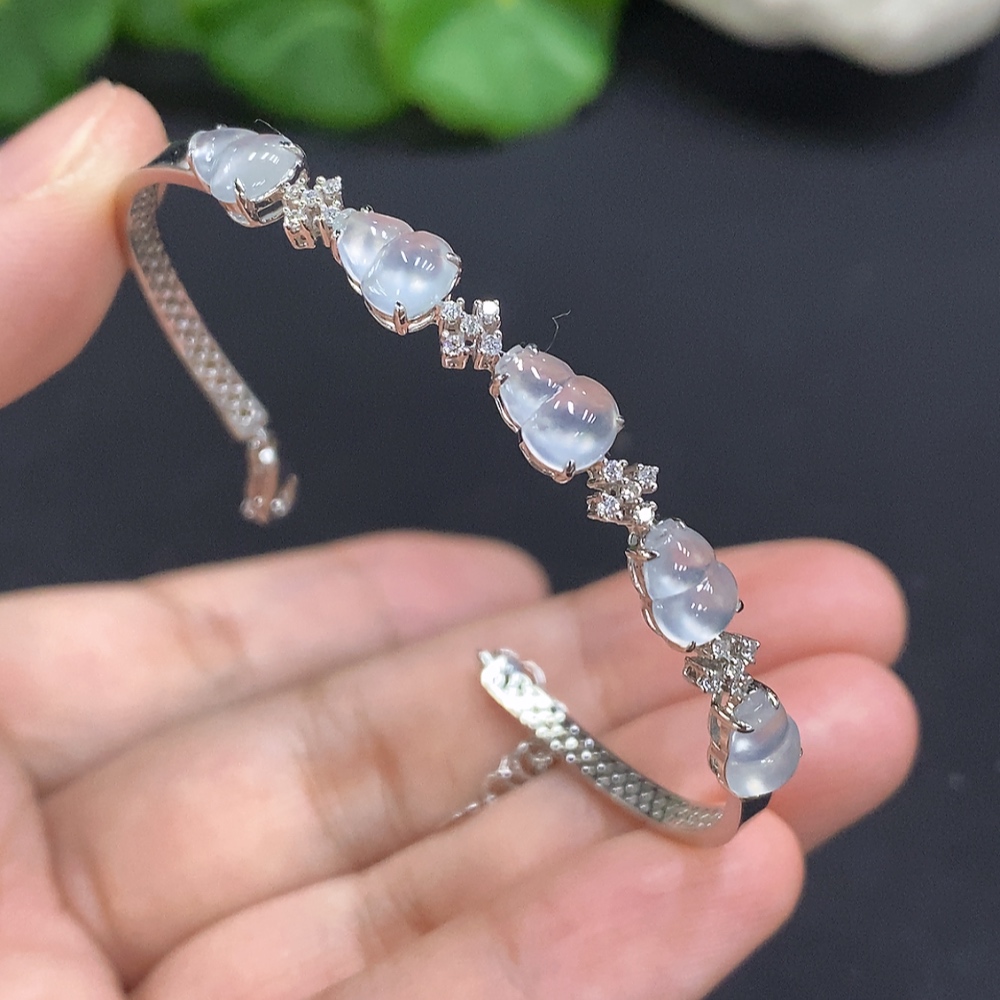 Jadeite Gourd Inlaid Bracelet 18K Gold Total Weight Approx. 5.8g (With Diamond Accents)