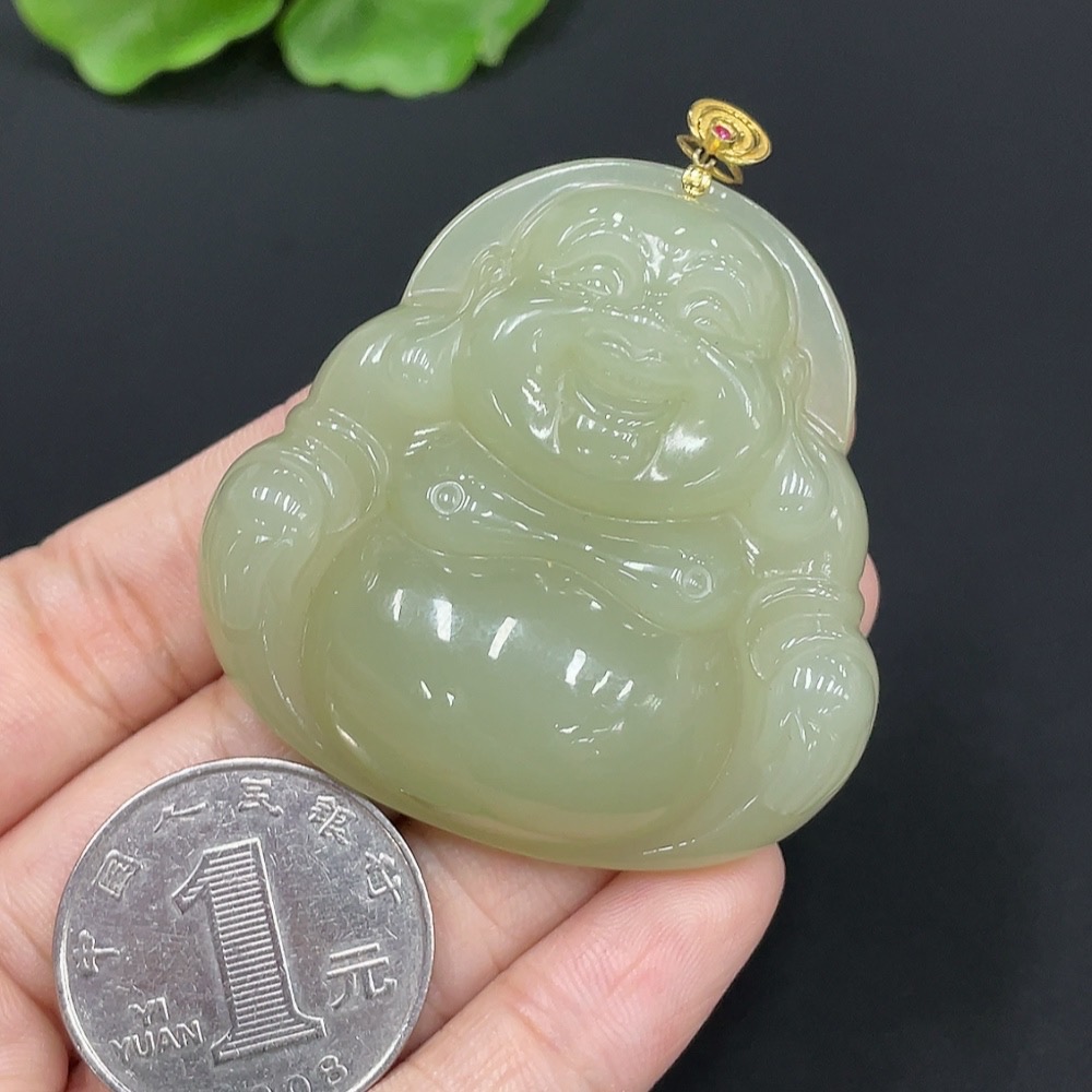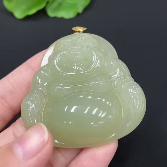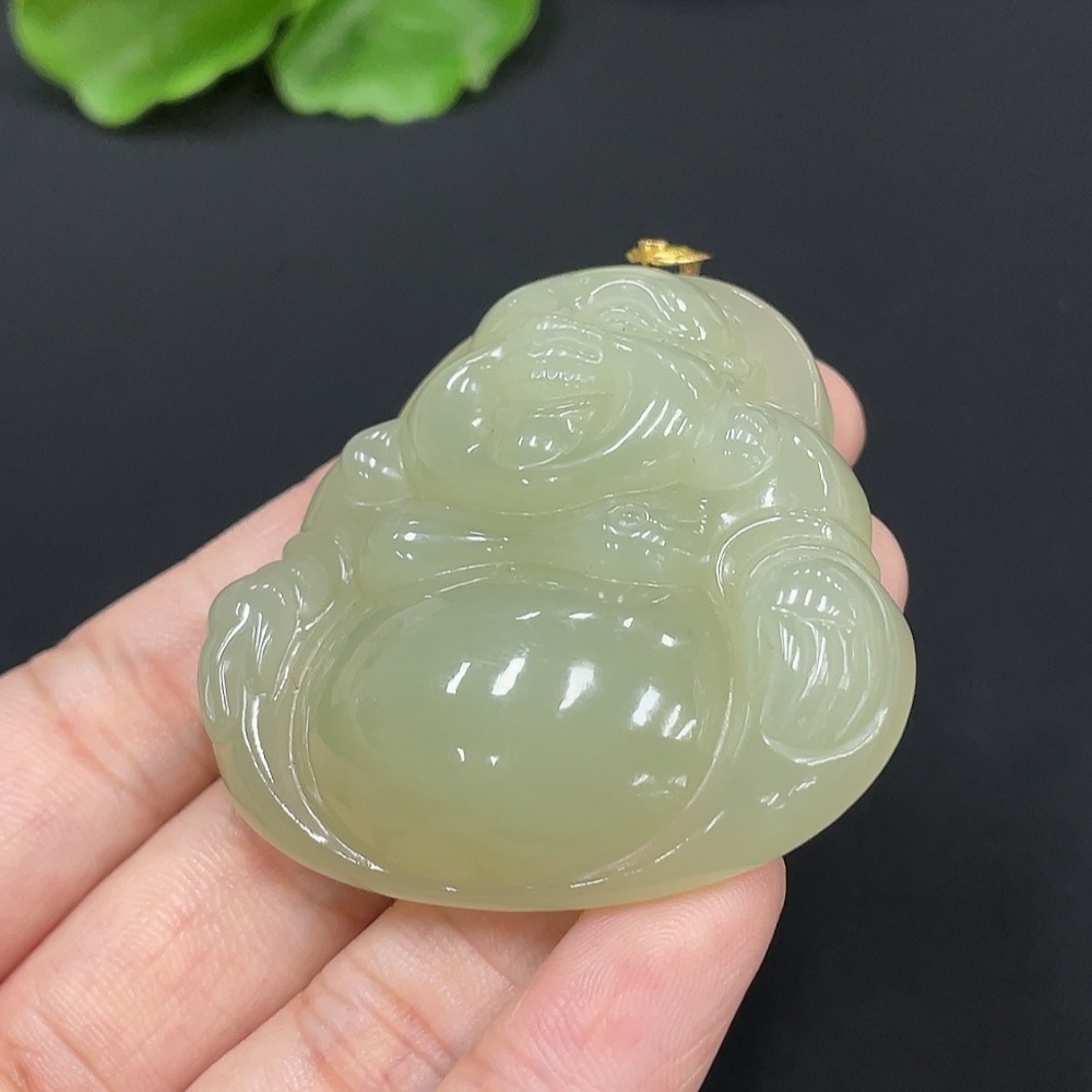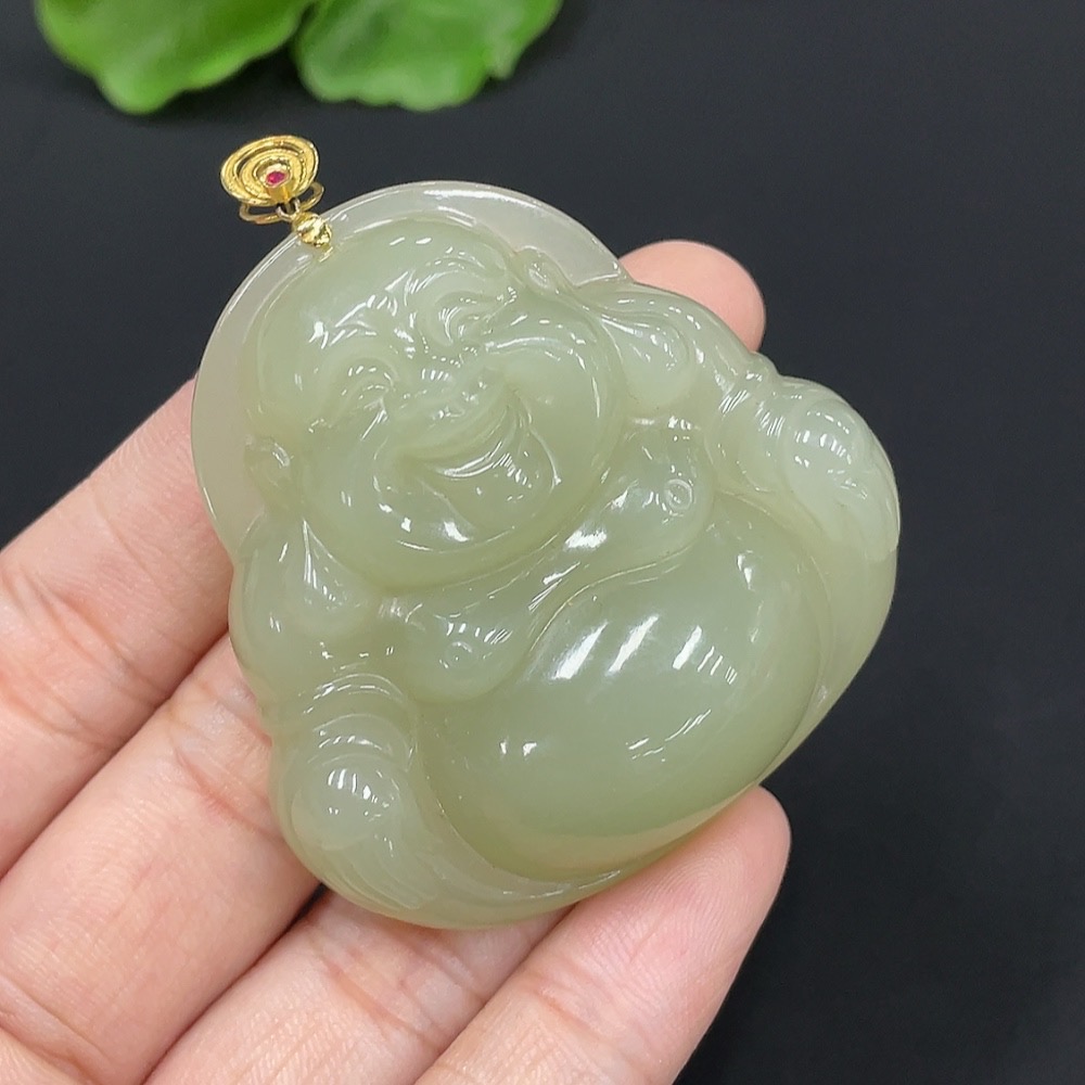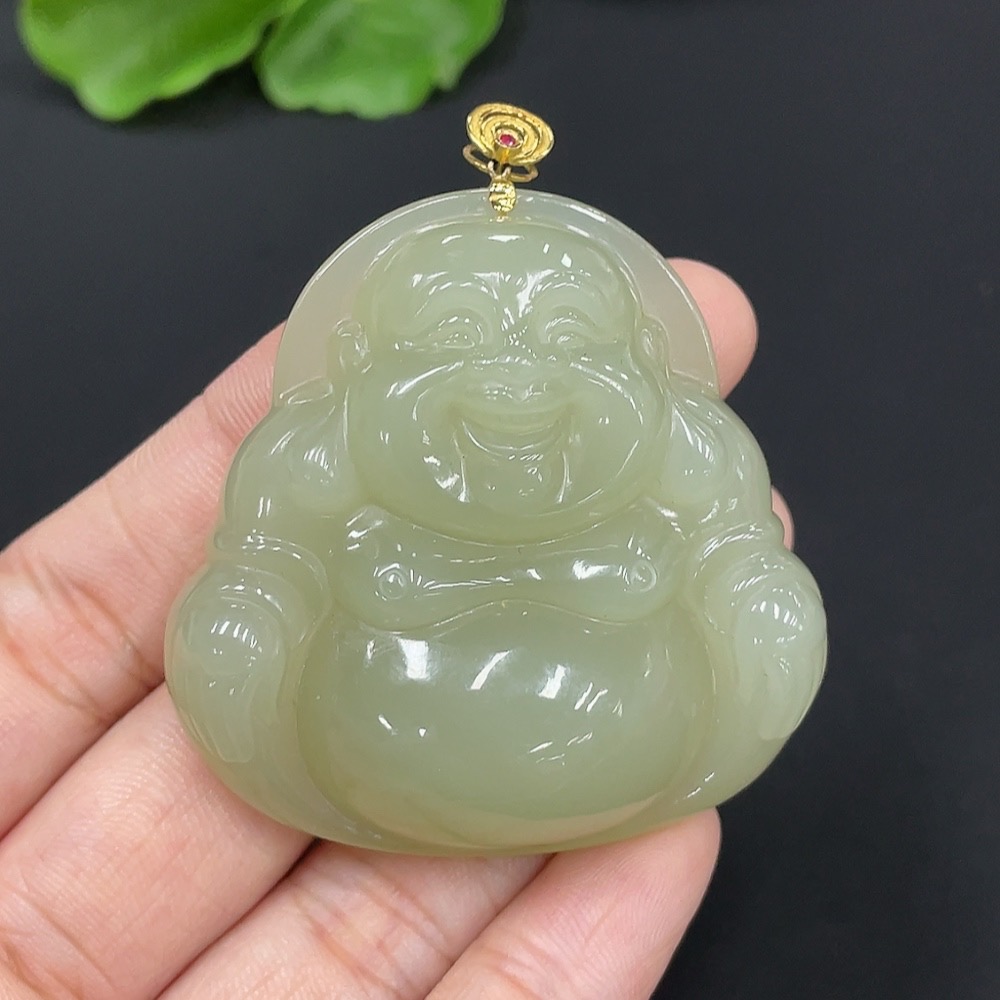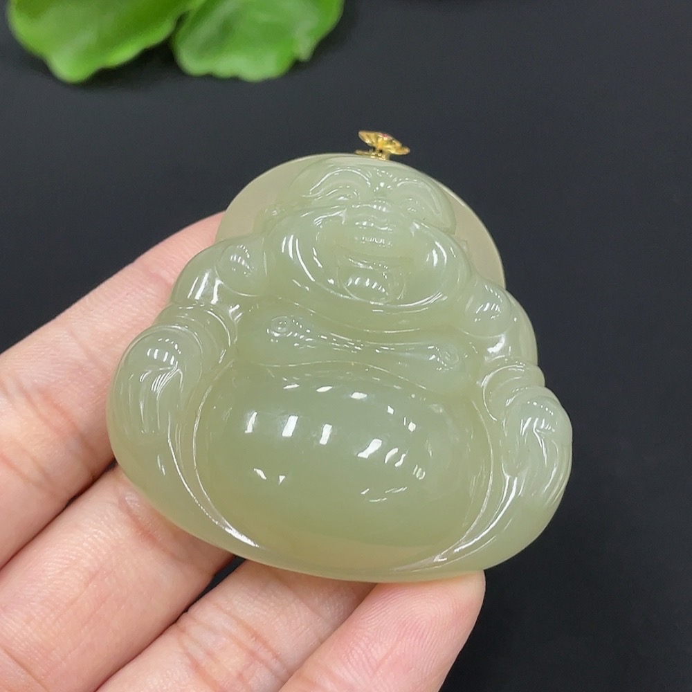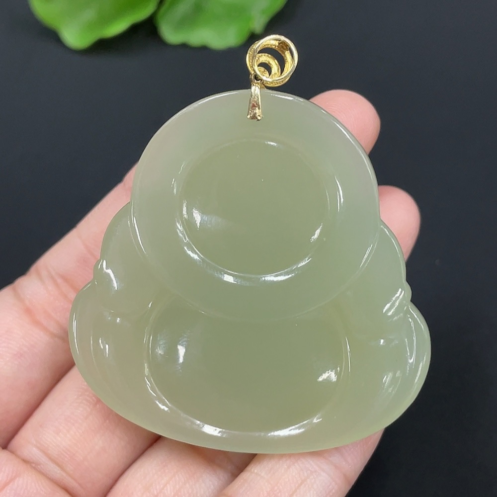 Hetian Jade Pendant - Buddha - 18k Gold Clasp - Total Weight Approx. 41.6g