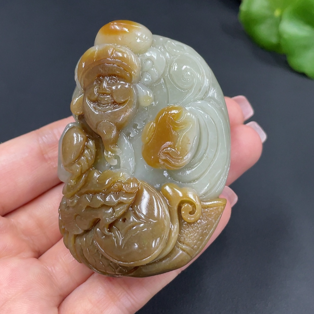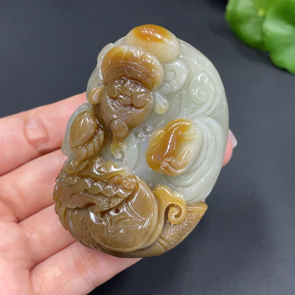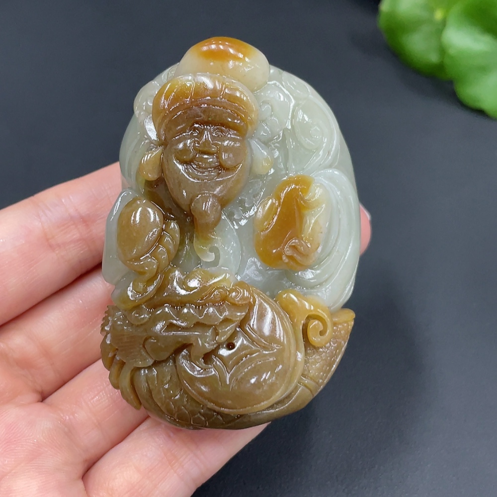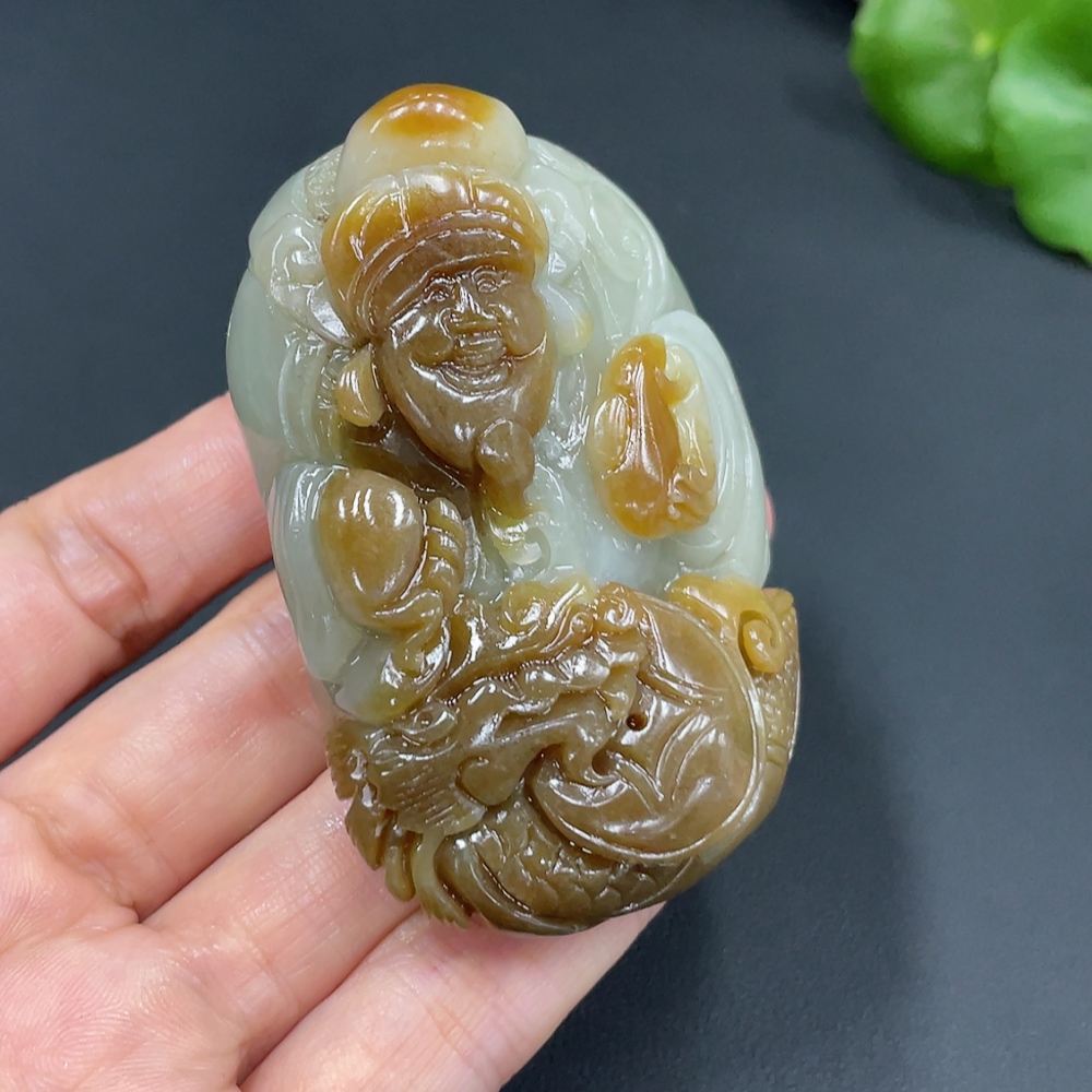 Hetian Jade Pendant God of Wealth Total Weight: Approx. 130.7g