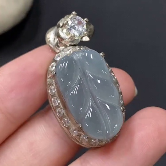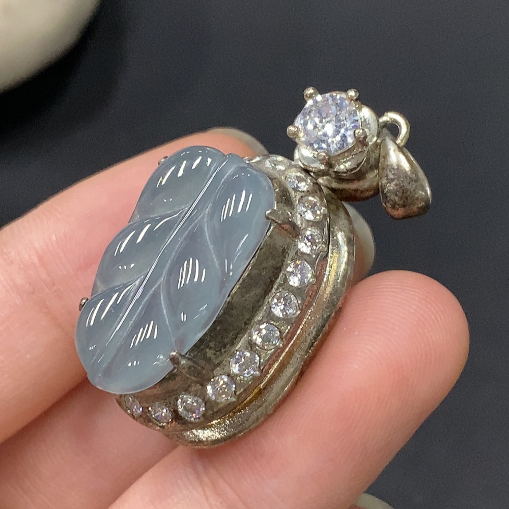 Trezaar - Jadeite leaf inlay piece non-gold total weight about 12.06g
