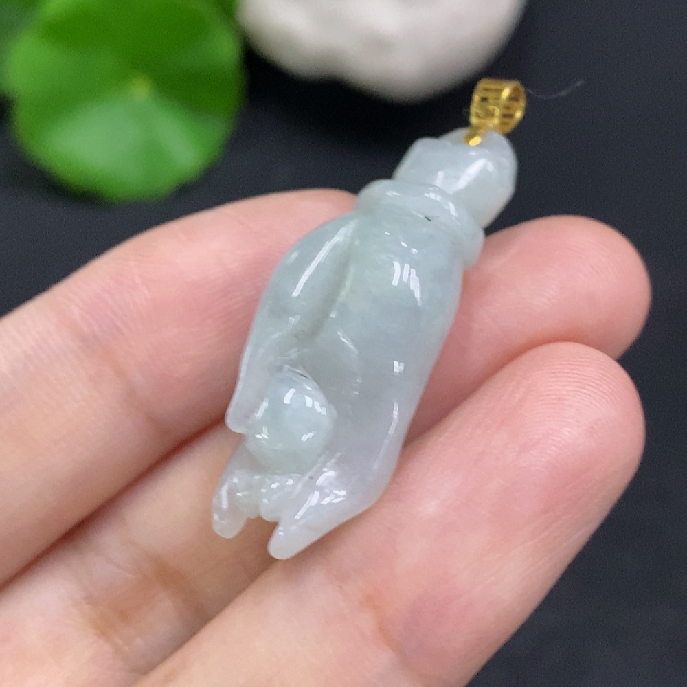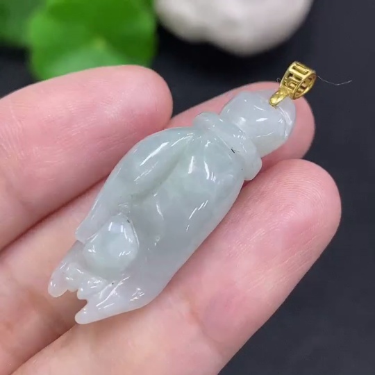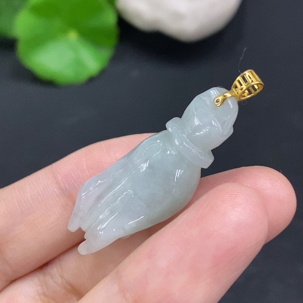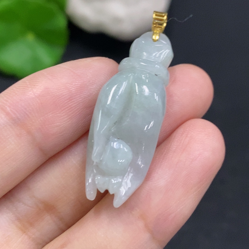 Jadeite Pendant with Handheld Pearl, Non-Gold Inlaid, Total Weight Approx. 7.1g
