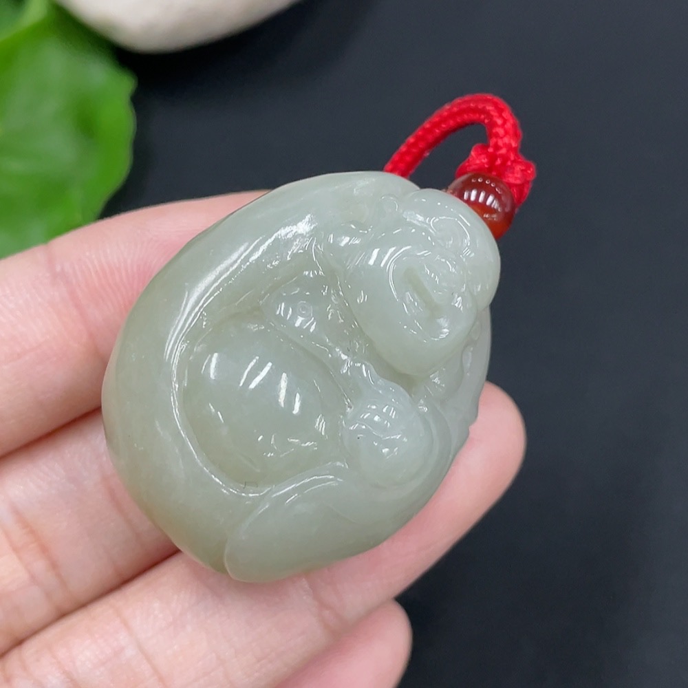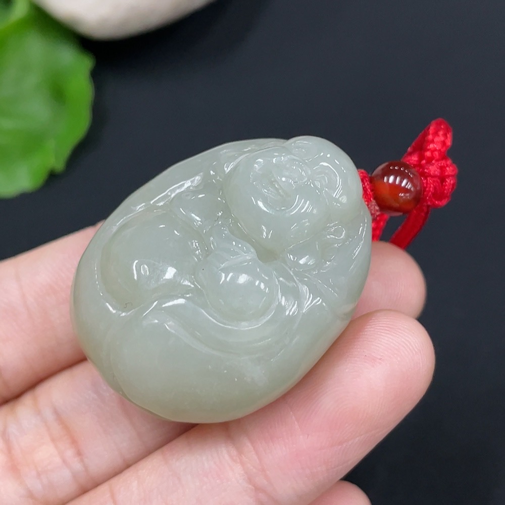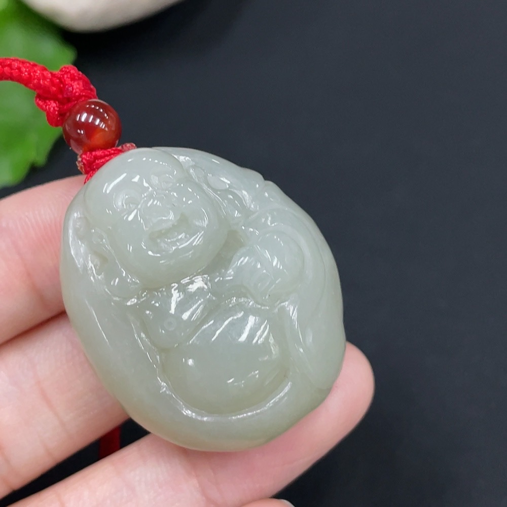 Hetian Jade Pendant - Buddha Figure - Total Weight (including rope) 32.2g