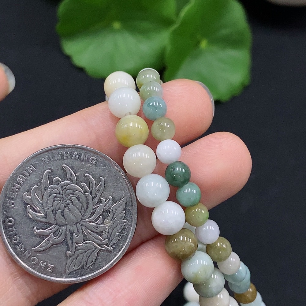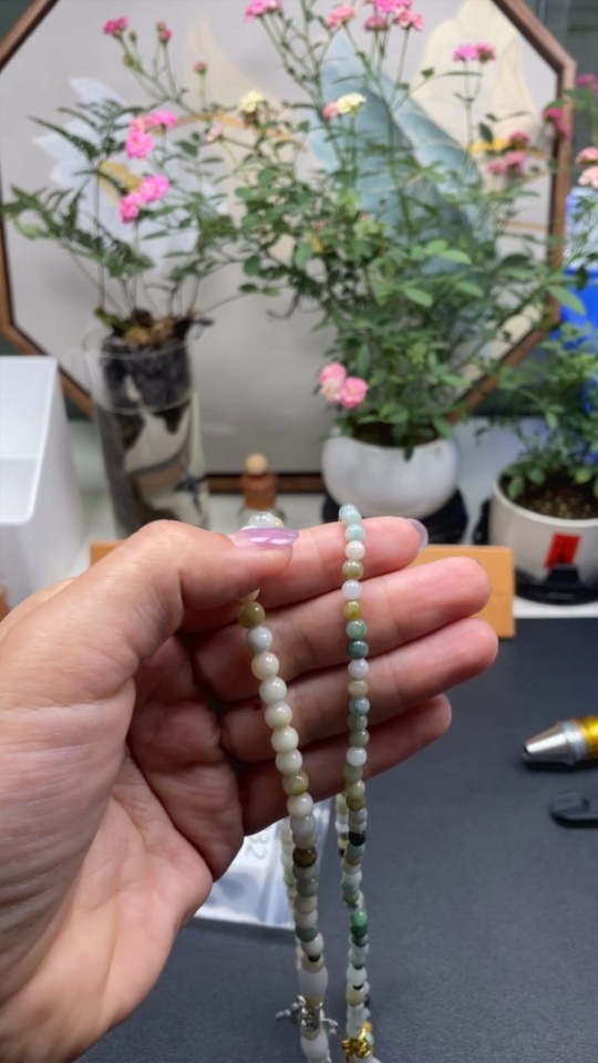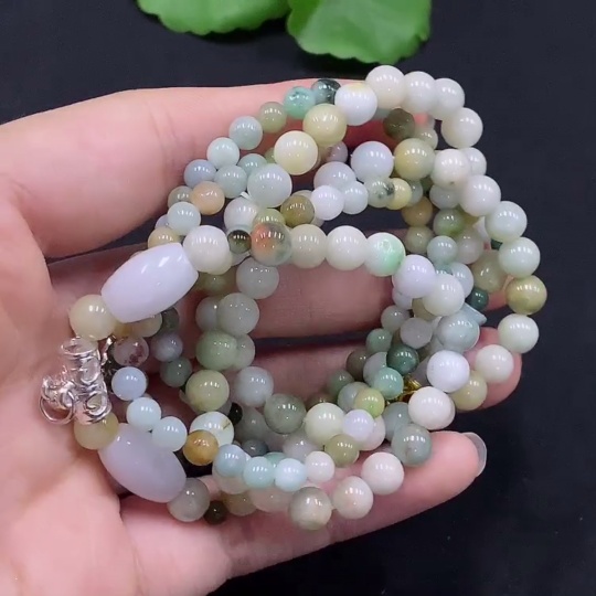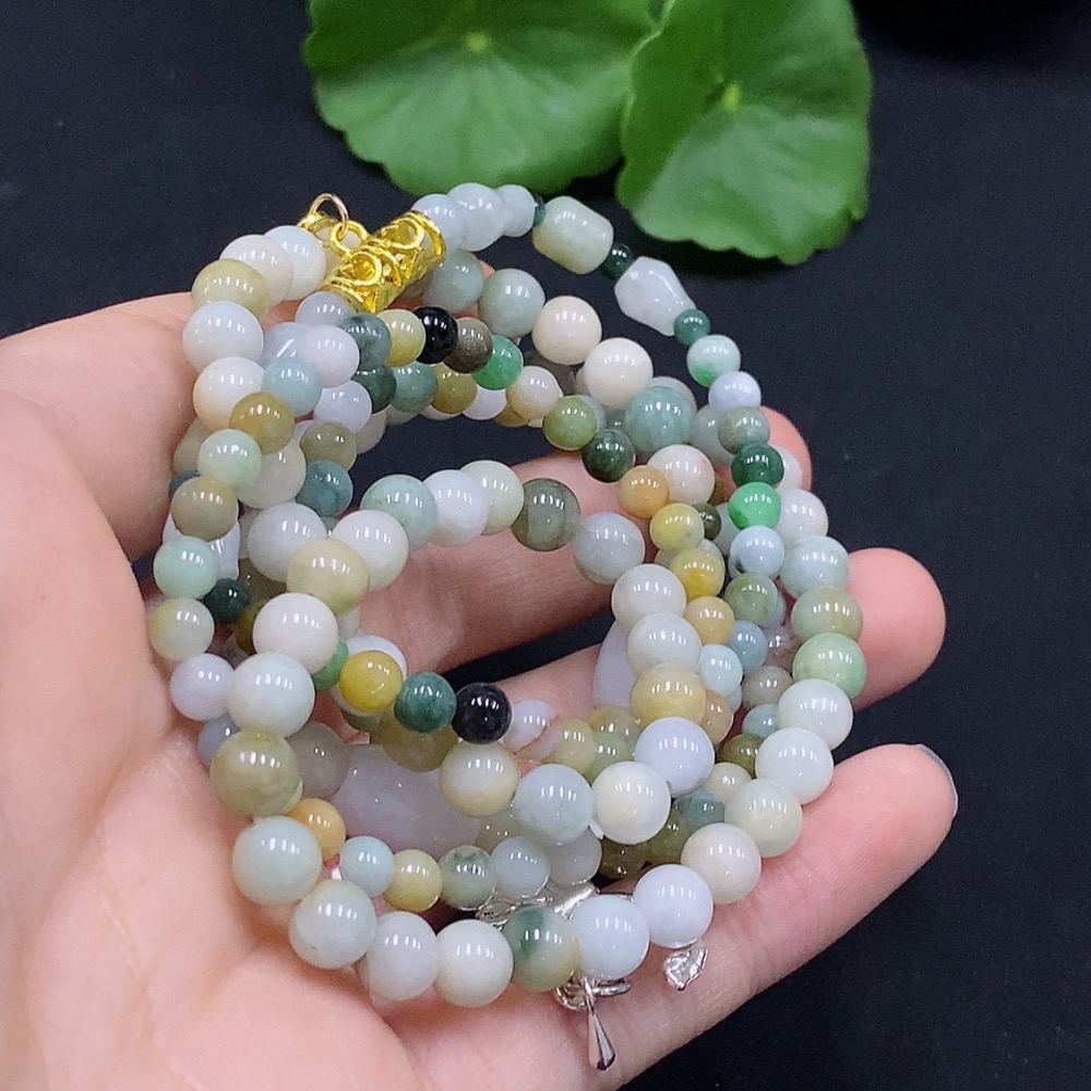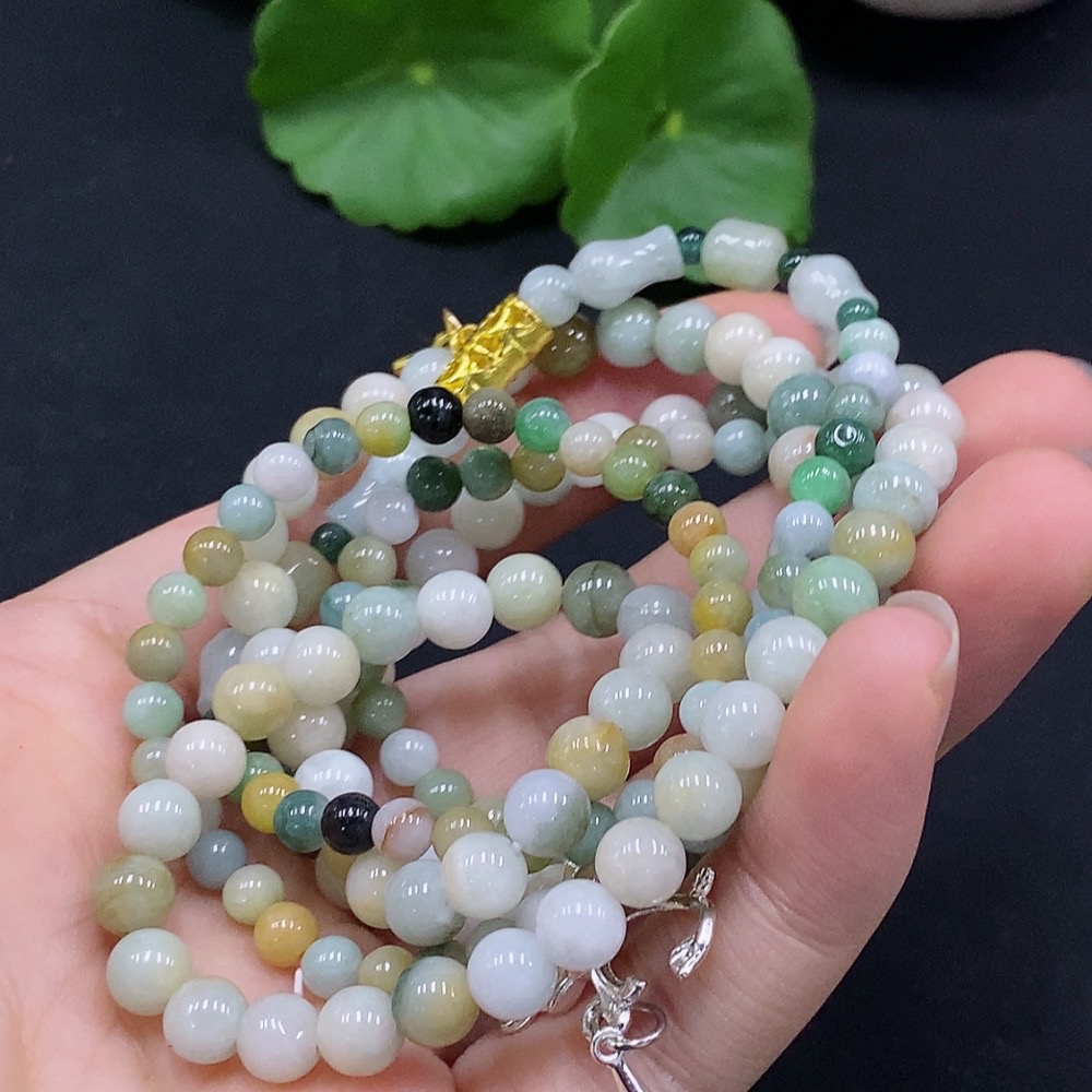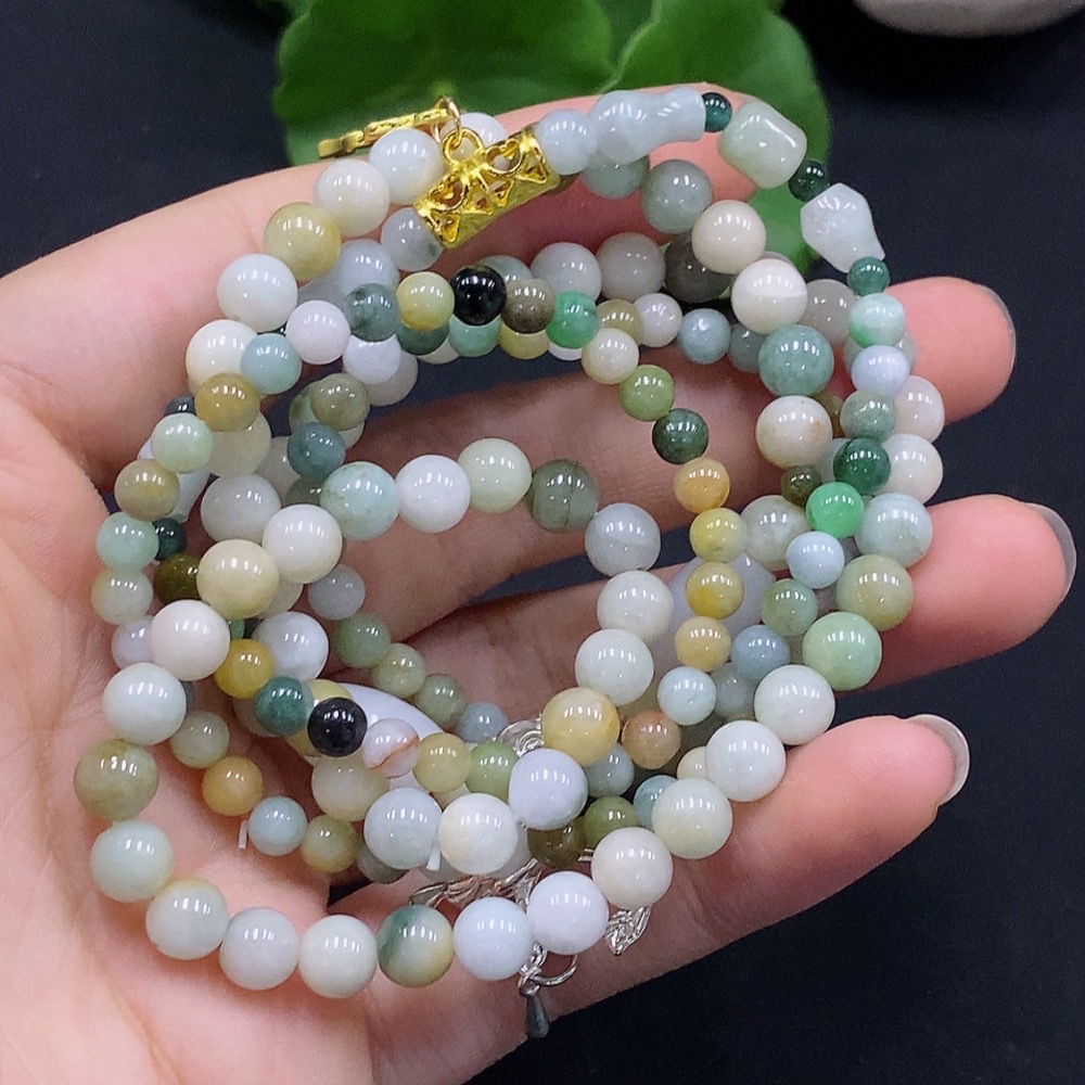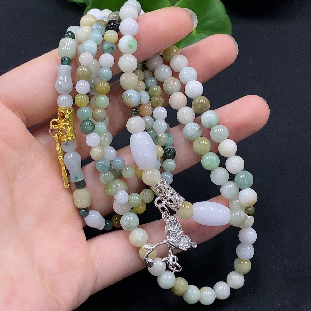 Jadeite Bead Necklace Color Origin Undetermined Non-Gold Inlaid