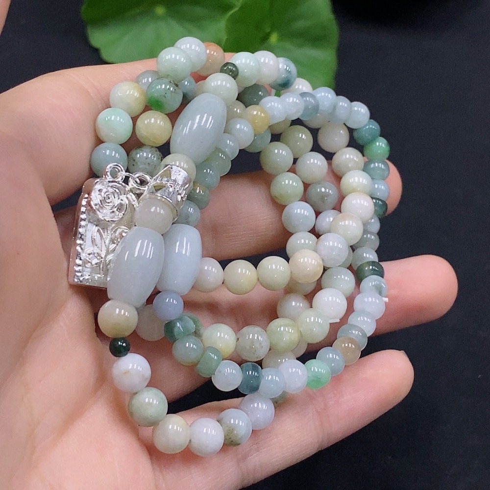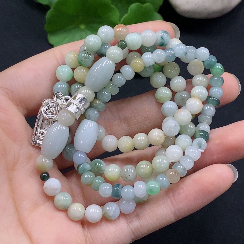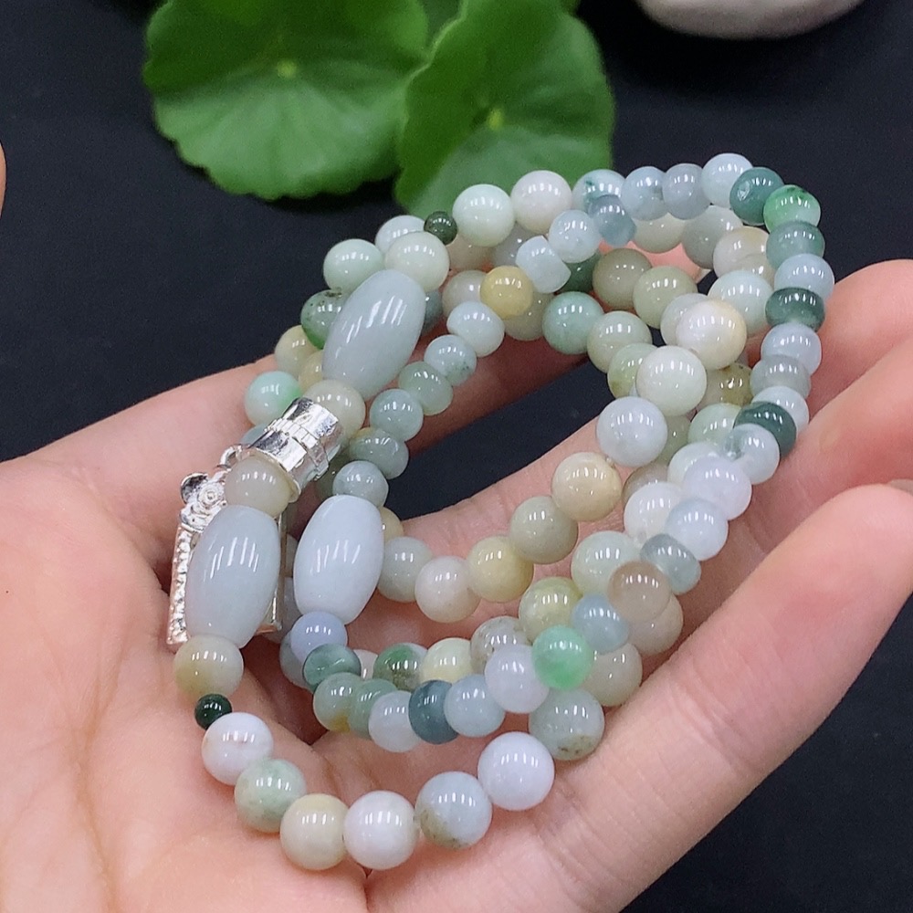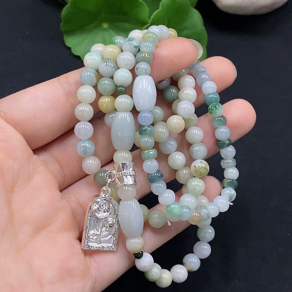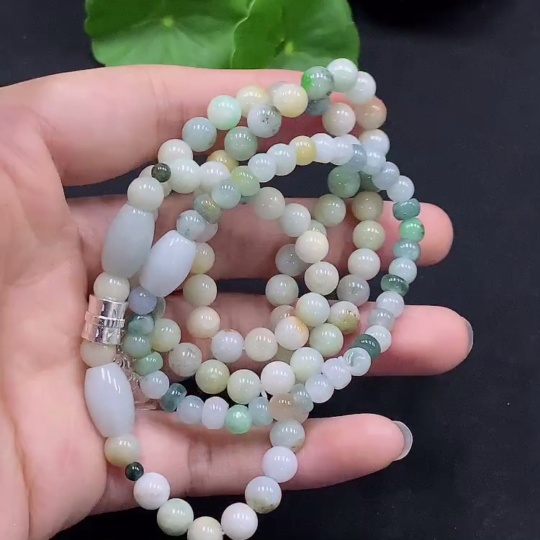 Jadeite Bead Necklace, Color Origin Undetermined, No Gold Setting