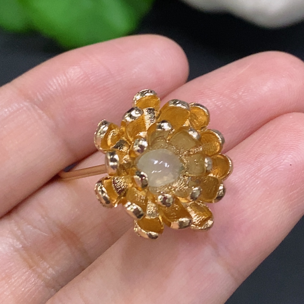 Jadeite Cabochon Inlaid Hair Accessory Non-Gold Inlaid Total Weight Approximately 5.9g