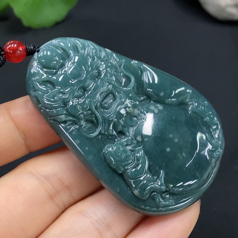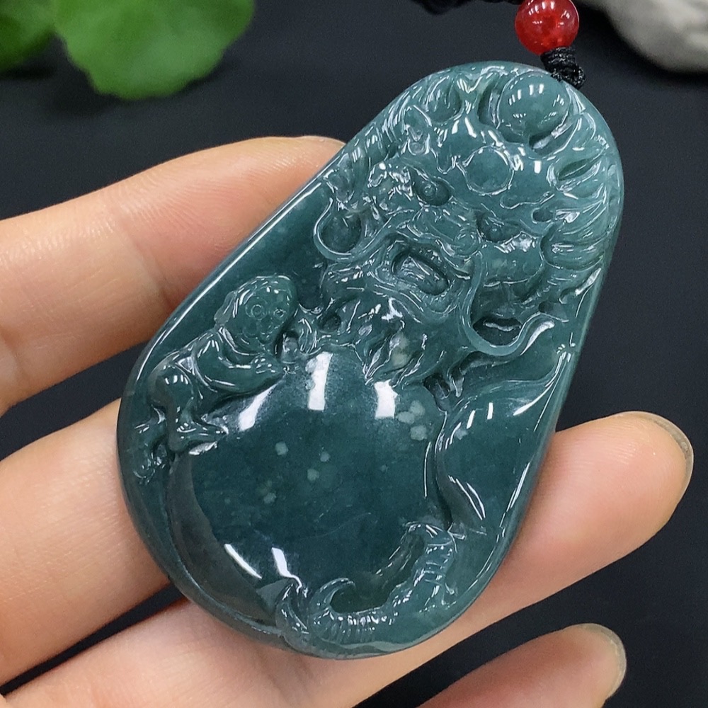 Jadeite Dragon Pendant Total Weight Approx. 32.6g (Including Rope Weight)