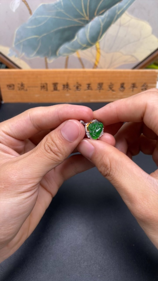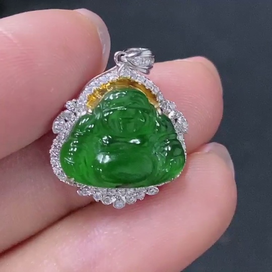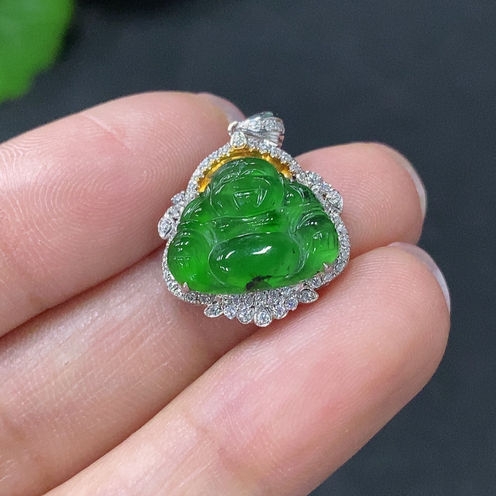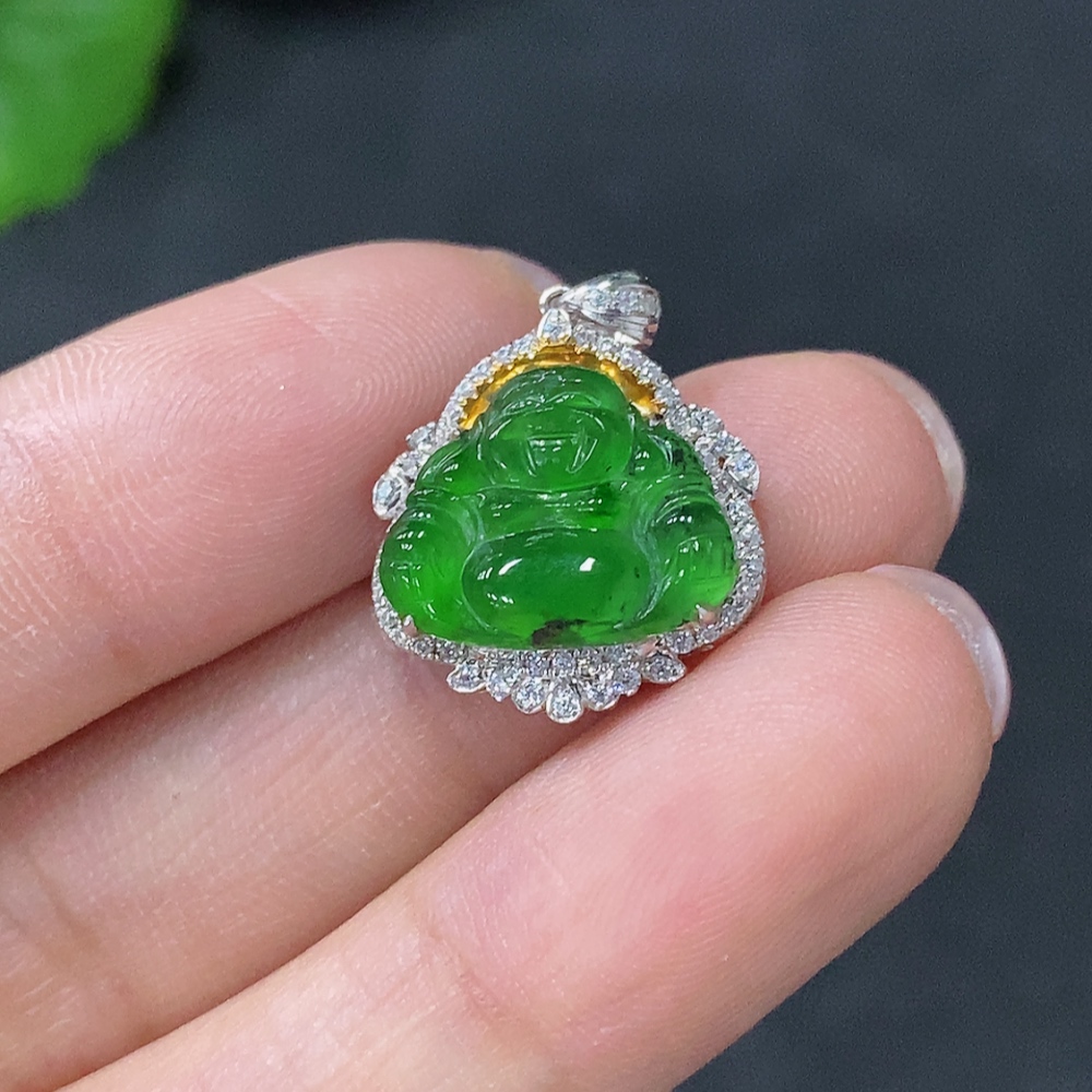 Jadeite inlaid Buddha pendant Au37% total weight approx.1.4g non-diamond