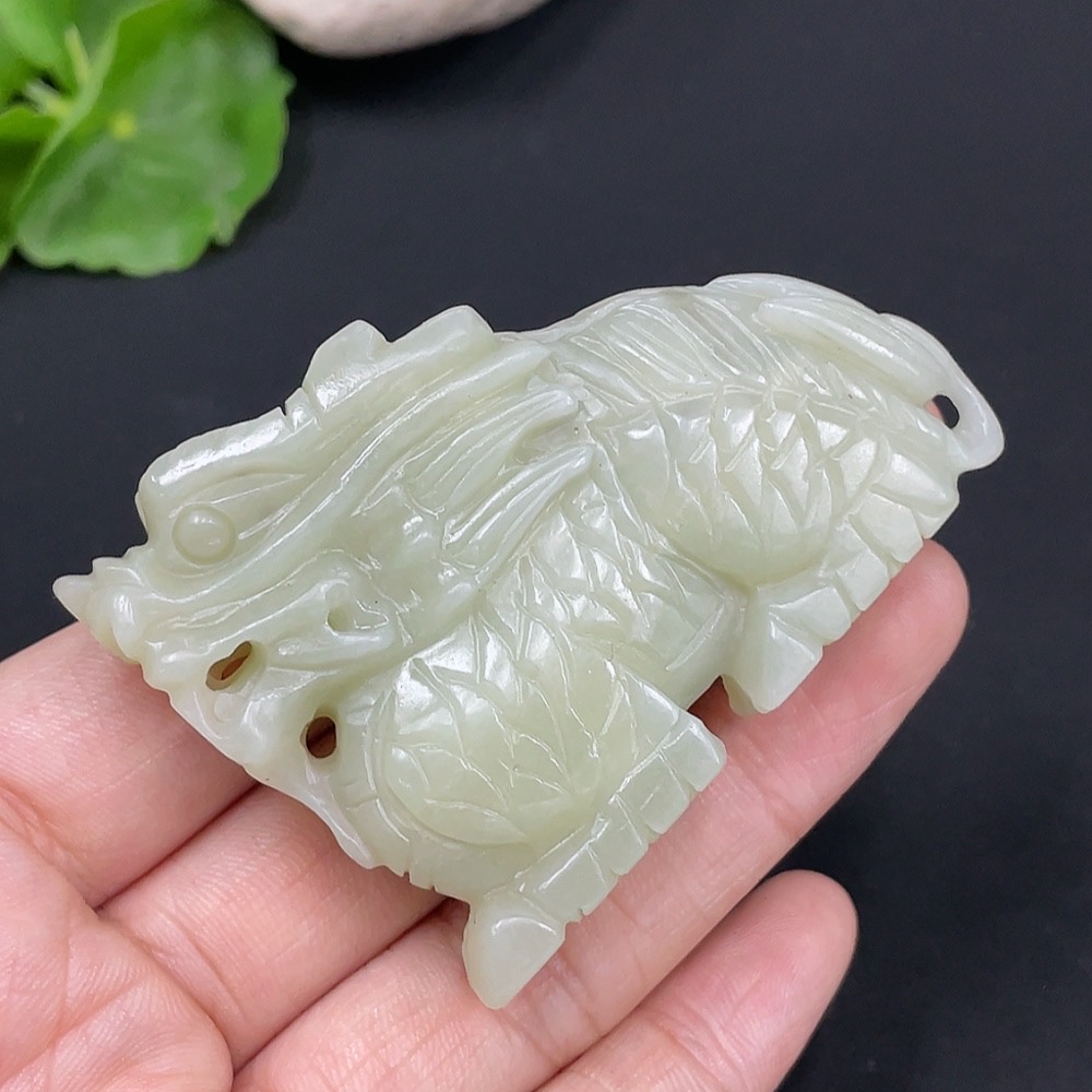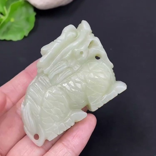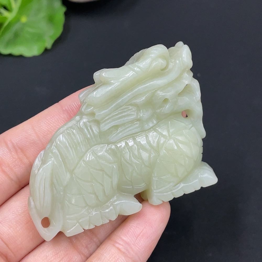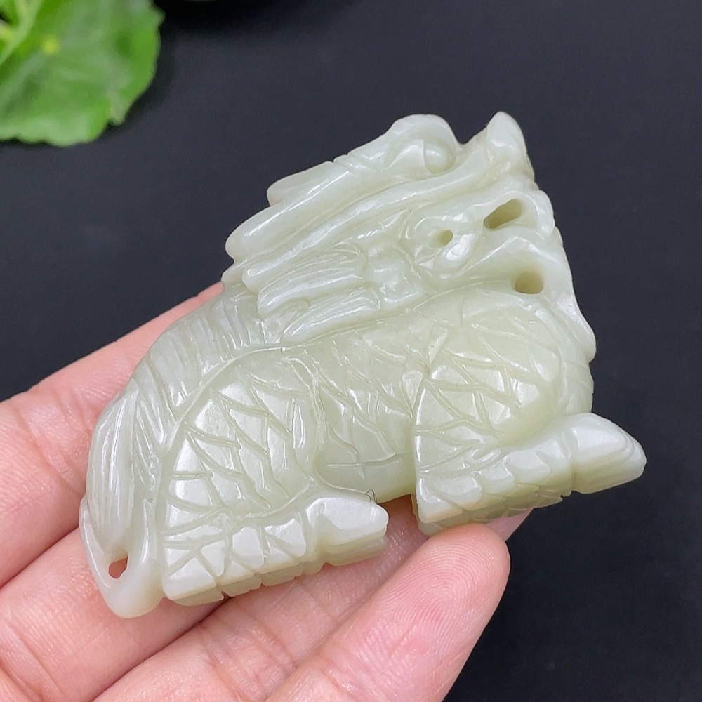 Hetian Jade Pendant Auspicious Beast Total Weight: Approx. 50.3g