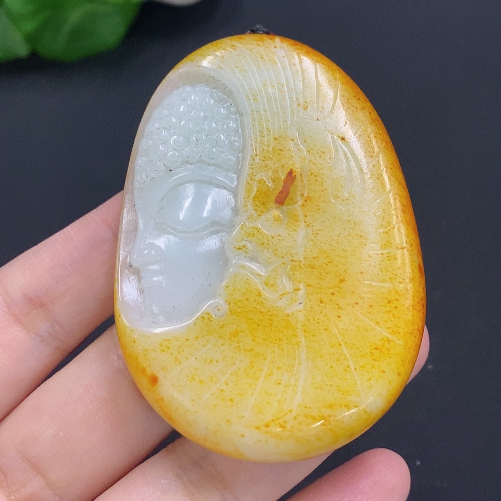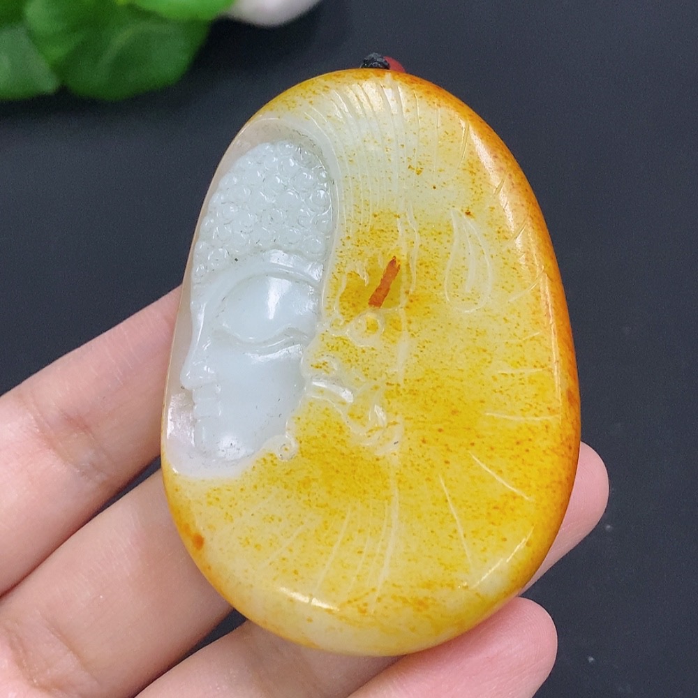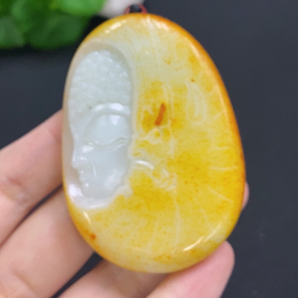 Hetian Jade Buddha Pendant with Cord, Total Weight Approx. 76.5g (undetermined skin color origin)