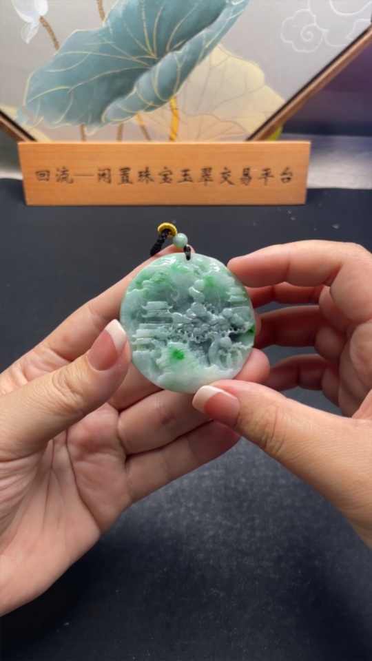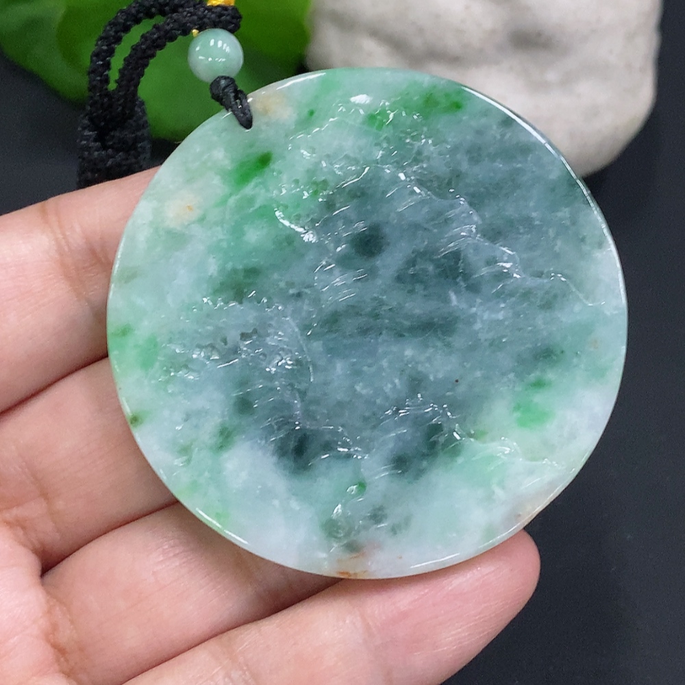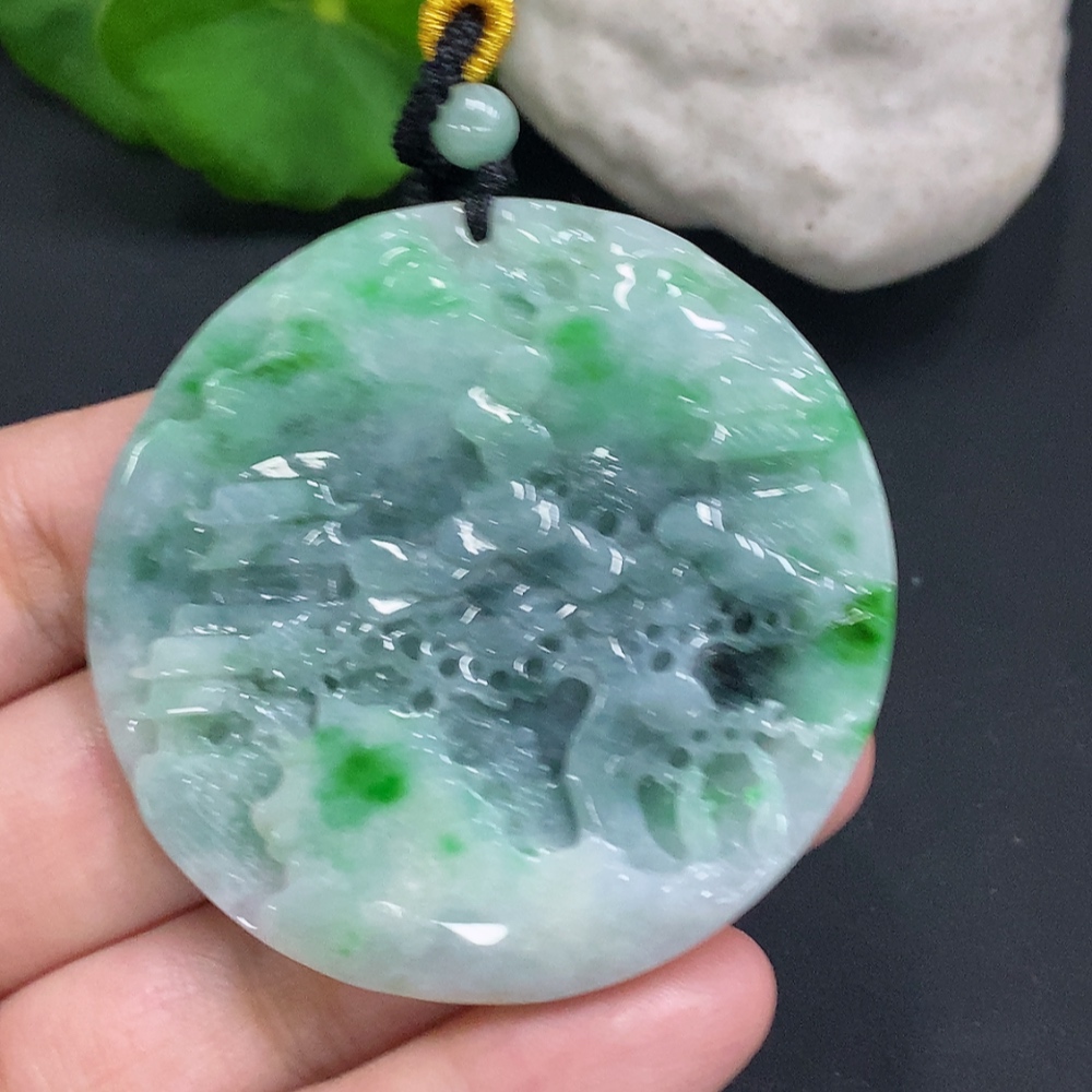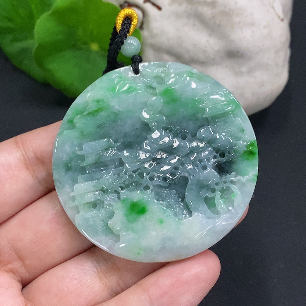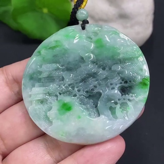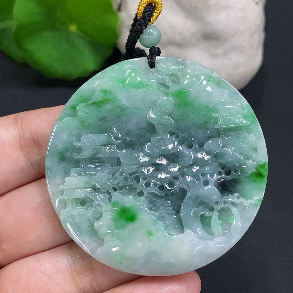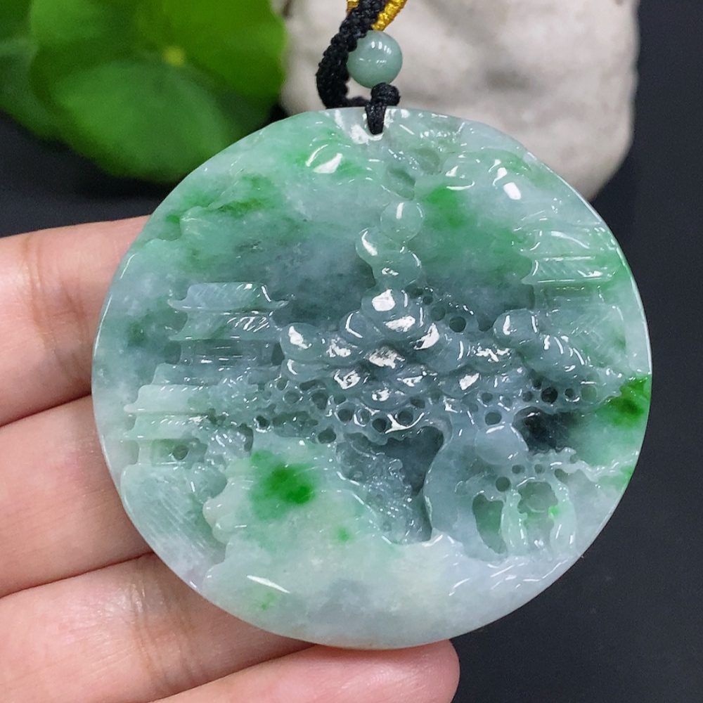 Jadeite Landscape Pendant with Cord Total Weight Approx. 39g (Including Other Mineral Components)