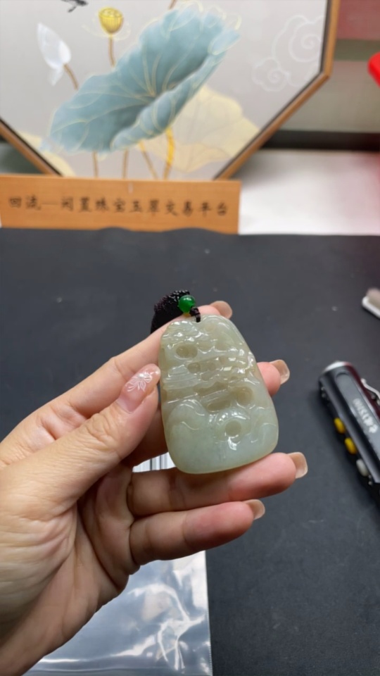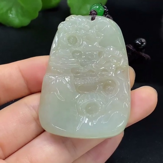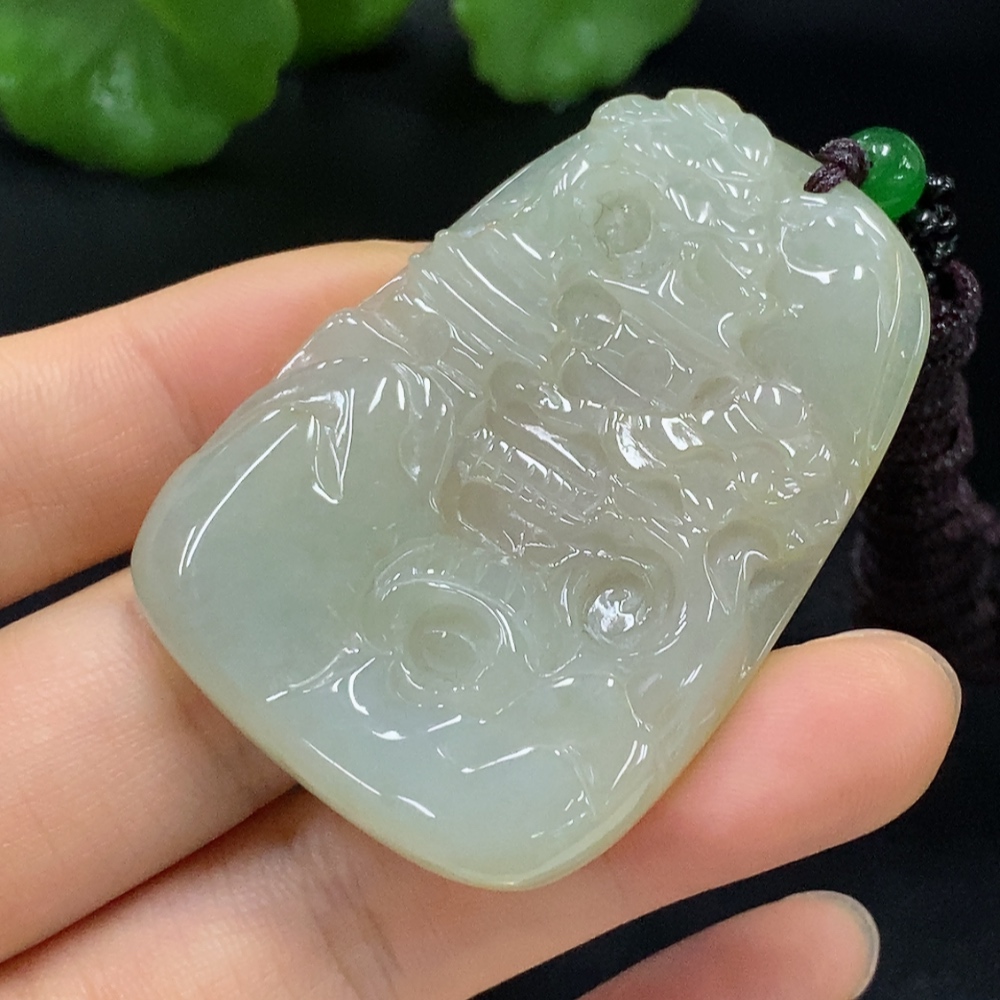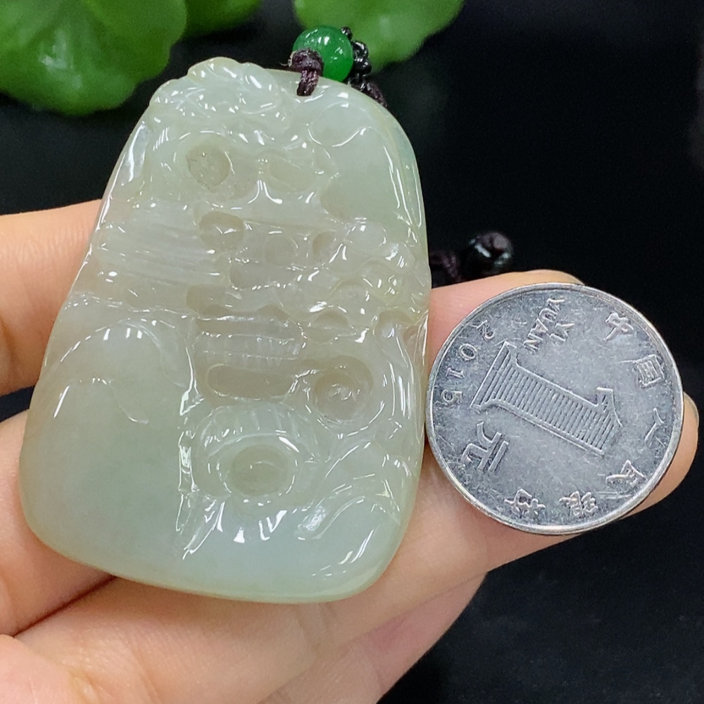 Jadeite Pendant Landscape with Cord Total Weight Approx. 33.4g