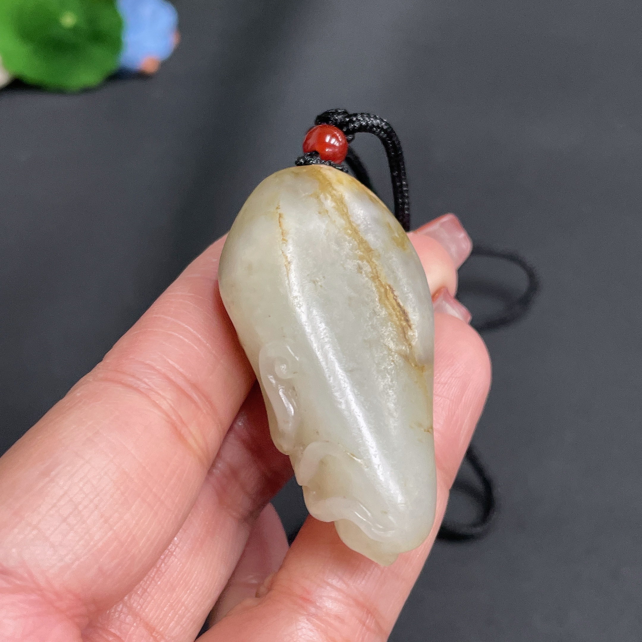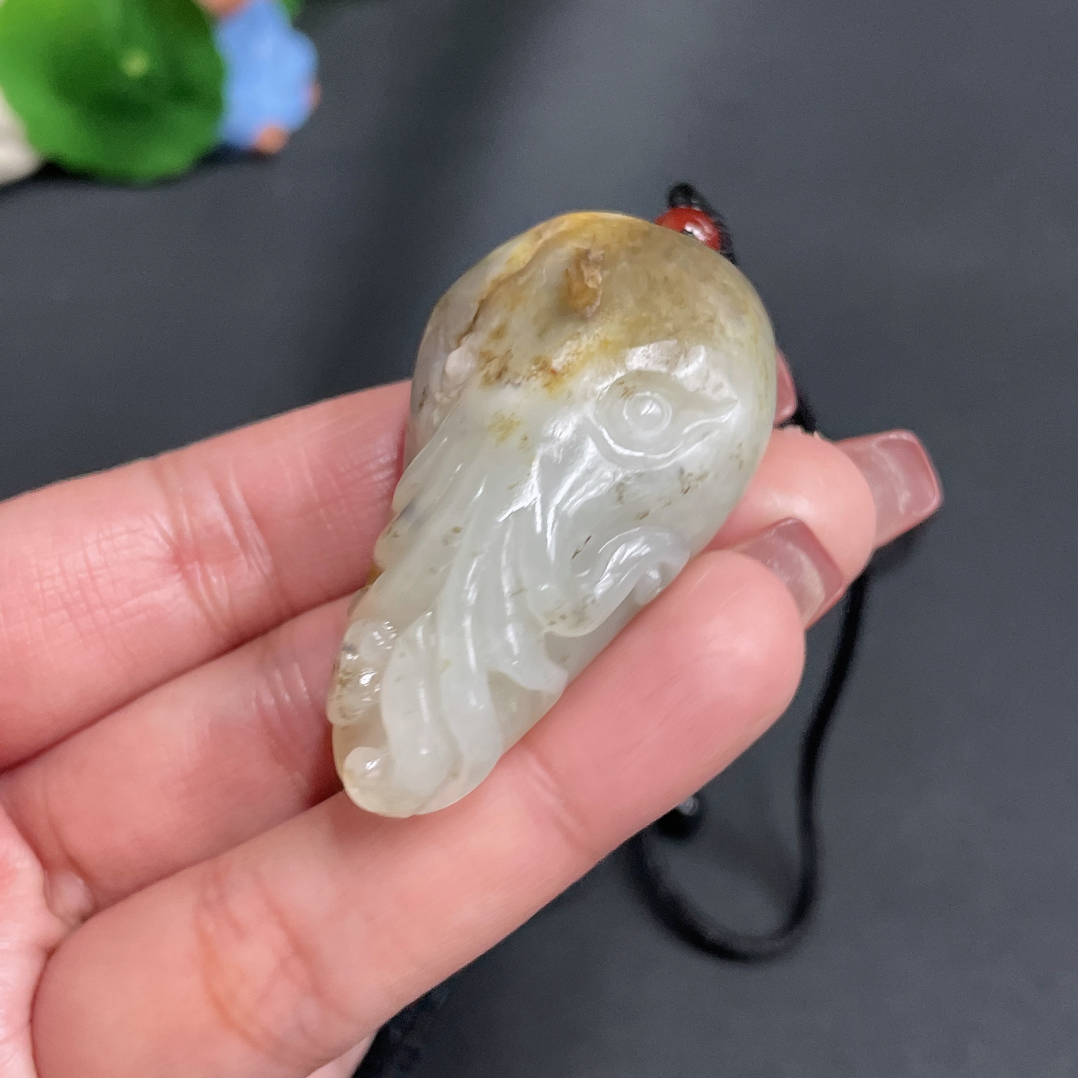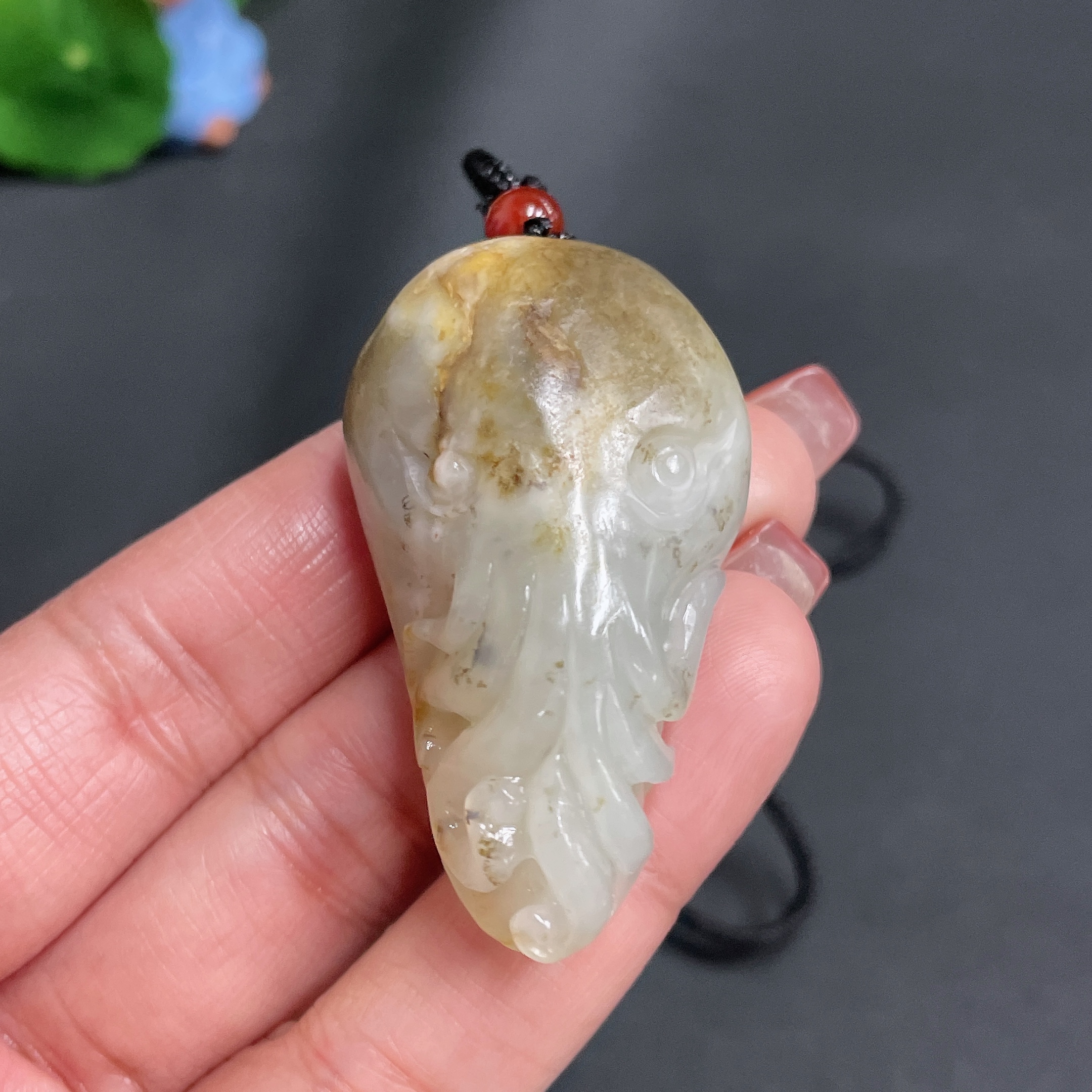Hetian Jade Pendant, Octopus, Undetermined Skin Color Cause, Total Weight Approx. [with Rope] 44g