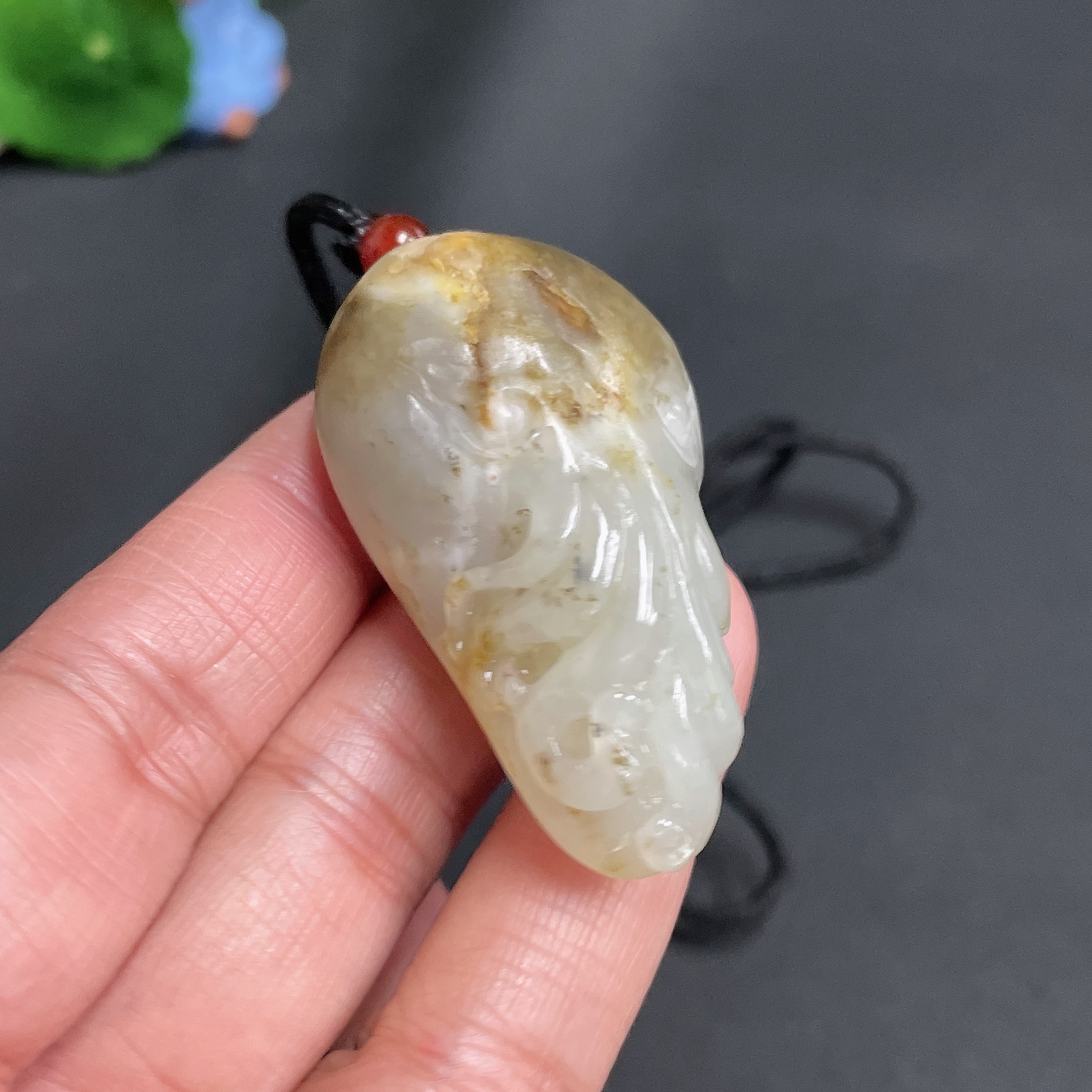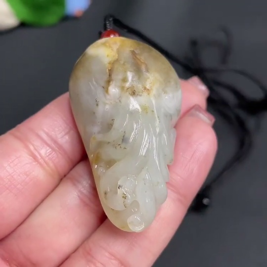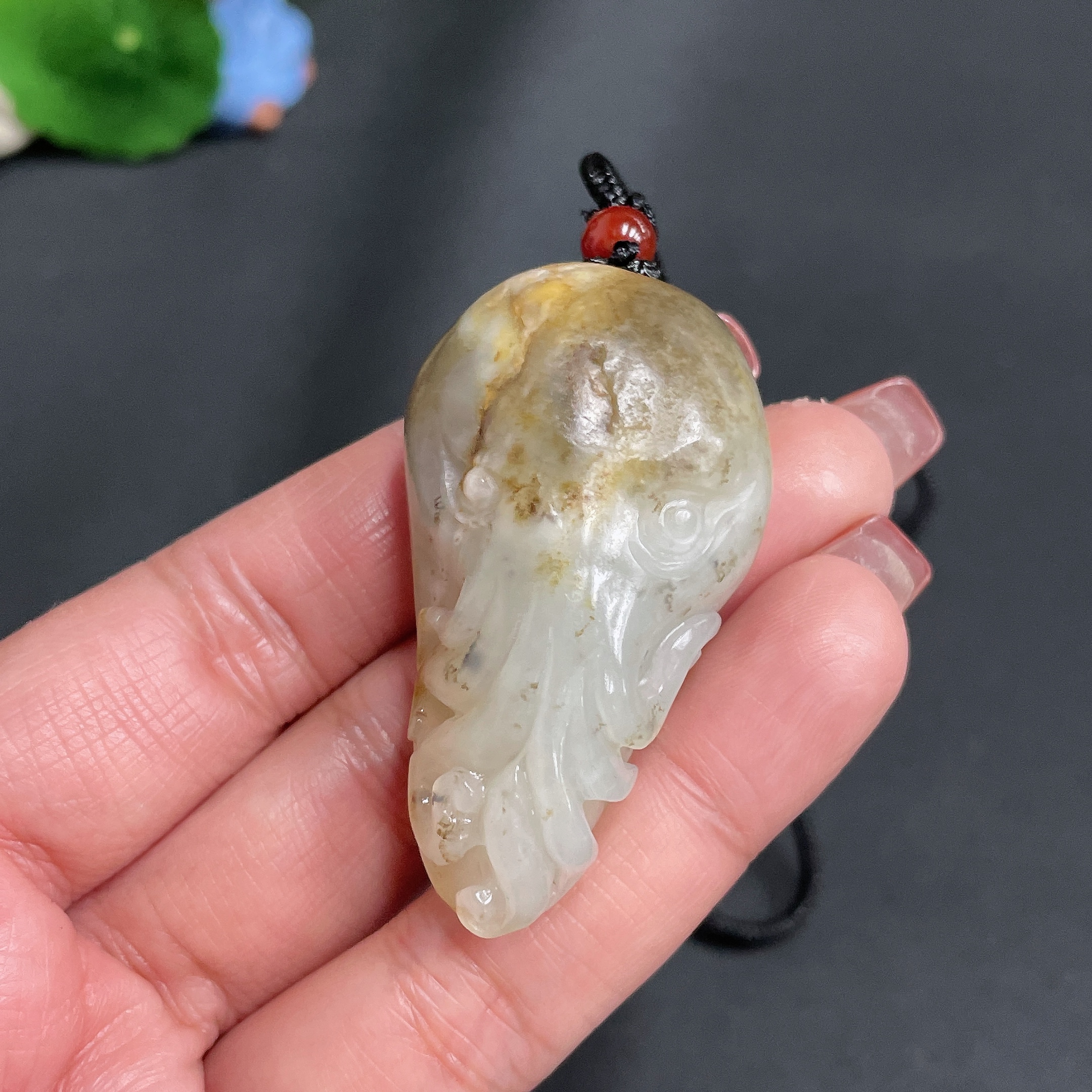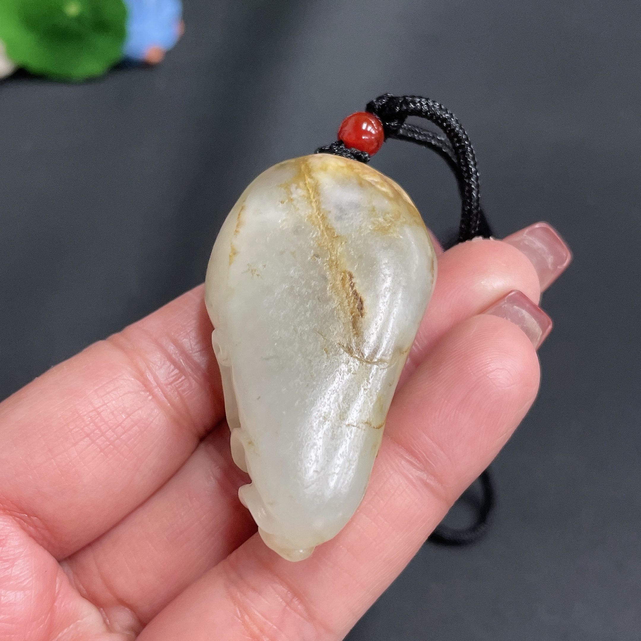 Hetian Jade Pendant, Octopus, Undetermined Skin Color Cause, Total Weight Approx. [with Rope] 44g