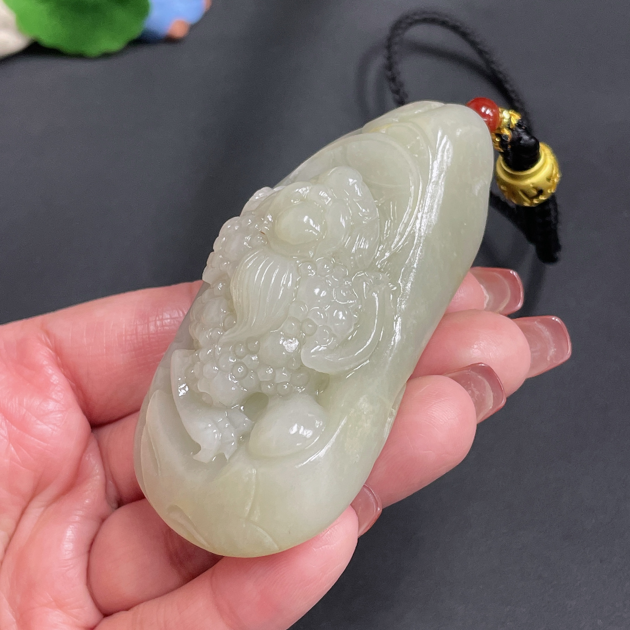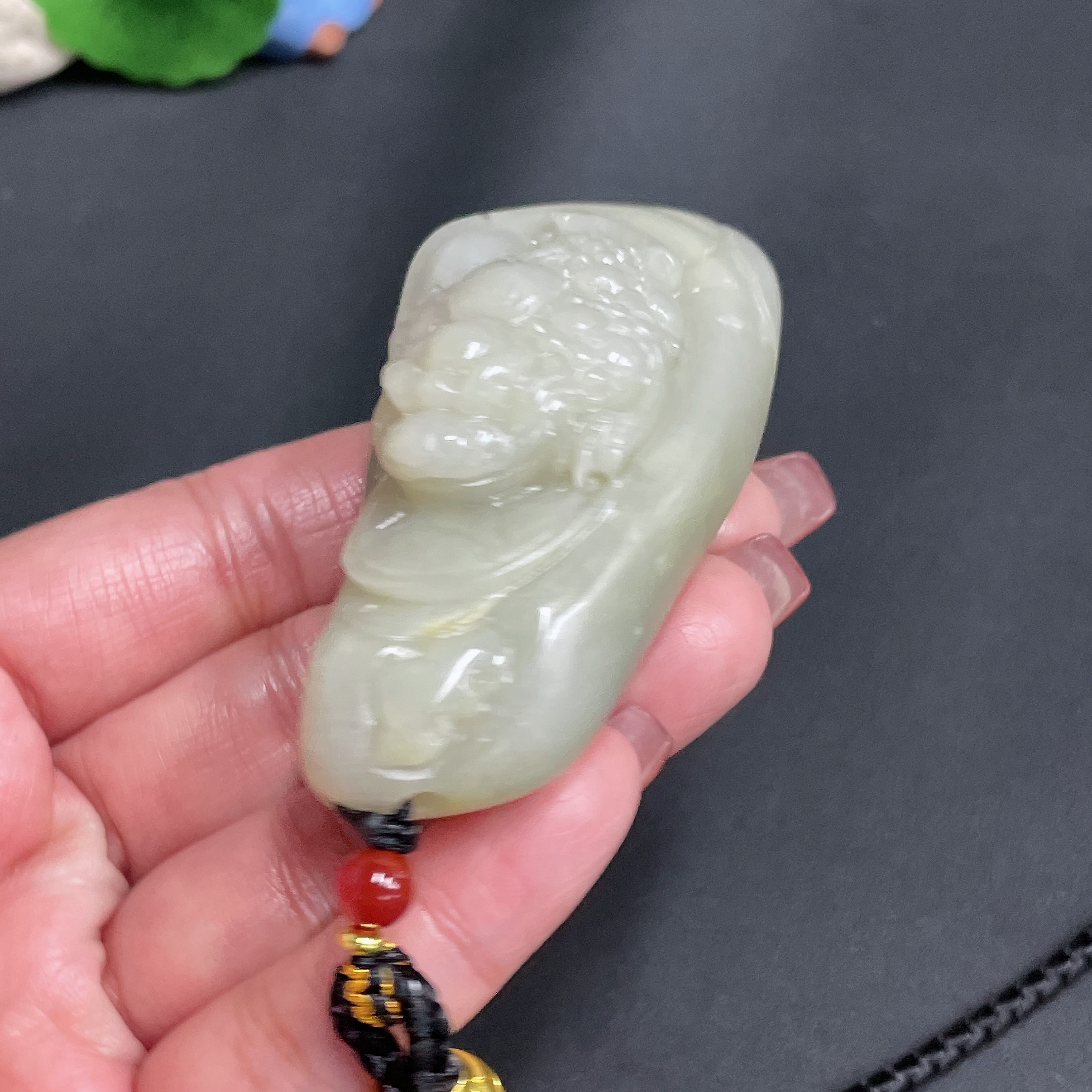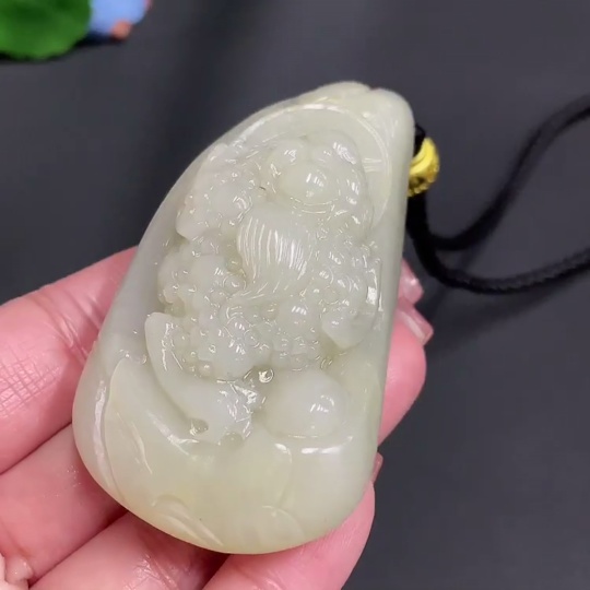 Hetian Jade Handheld Piece Three-Legged Golden Toad Undetermined Skin Color Origin Total Weight Approx. [Including Cord] 119.3g