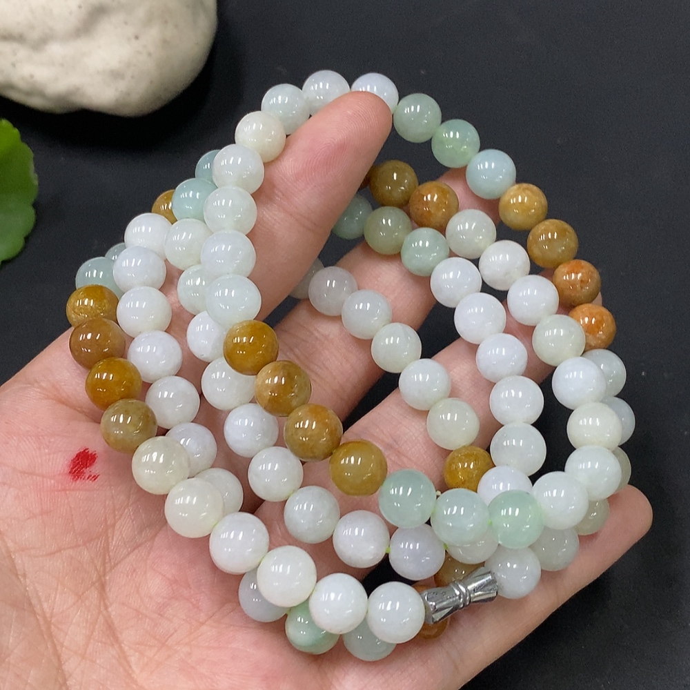 Jadeite Bead Necklace Non-Gold Color Origin Undetermined Total Weight Approx. 83.3g Size About 7.9mm
