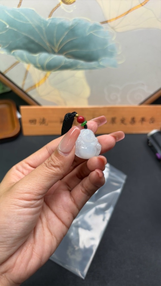 Jadeite Buddha Pendant Total Weight Including Rope Approximately 7.4g