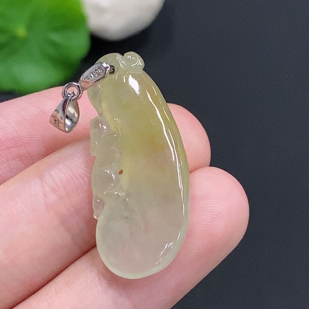 Jadeite Blessing Melon Pendant Non-Gold Inlaid Total Weight Approx. 4.5g Color Origin Undetermined