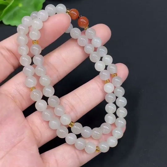 Hetian Jade Bead Necklace, approx. 5.8mm, total weight about 19.6g, non-gold, accessory beads not Hetian Jade