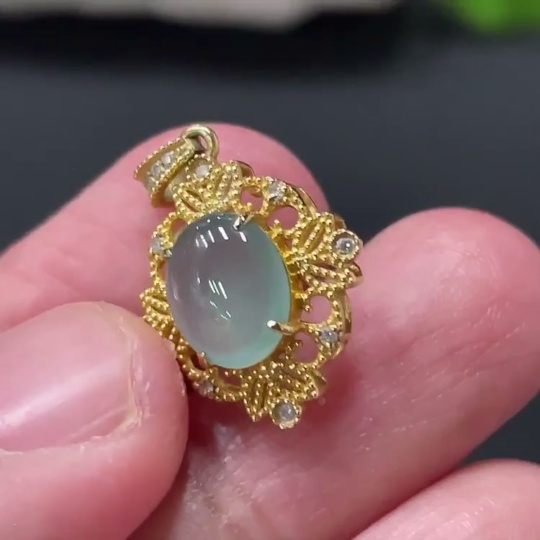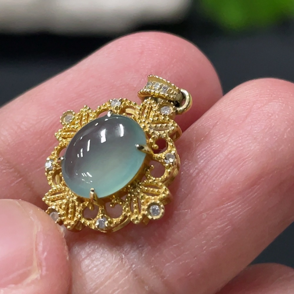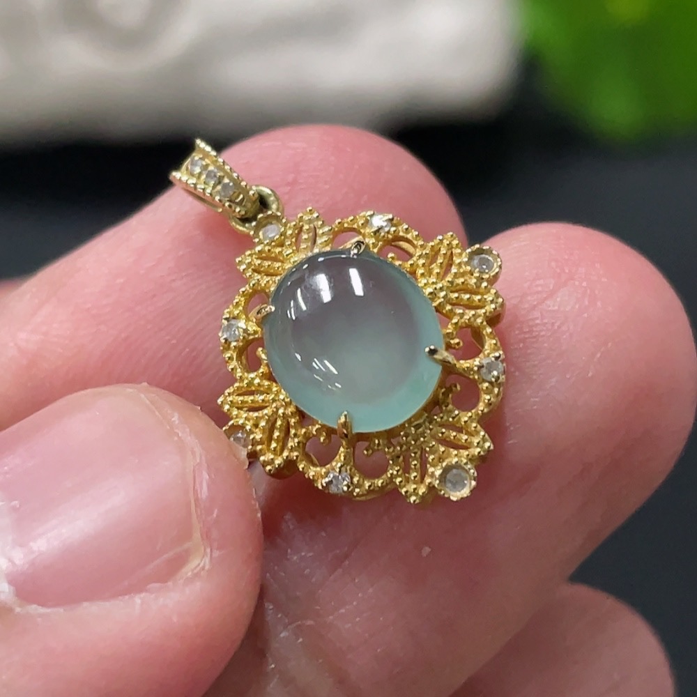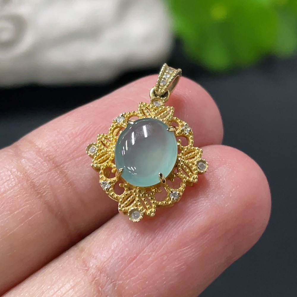 Jadeite Cabochon Pendant with 18K Gold Setting, Total Weight Approx. 1.4g