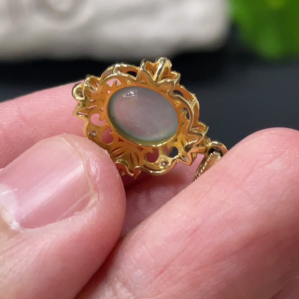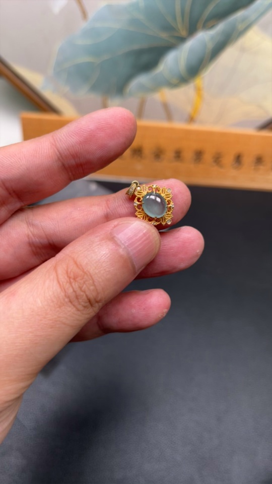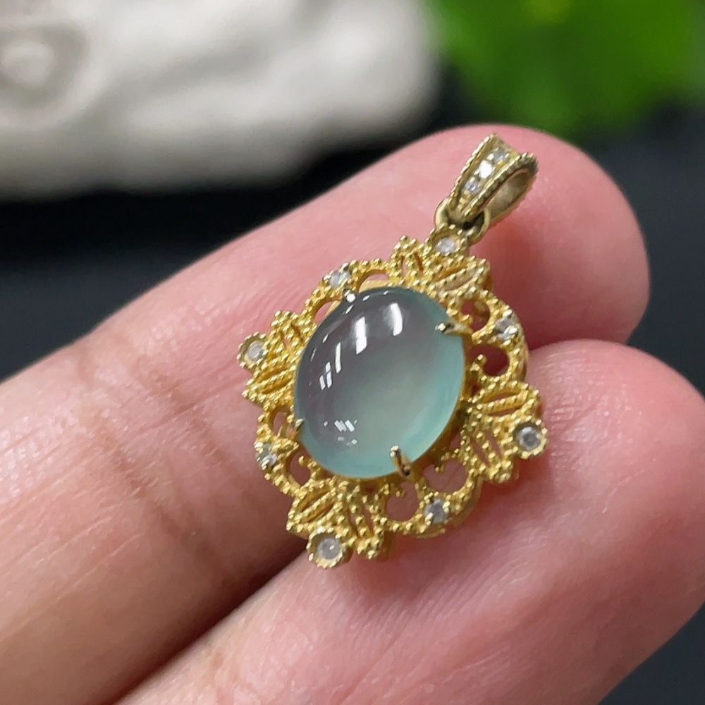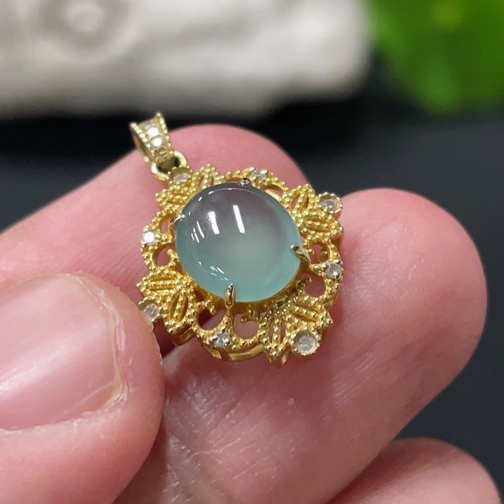 Jadeite Cabochon Pendant with 18K Gold Setting, Total Weight Approx. 1.4g