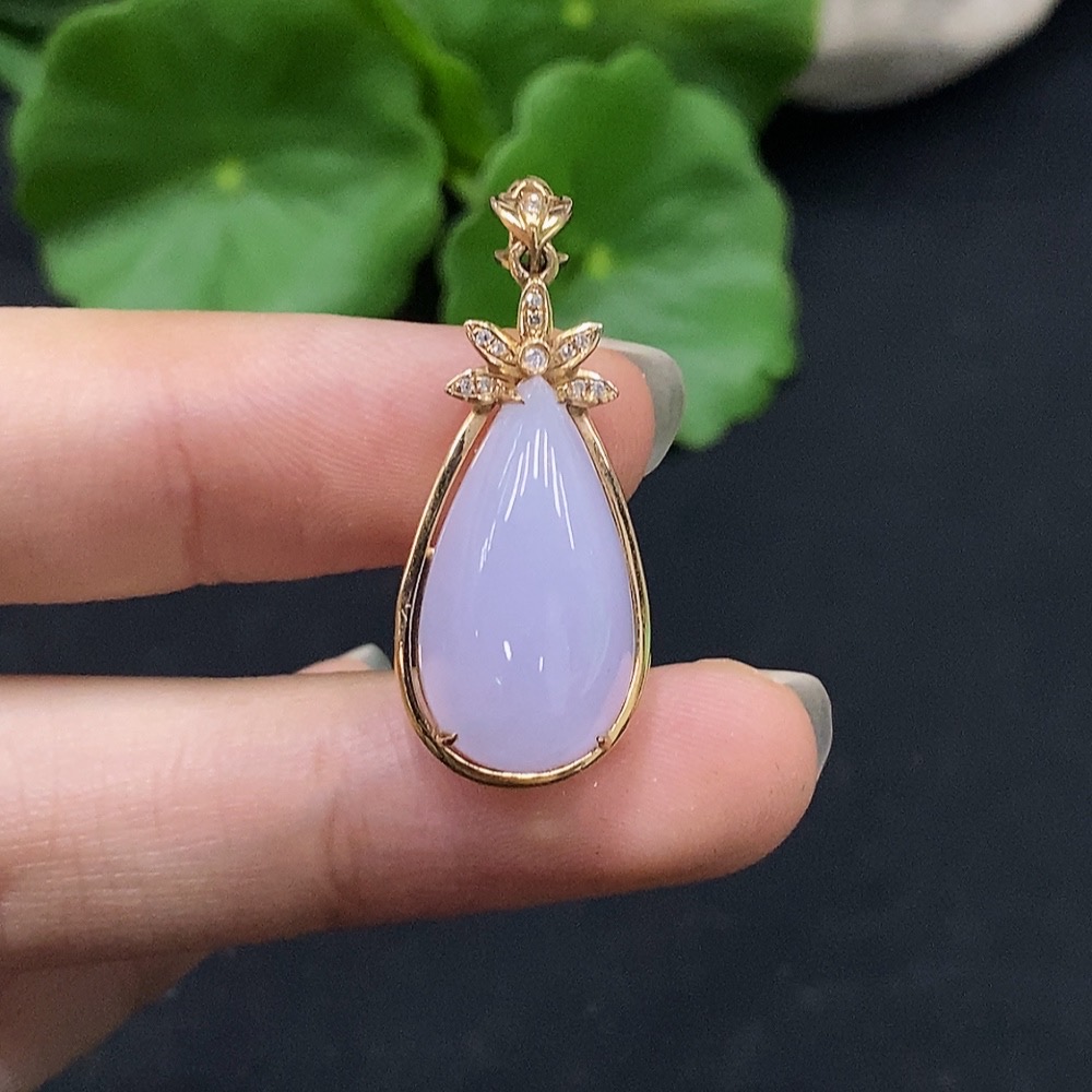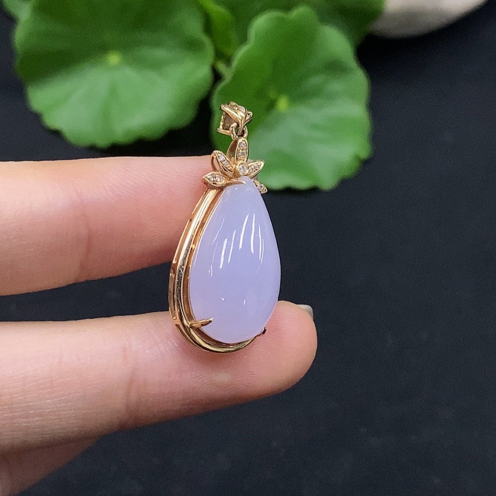 Jadeite Inlaid Pendant 18K Gold Total Weight Approx. 4.03g