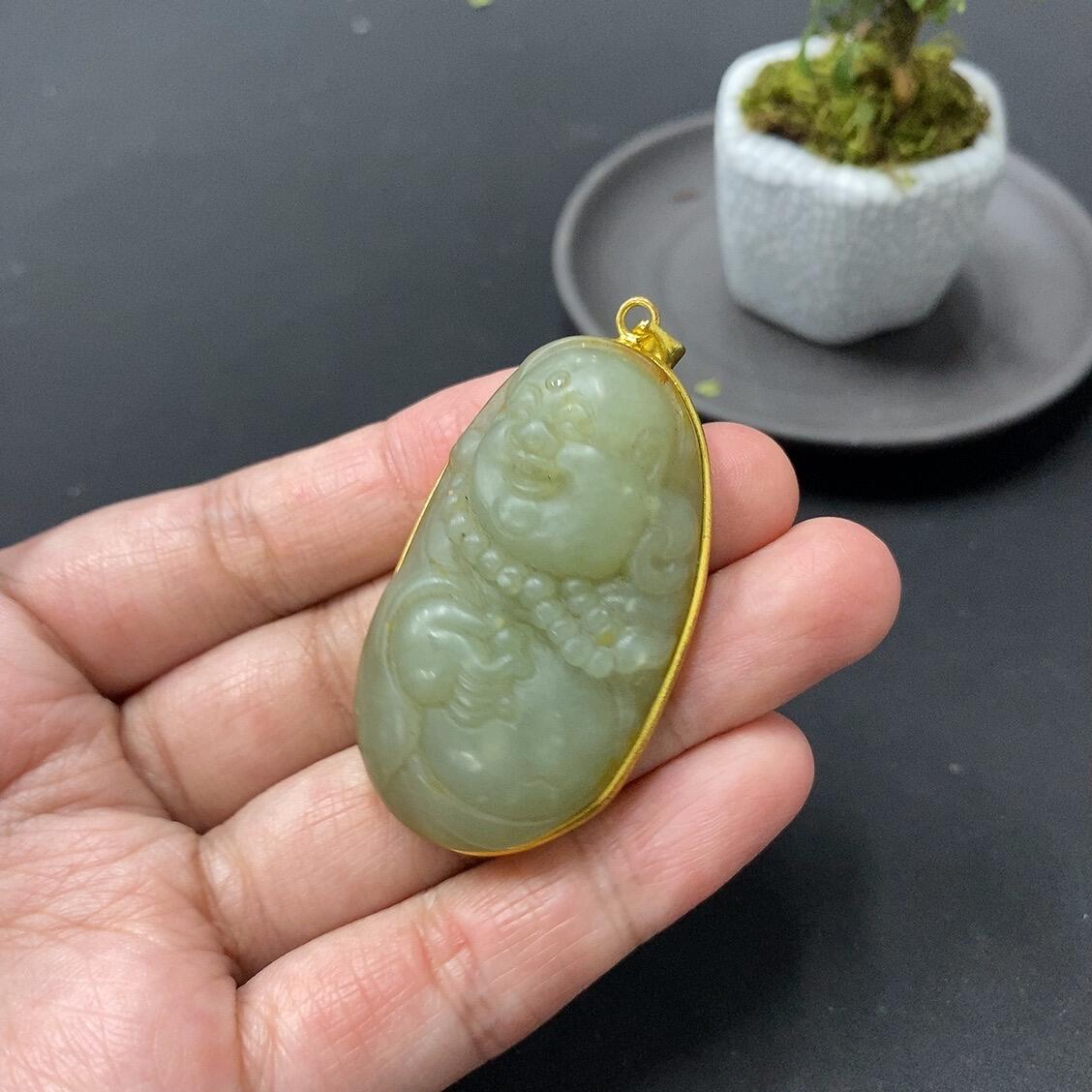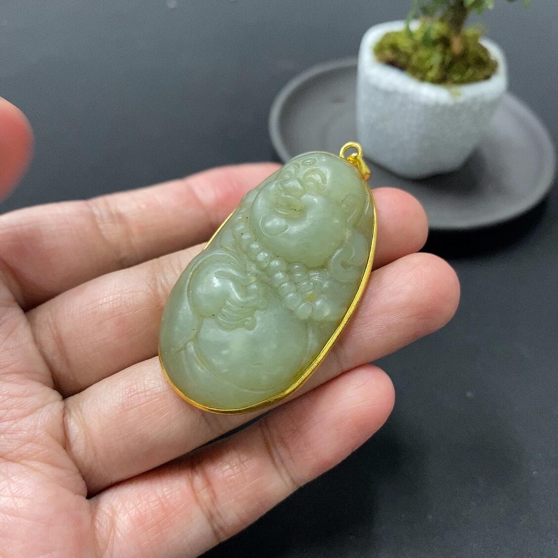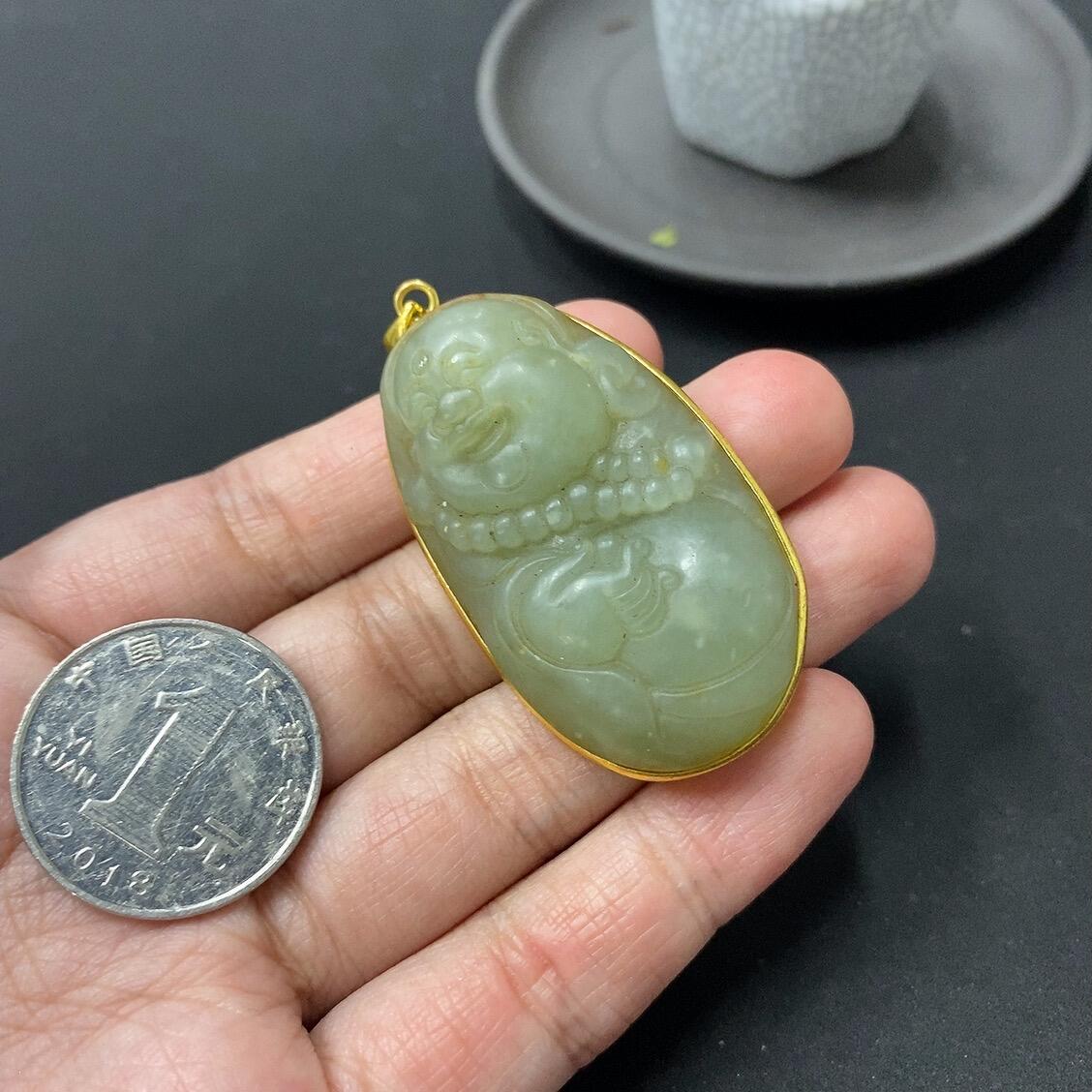 Hetian Jade Pendant with Cracks, Total Weight 25.5g (Non-Gold-Inlaid)