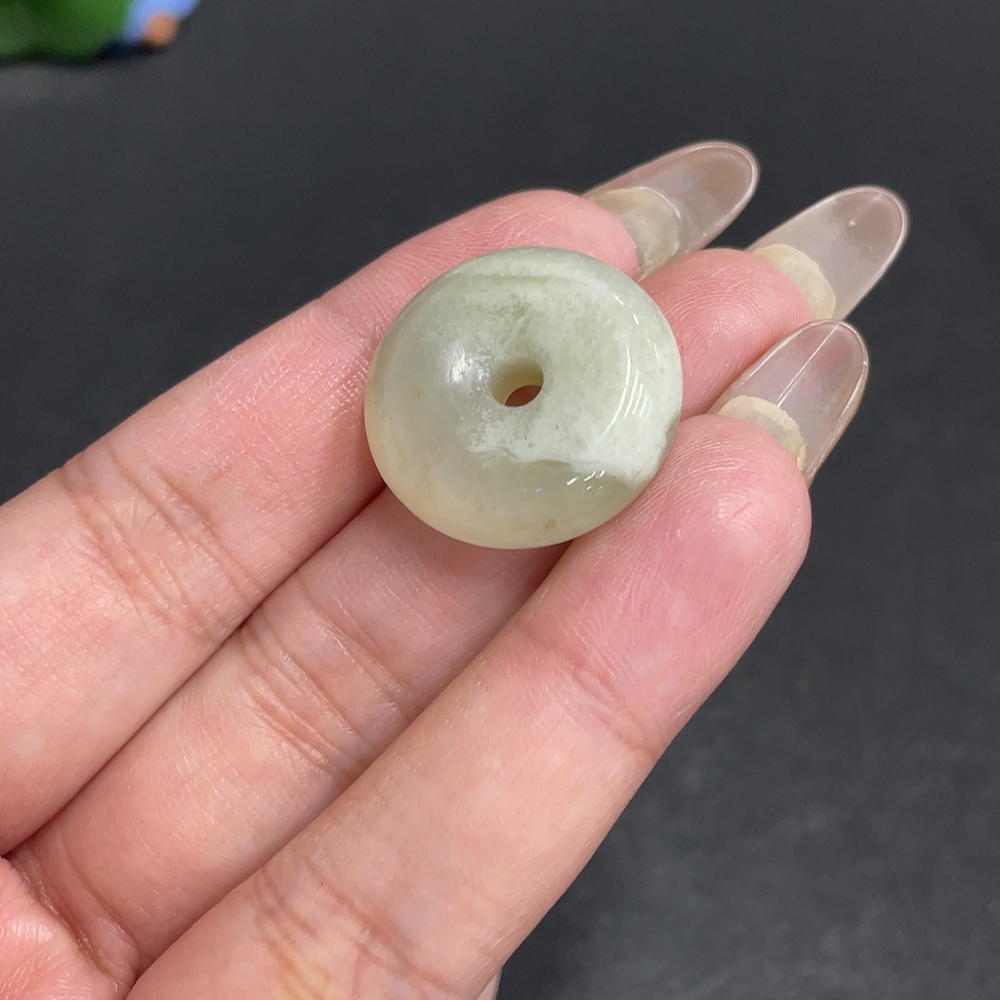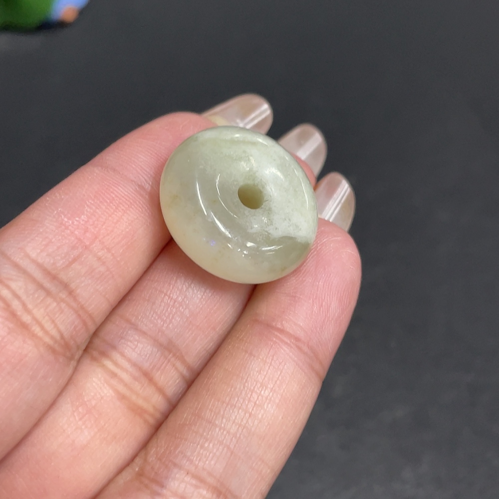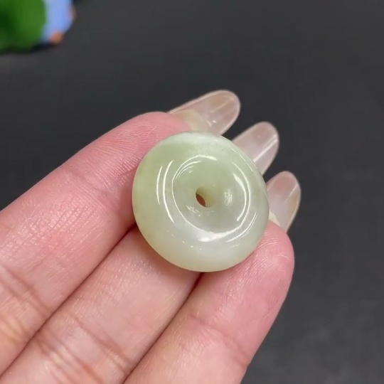Hetian Jade Pendant, Peace Button, Total Weight Approx. 7.9g, Contains Other Mineral Components