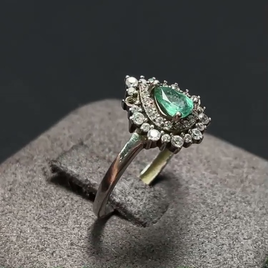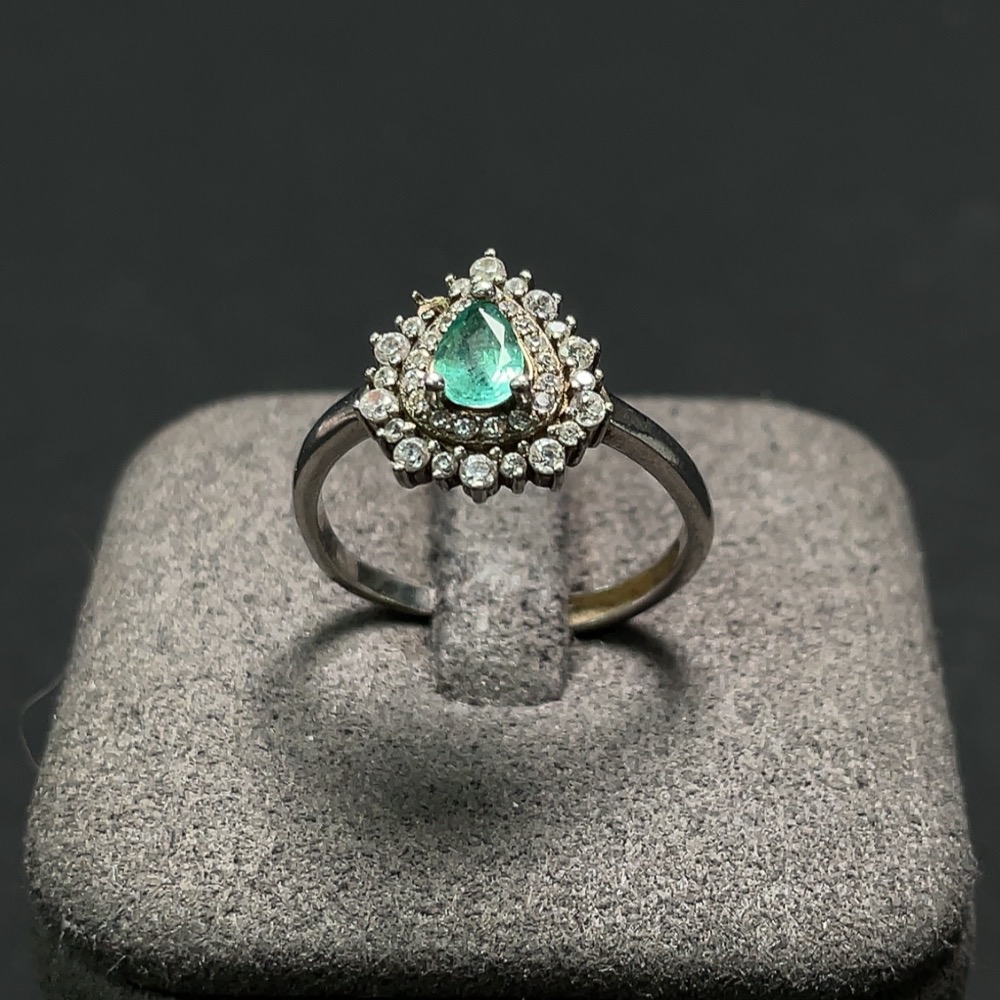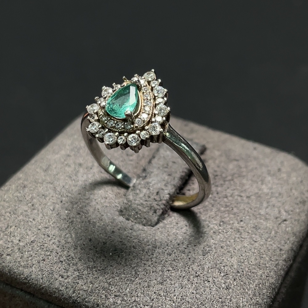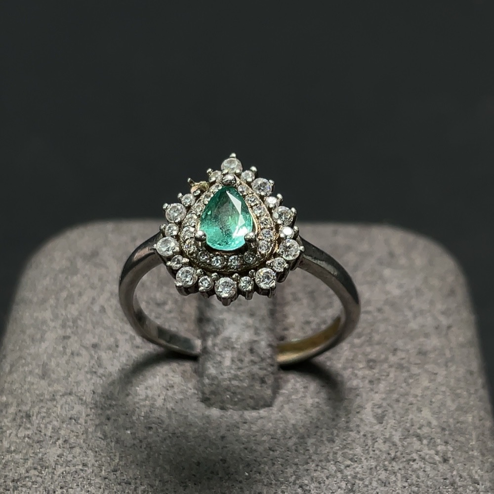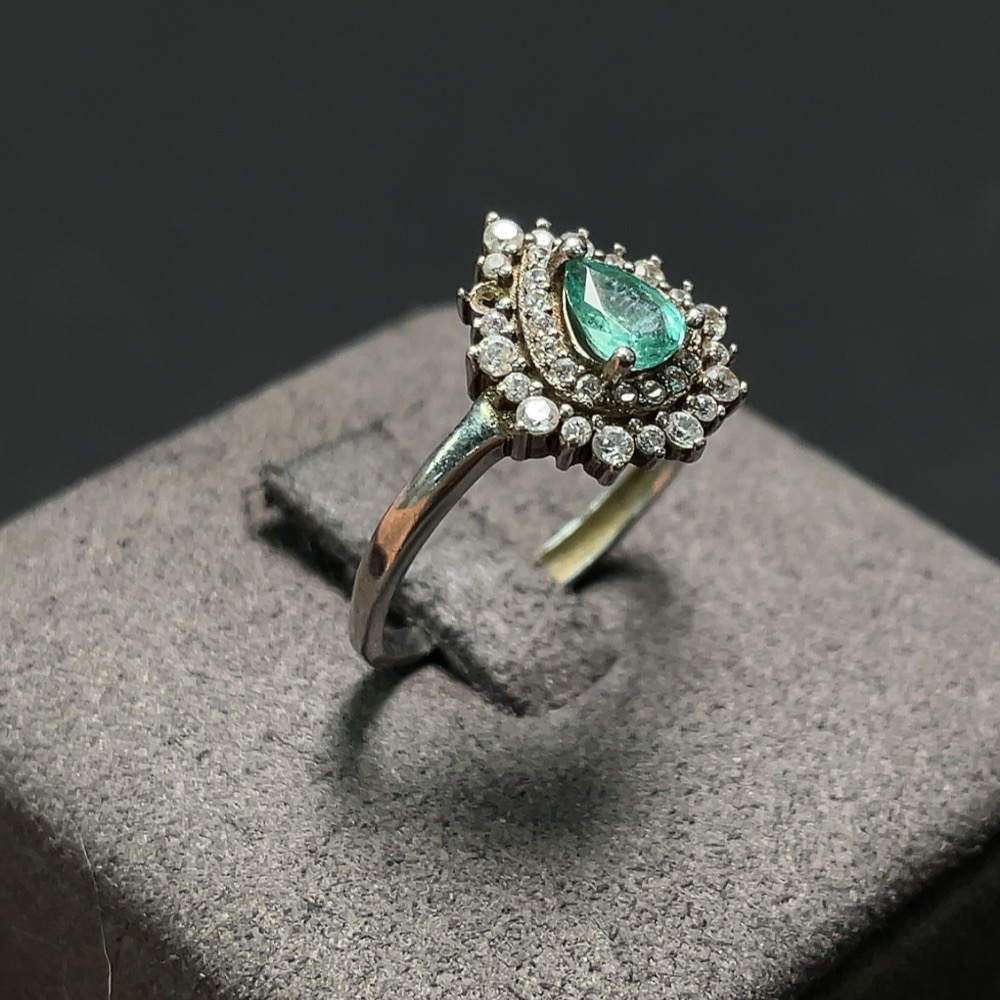 Emerald ring, total weight approximately 2.67g, non-gold setting, adjustable, clarity-enhanced