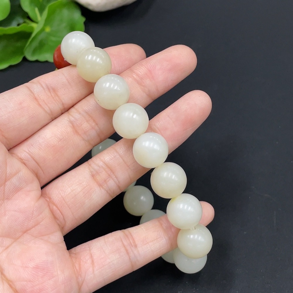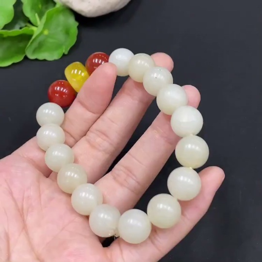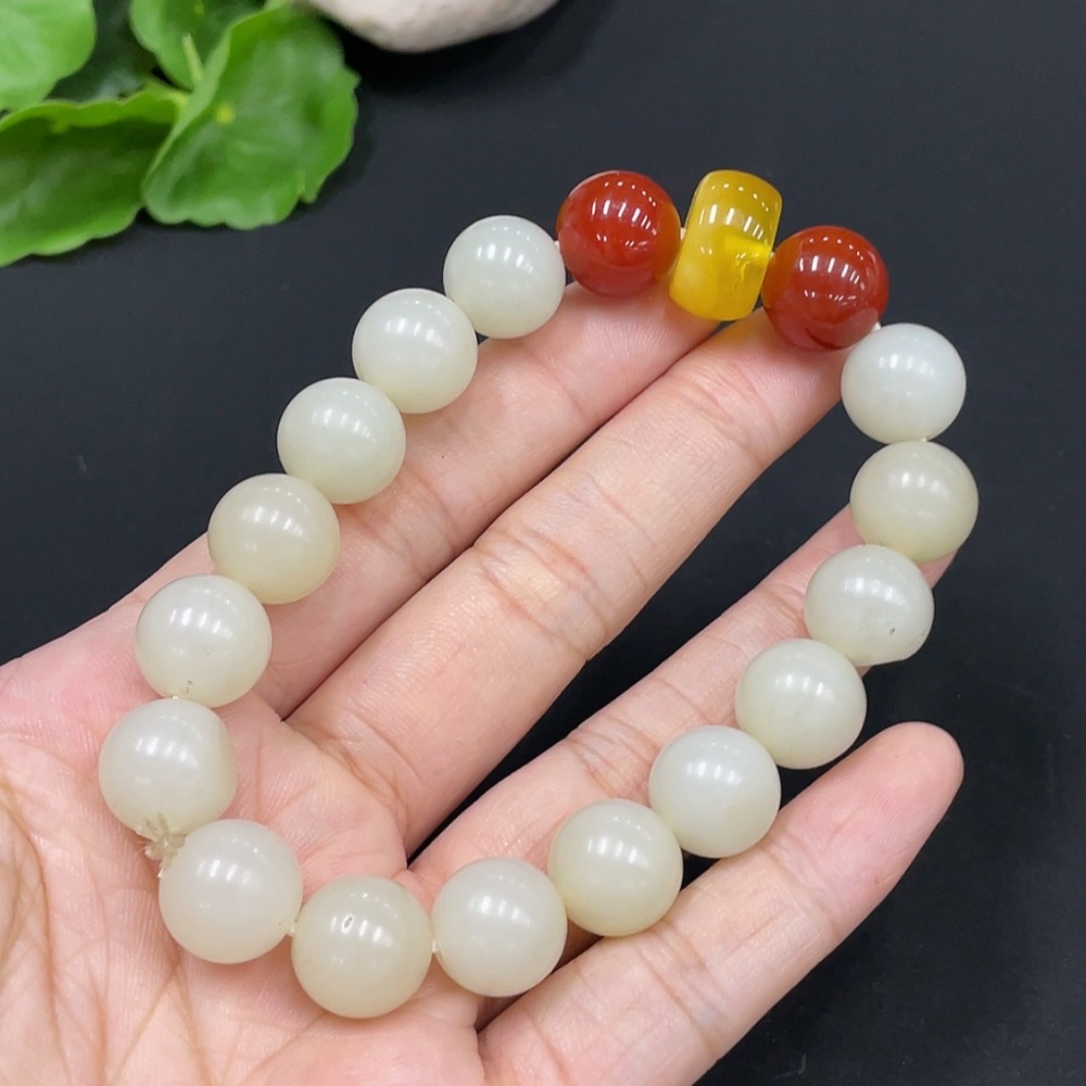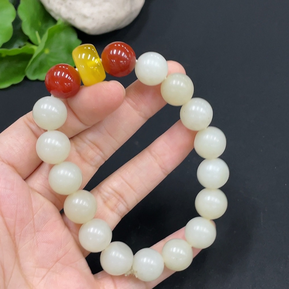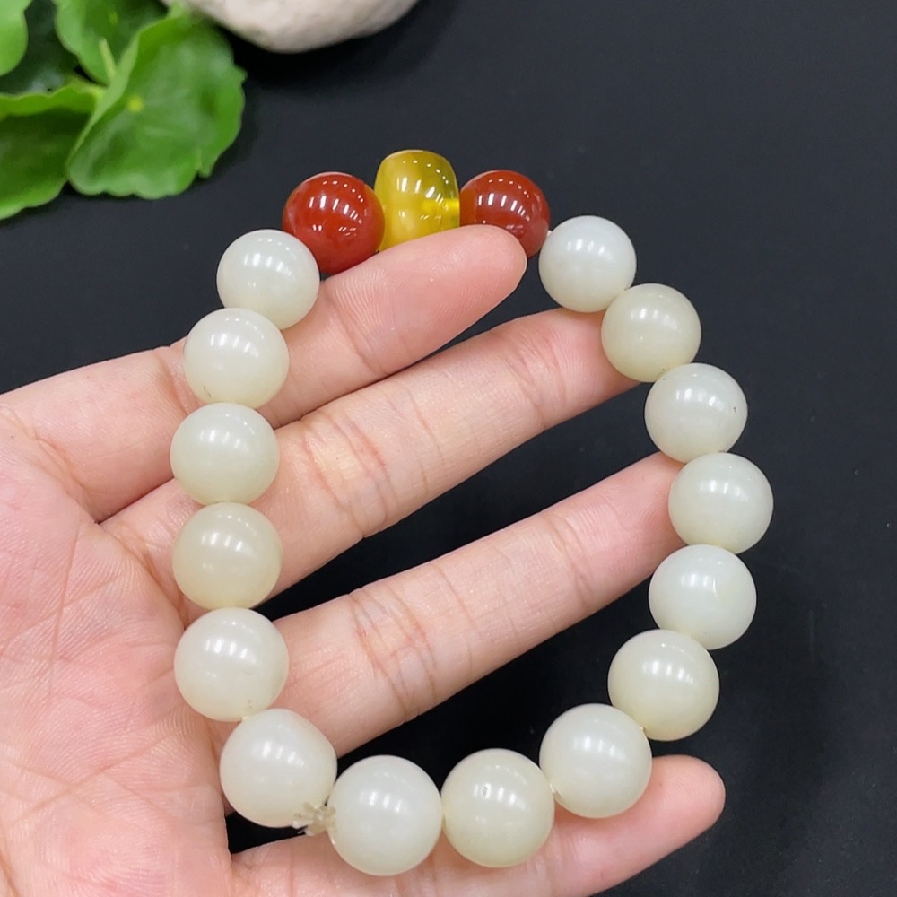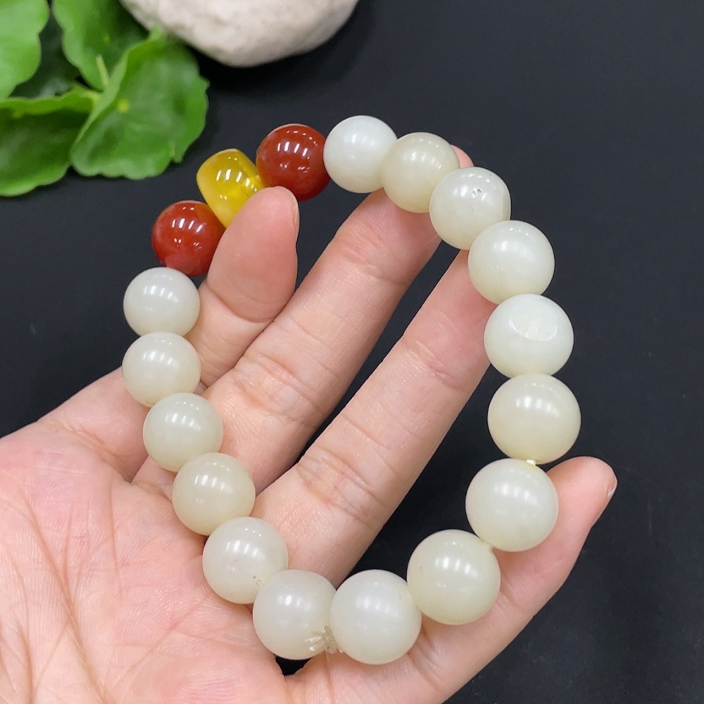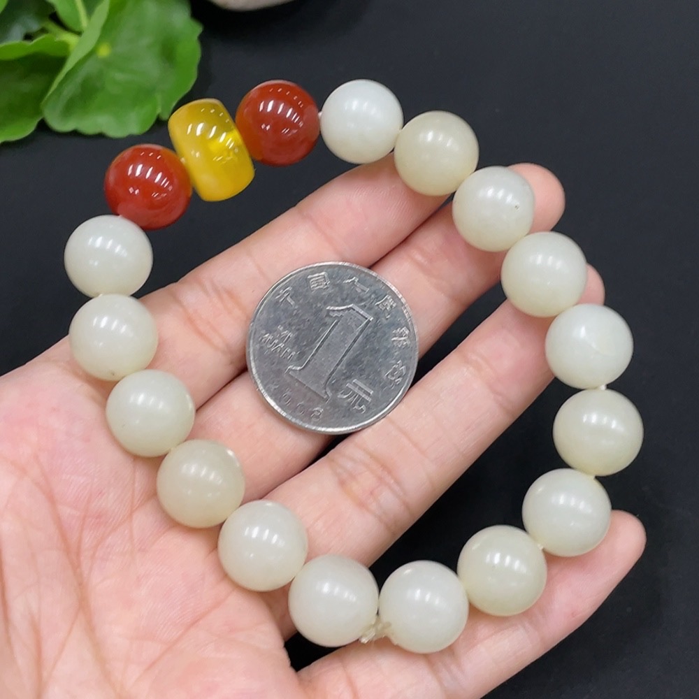 Hetian Jade Bracelet, approx. 11.7mm, total weight approx. 44.4g, with non-Hetian Jade beads