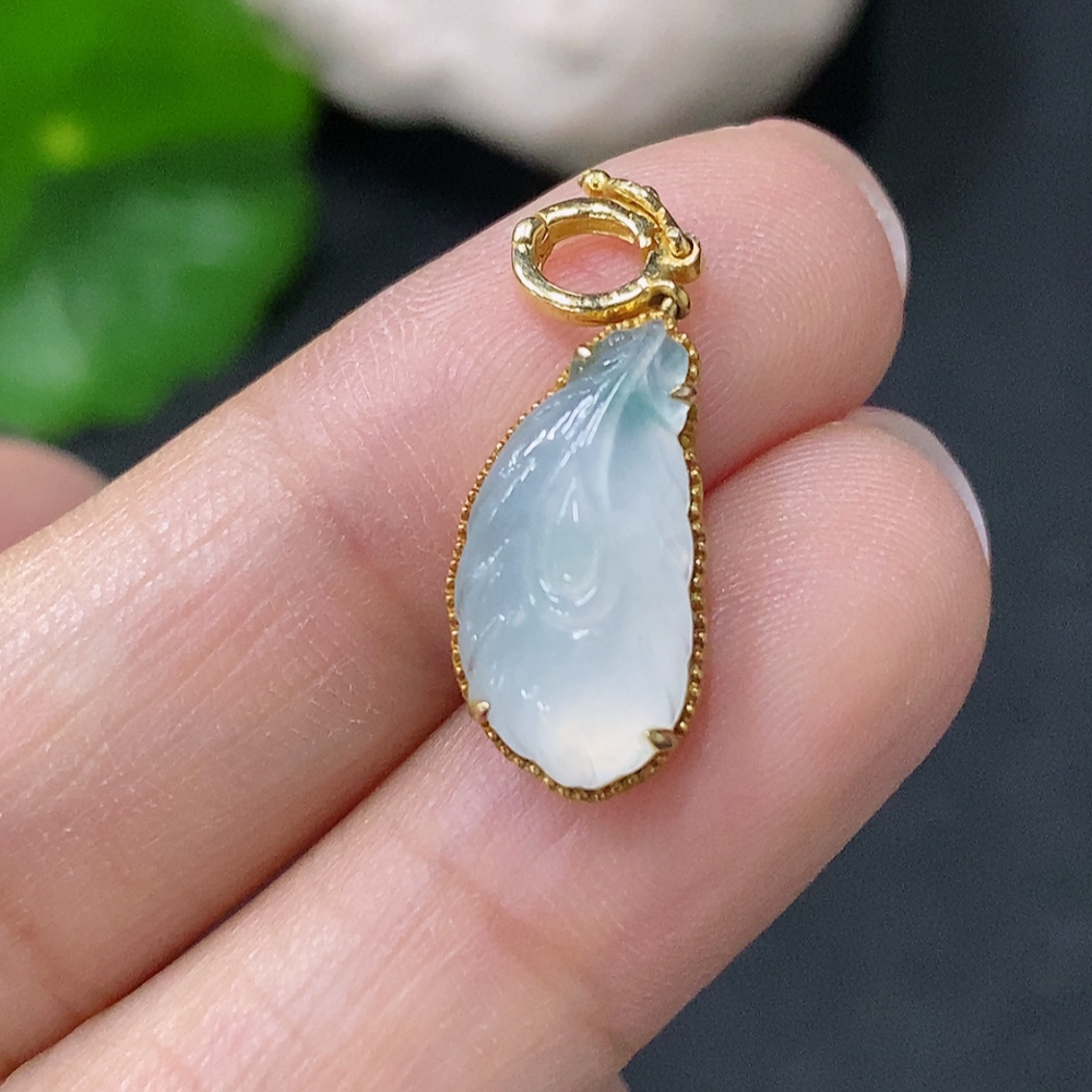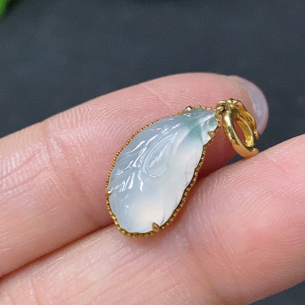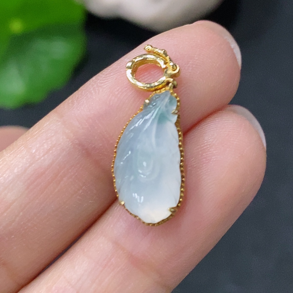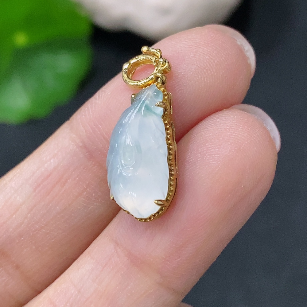 Jadeite Inlaid Pendant Au37% Total Weight Approx.1.38g