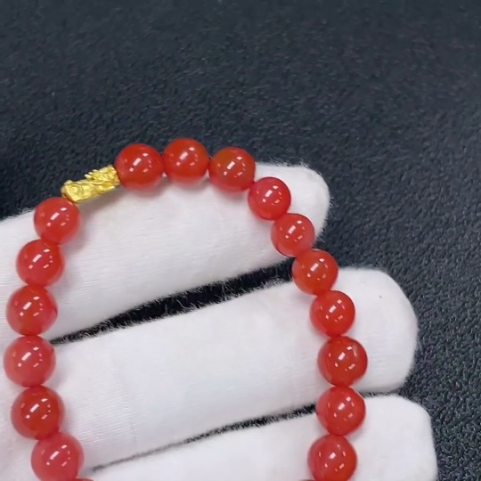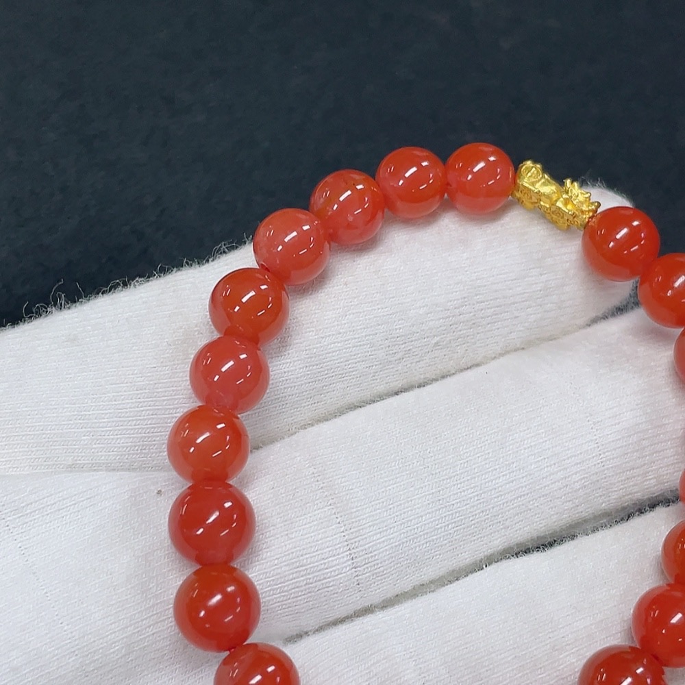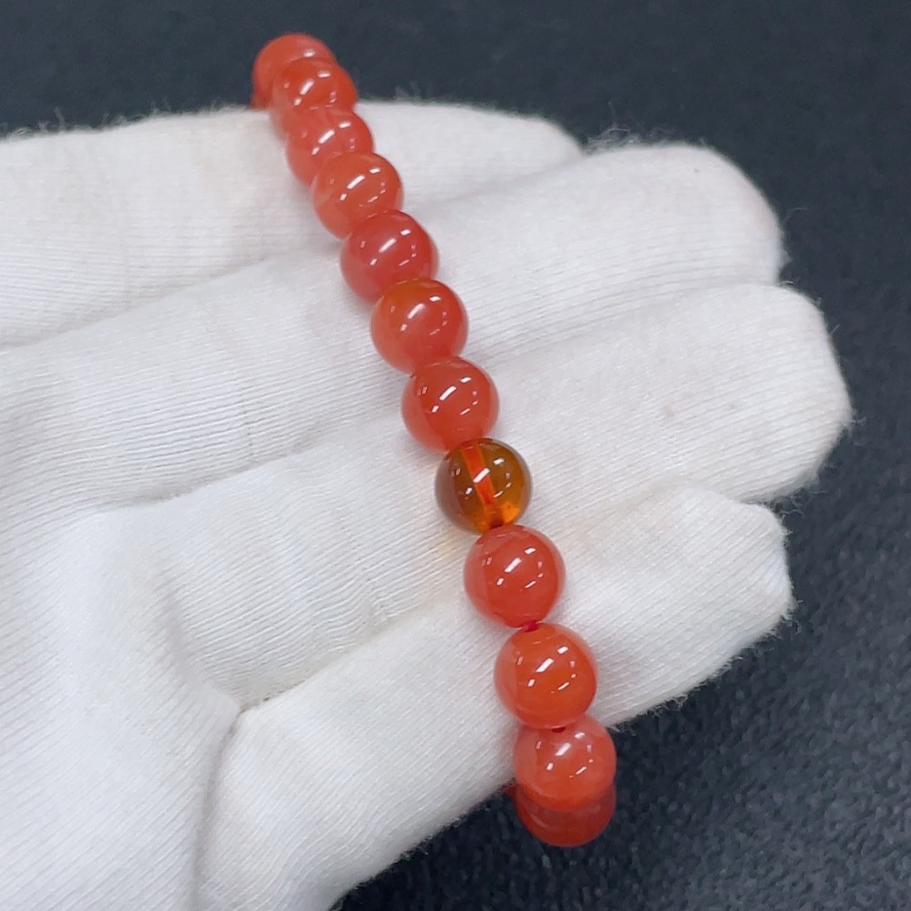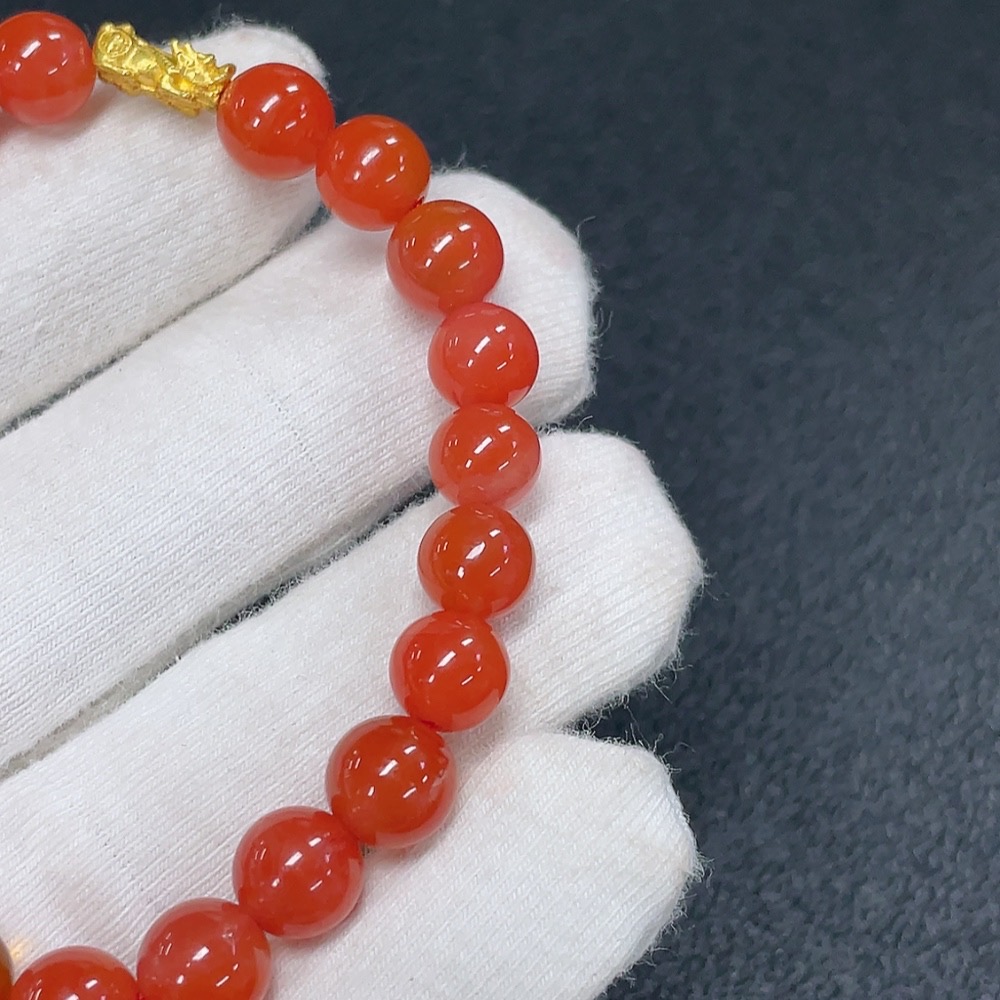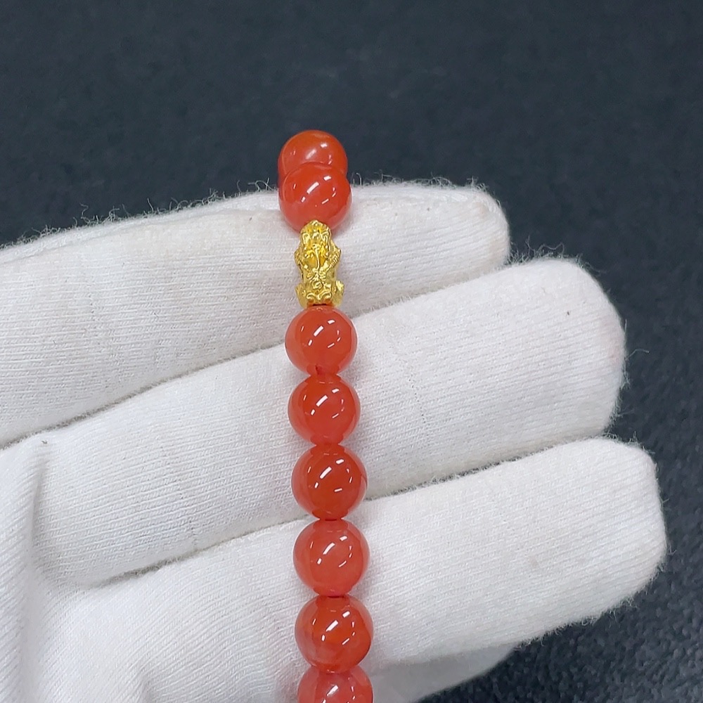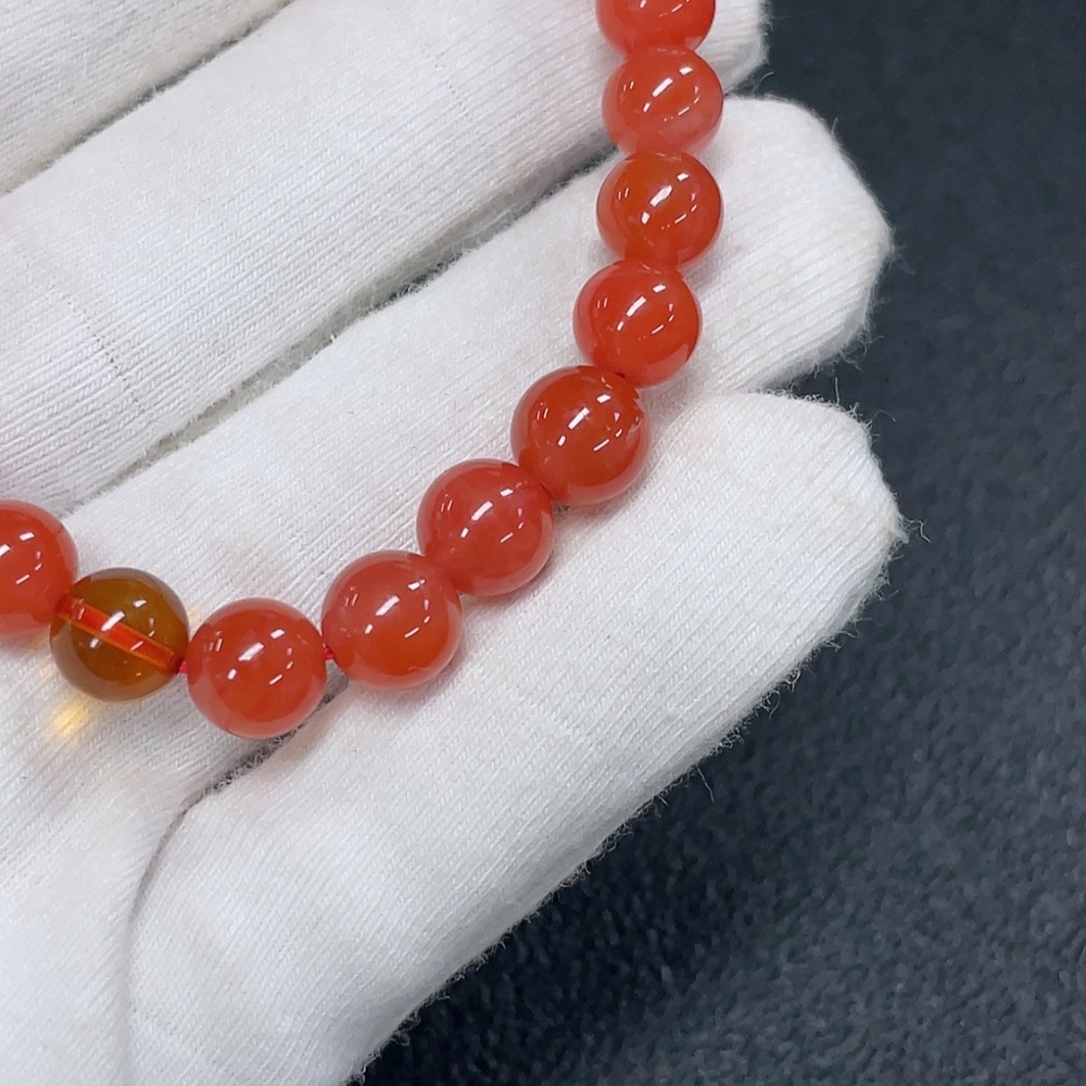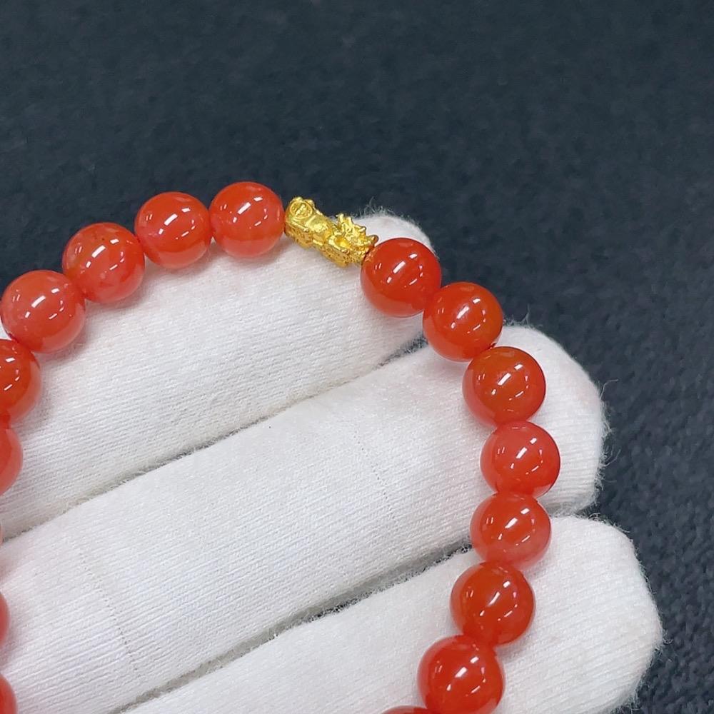 South Red Agate Bracelet with 99% Gold Content, Approximately 7.9mm, Total Weight About 12.60g, Paired with Amber