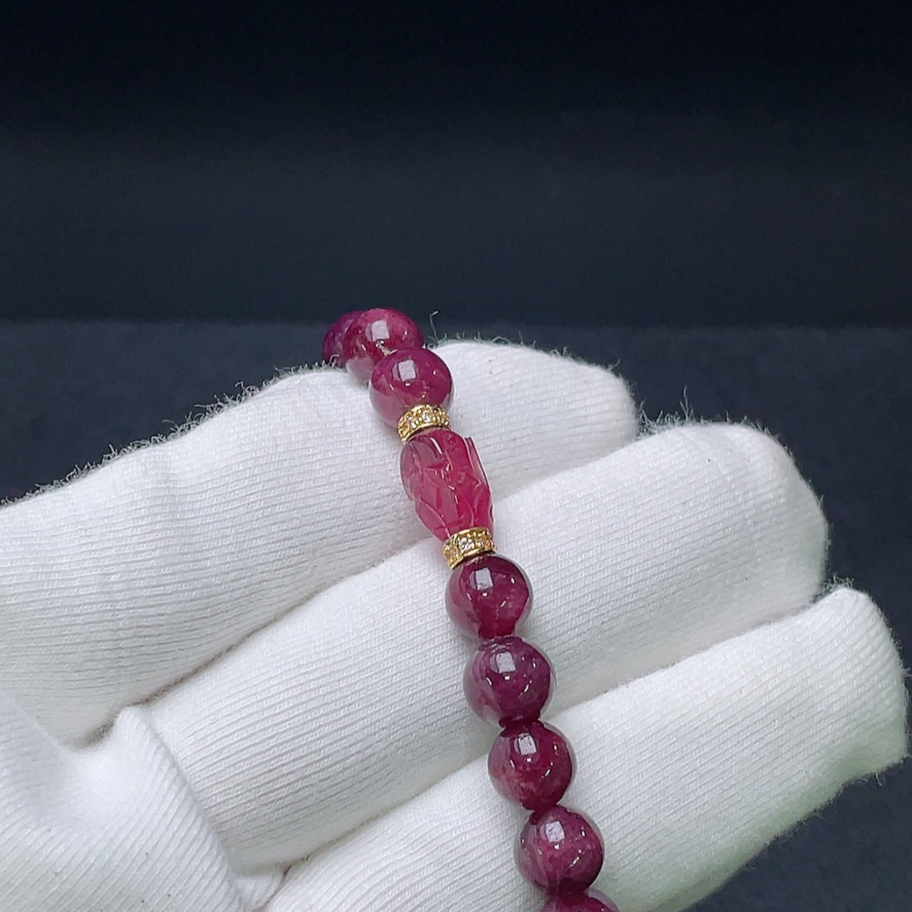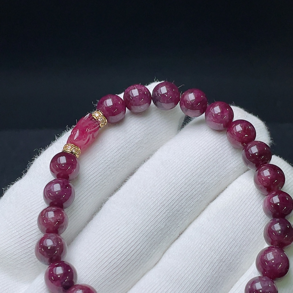 Tourmaline Bracelet with Visible Organic Matter, Total Weight Approx. 17.32g, Bead Size 7.4mm, Non-Gold