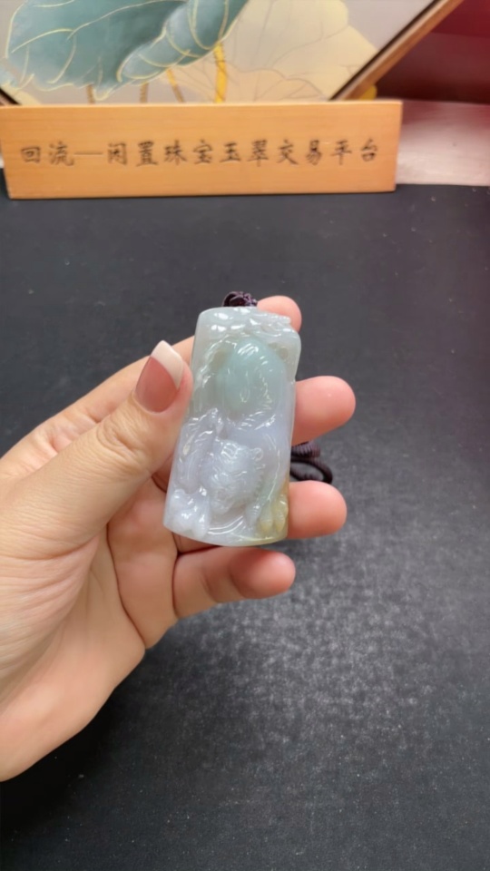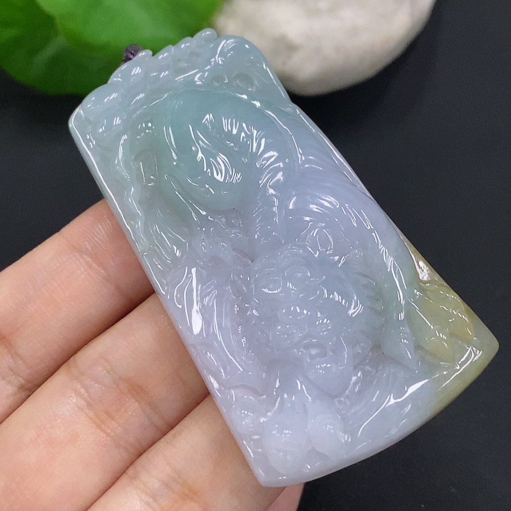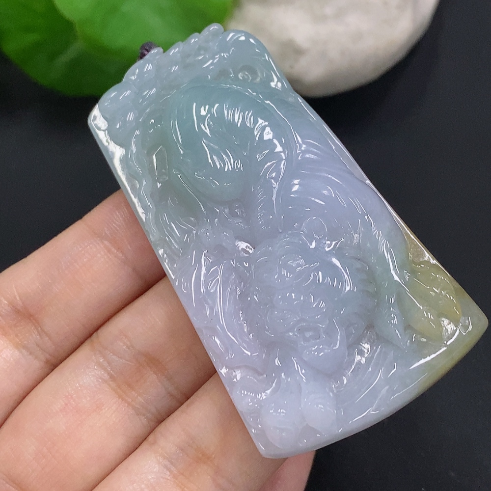 Jadeite Tiger Pendant with Cord, Total Weight Approx. 55.5g