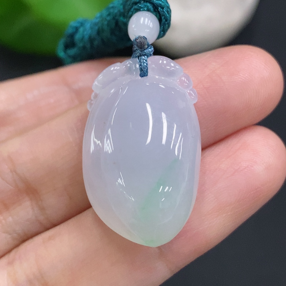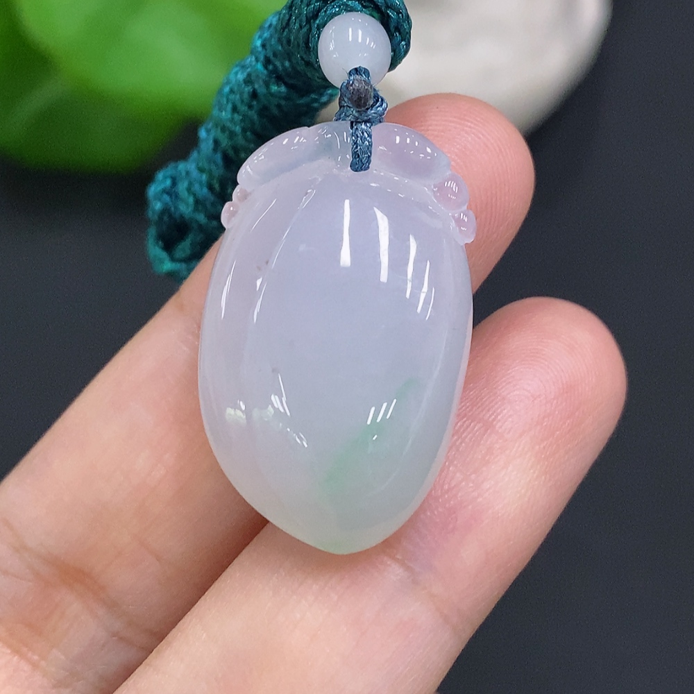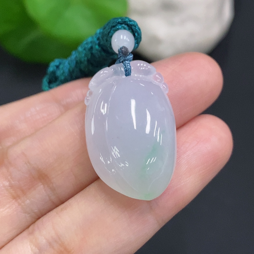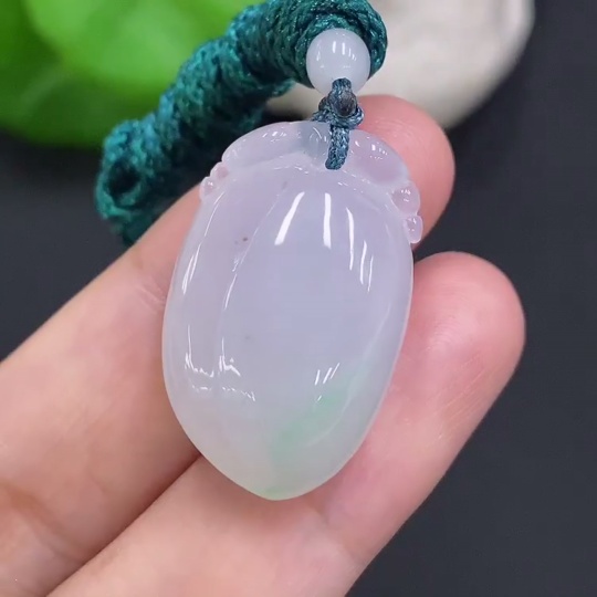 Jadeite Auspicious Gourd Pendant, Total Weight Including Rope Approximately 8.5g