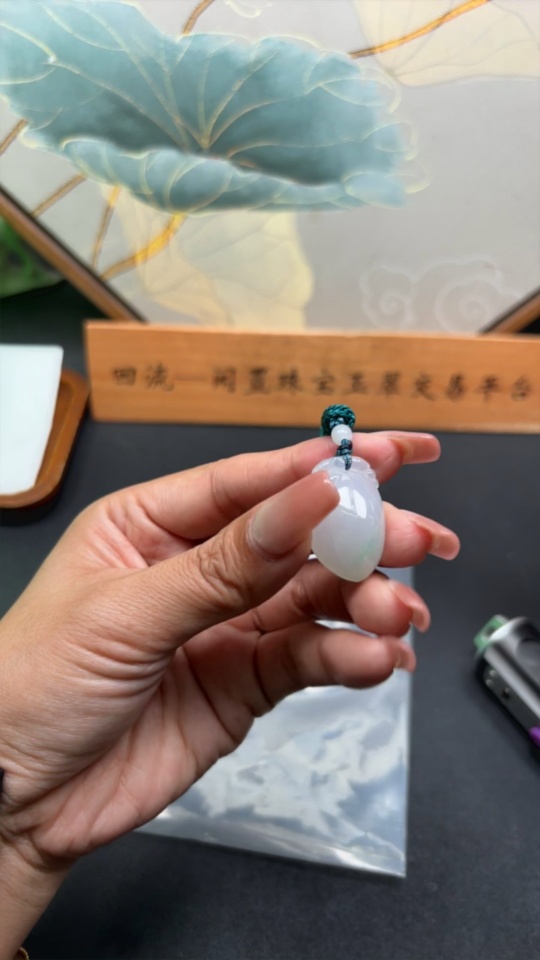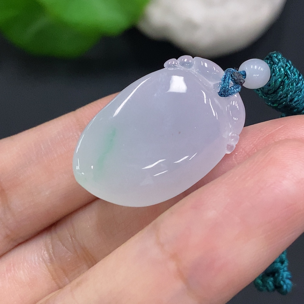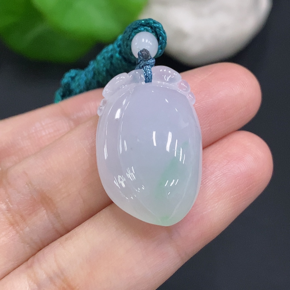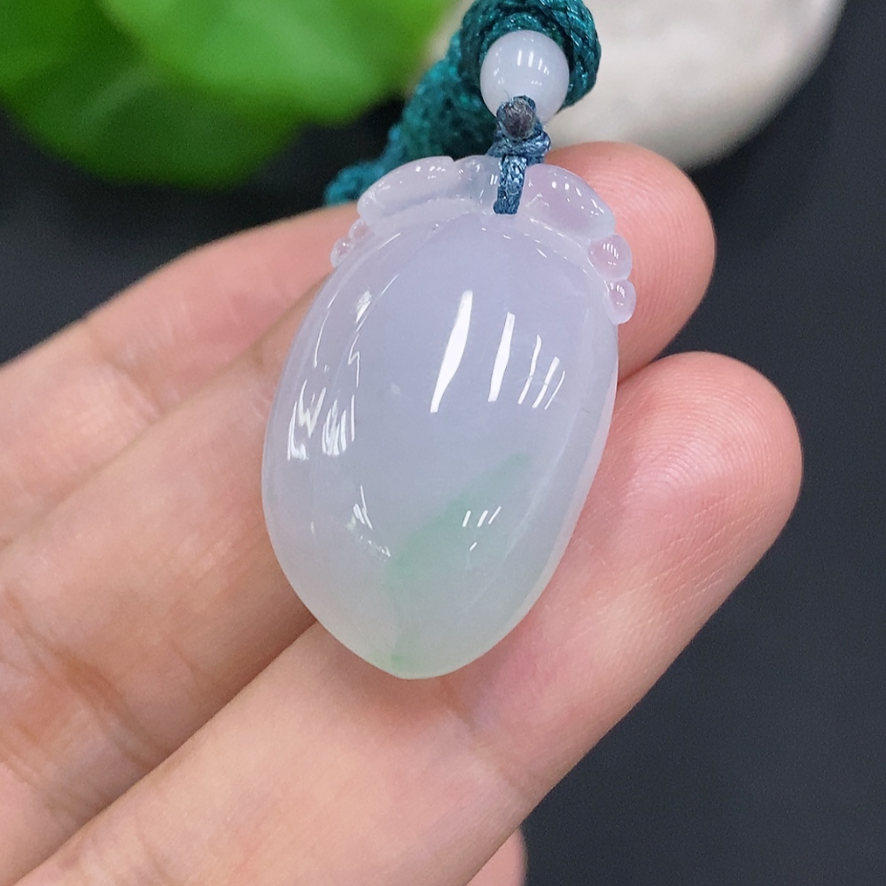 Jadeite Auspicious Gourd Pendant, Total Weight Including Rope Approximately 8.5g
